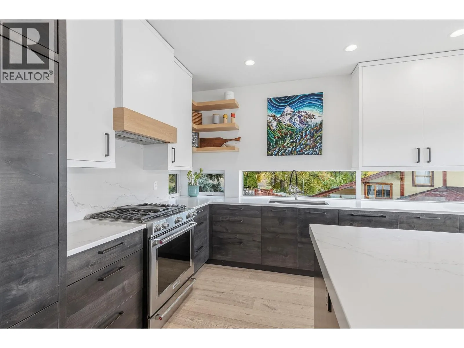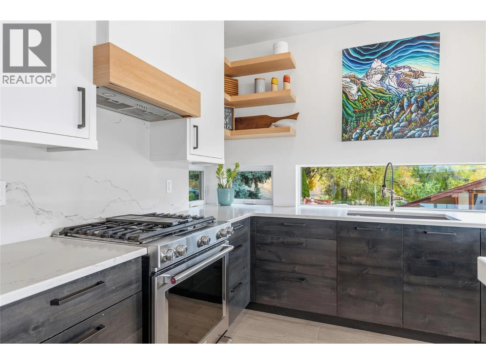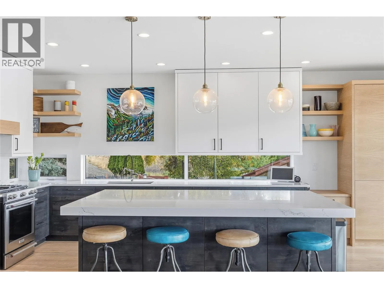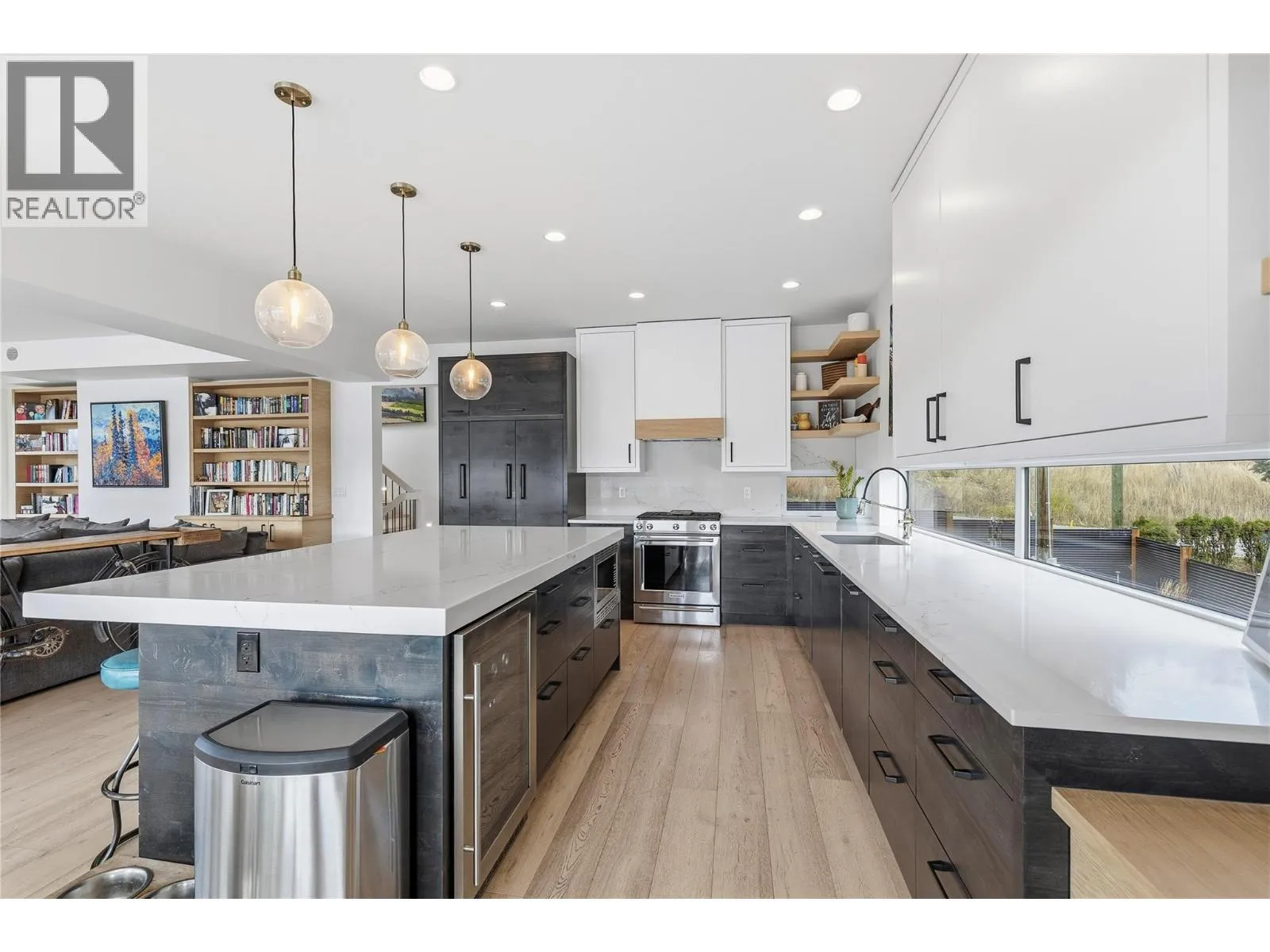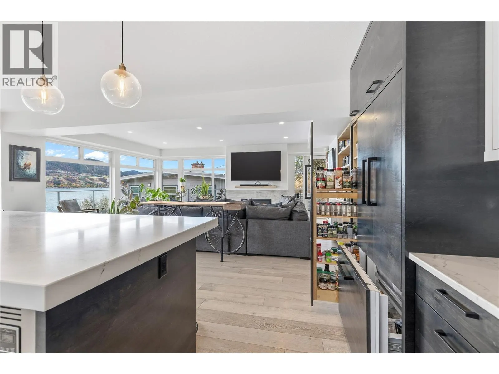 PUBLIC OPEN HOUSE, Sunday November 9, 1-2:30pm. Stunning contemporary home on Okanagan Lake! Architecturally designed by MQN and built by Richbuilt Homes, this 4 bedroom, 3.5 bath home has quality finishings from top to bottom. An elevator provides easy access to all 4 levels, including a spacious rooftop patio with an outdoor kitchen, hot tub and gorgeous views of the lake. Inside, the home is bright and open, with tall windows for an abundance of natural light and enjoyment of the views. The property features private boat lift, shared water frontage and dock with the adjacent property. Double garage. Extensive retaining systems and landscaping. (id:27476)