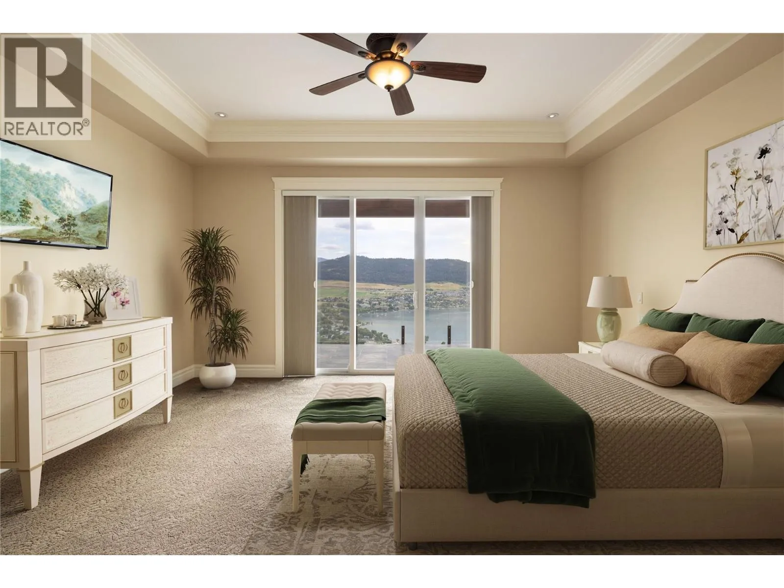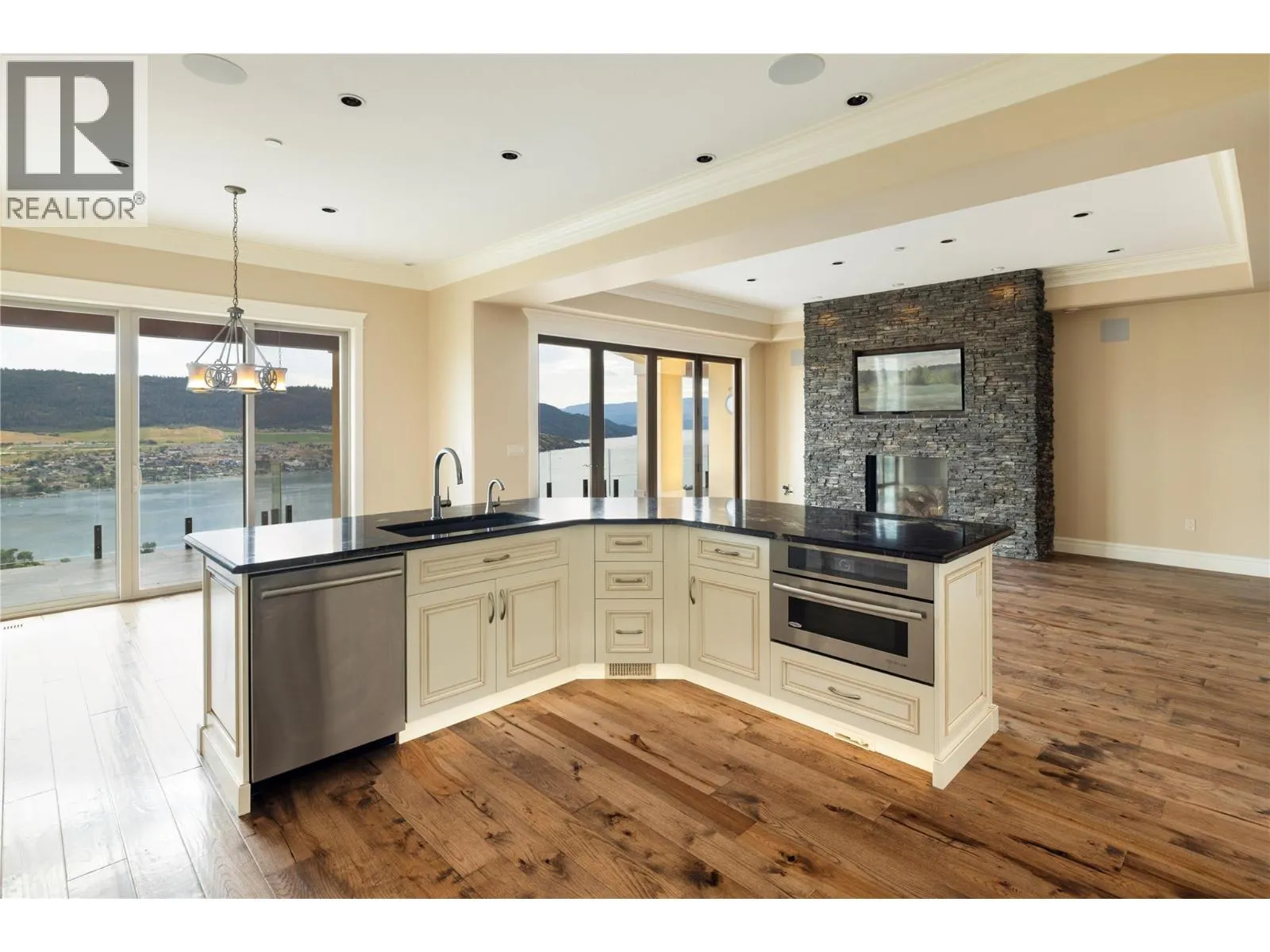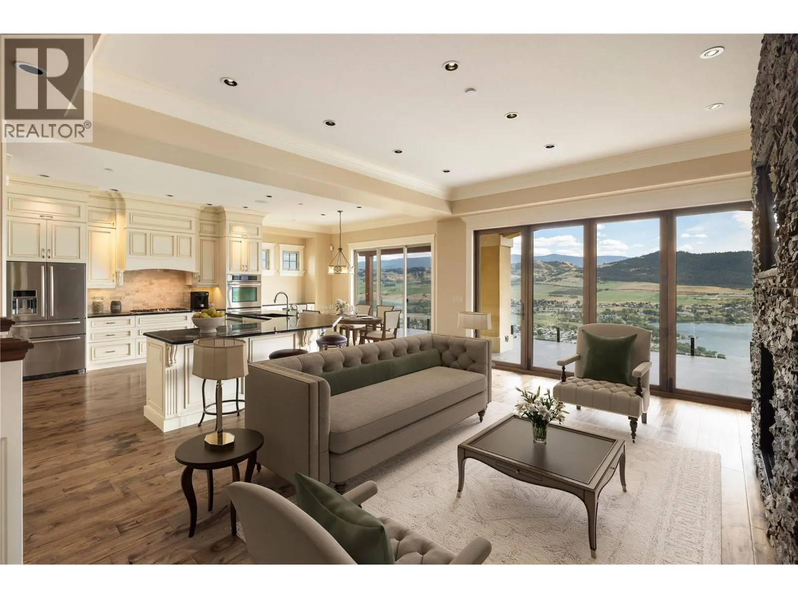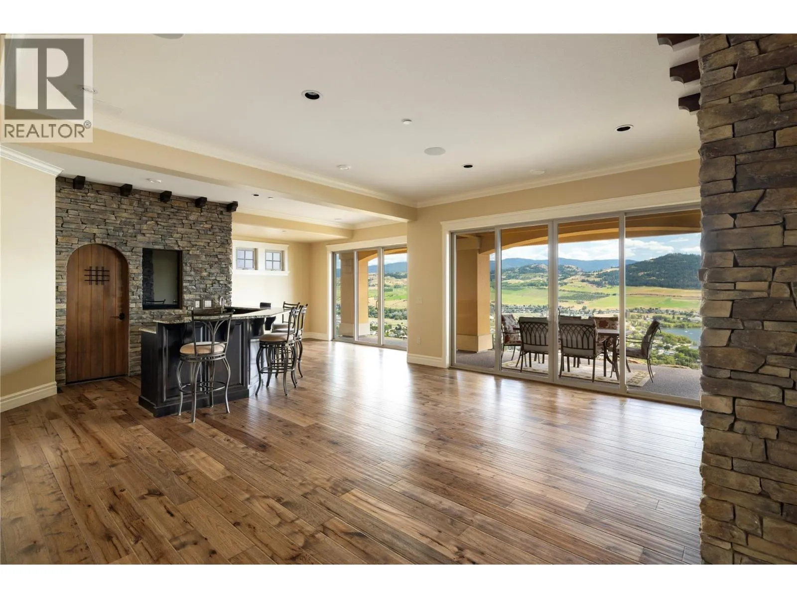 Experience resort-style living in the hills of THE RISE. Designed for luxurious living and effortless entertaining, this custom built masterpiece offers PANORAMIC LAKE VIEWS, THREE PRIMARY SUITES, A CINEMA-STYLE THEATRE, A TEMPERATURE-CONTROLLED WINE CELLAR, and COUNTLESS HIGH-END FINISHES throughout. The open-concept main living area features a chef-inspired kitchen with gas stove, double ovens, and custom cabinetry - seamlessly flowing into a bright living space framed by nano doors that open fully to the expansive patio, surrounded by endless views. Also on the main floor, one of the 3 primary suites offers ideal privacy, while the elegant office - complete with coffered ceilings, French doors, and its own patio -could easily serve as a 4th bedroom. The lower level is an entertainerâs dream. Host movie nights or the big game in your PRIVATE CINEMA FEATURING 138"" SCREEN & 3D 4K PROJECTOR, then gather at the ARTISAN BAR and WINE CELLAR. Guests can unwind by the cozy fireplace and wake up to the floor-to-ceiling views. Additional highlights include a Control4 smart home system, geothermal heating, and a double garage with built-in cabinetry & workbench. Perfectly positioned within The Rise Resort community, home of the 18-HOLE CHAMPIONSHIP GOLF COURSE, this home offers EASY ACCESS TO MULTIPLE LAKES AND SKI DESTINATIONS, including the world-class Silver Star Mountain Resort - making it a true four-season retreat for those who love the slopes and the lake. (id:27476)
