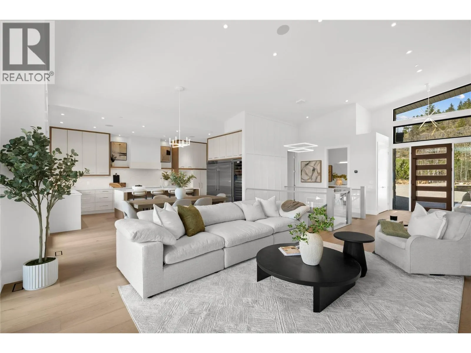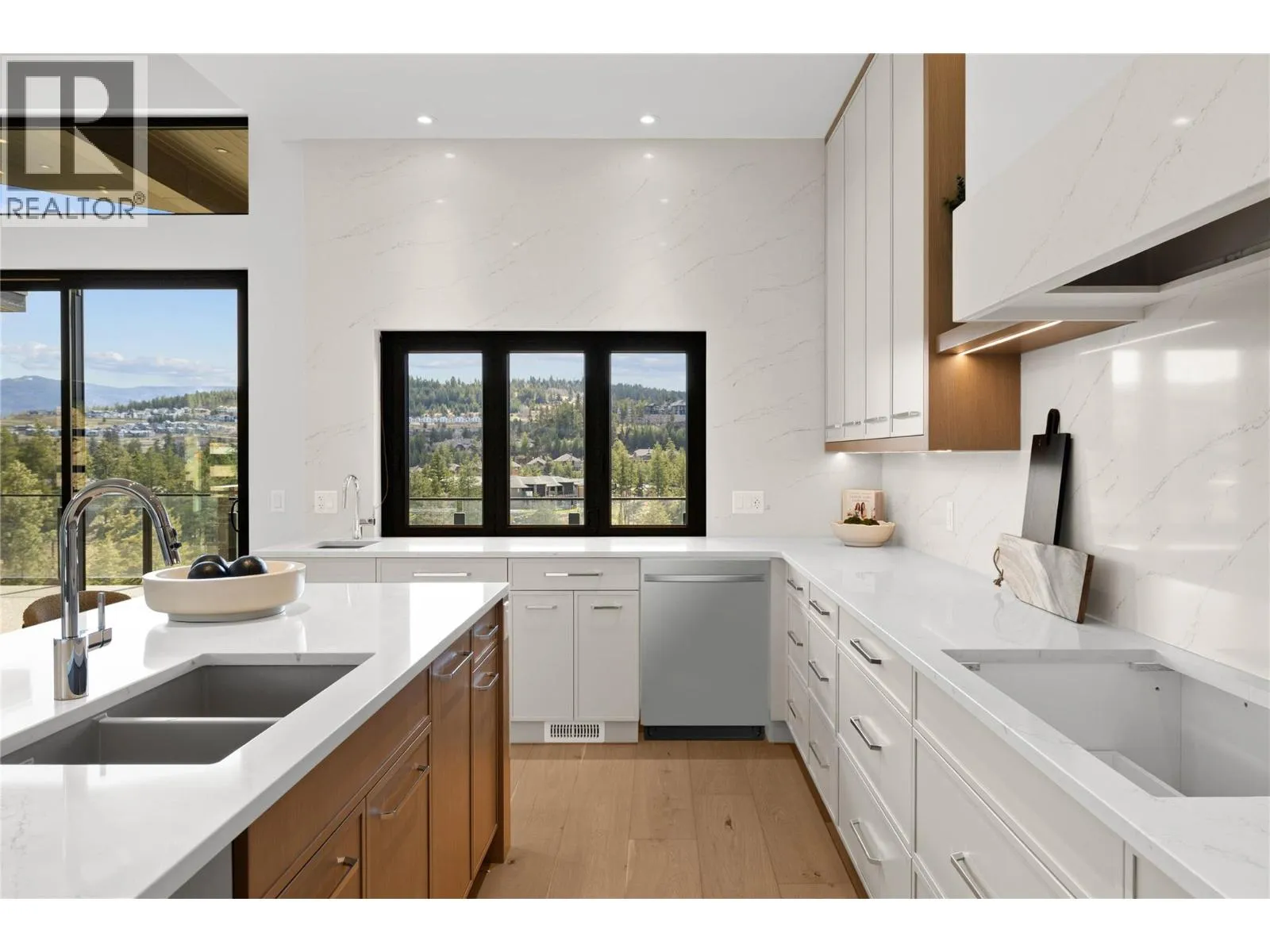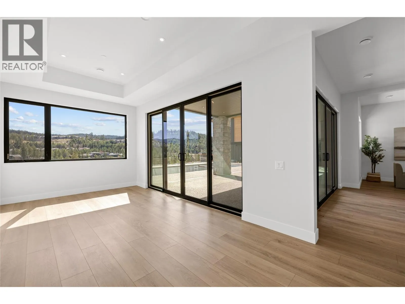 Nestled in the heart of the Okanagan, Predator Ridge Properties offers an unparalleled blend of luxury homes, breathtaking views, and resort-style amenitiesâperfect for those seeking an elevated lifestyle in a vibrant, master-planned community. In the prestigious Wildsong enclave this just-completed Serenity Peak build, by award-winning Carrington Homes, is a masterpiece. The 5-bed, 4-bath walkout rancher spans over 3,700 sq.ft., featuring soaring ceilings, accordion and pass-through windows, and high-end finishes. The open-concept layout highlights a designer kitchen with a massive island, floor-to-ceiling cabinets, and a walk-through pantry. The luxurious primary suite offers sweeping views, an ensuite with heated floors, and a spacious walk-in closet roughed-in for laundry. Two additional laundry areas provide added flexibility. Enjoy outdoor living with a covered deck, walkout patio with built-in speakers, low-maintenance yard, and in-ground saltwater pool with an automatic cover. A 3-car garage completes this exceptional property, located minutes from Sparkling Hill, Predator Ridge Golf Course, Silver Star, downtown Vernon, local beaches, and parks. Community residents enjoy access to championship golf, a state-of-the-art fitness centre, pool, racquet courts, hiking and biking trails, dining, a local market, community events, and a wellness-focused lifestyle. Live the luxury Okanagan lifestyle with Predator Ridge Properties. GST applicable. (id:27476)
