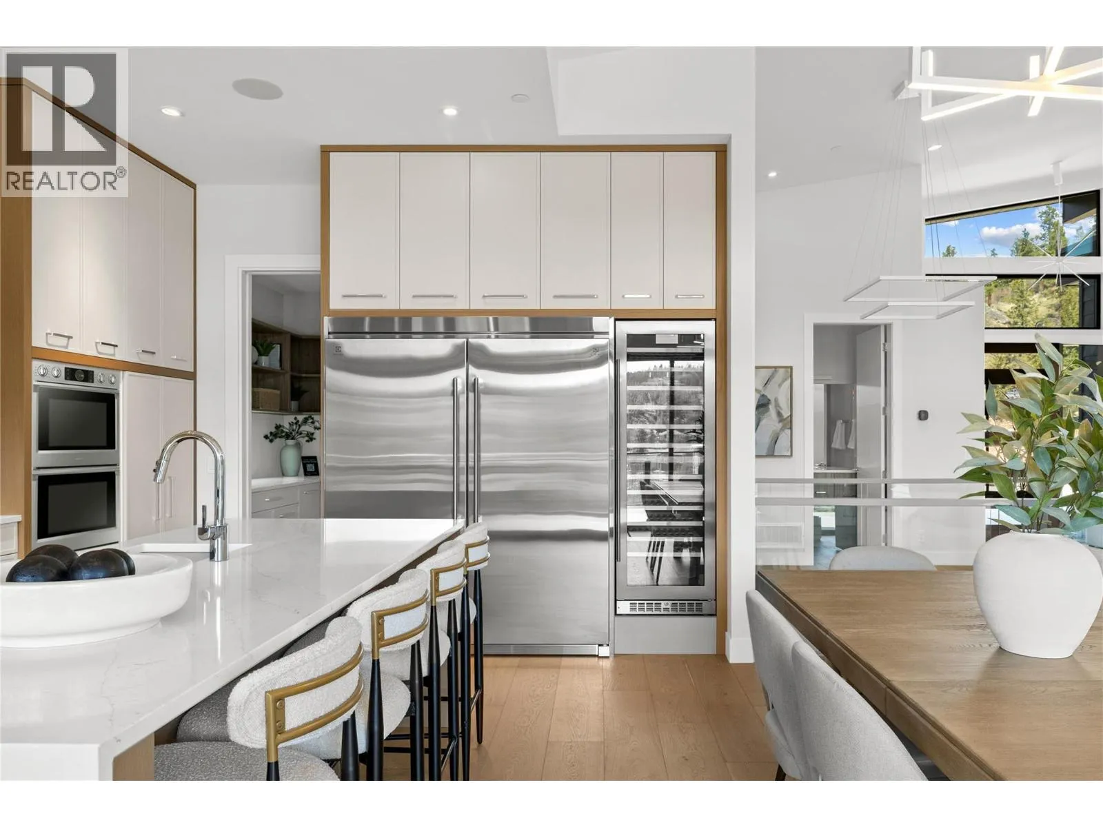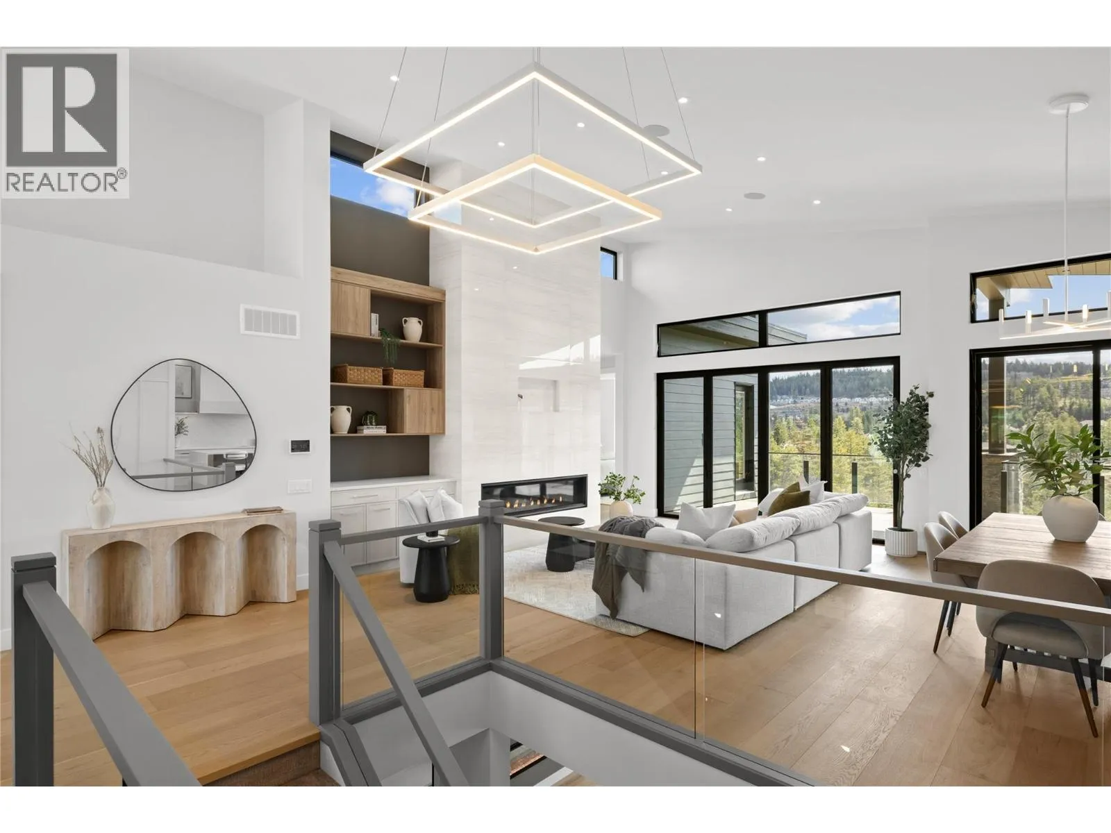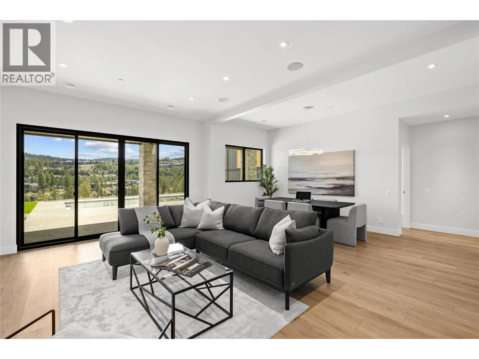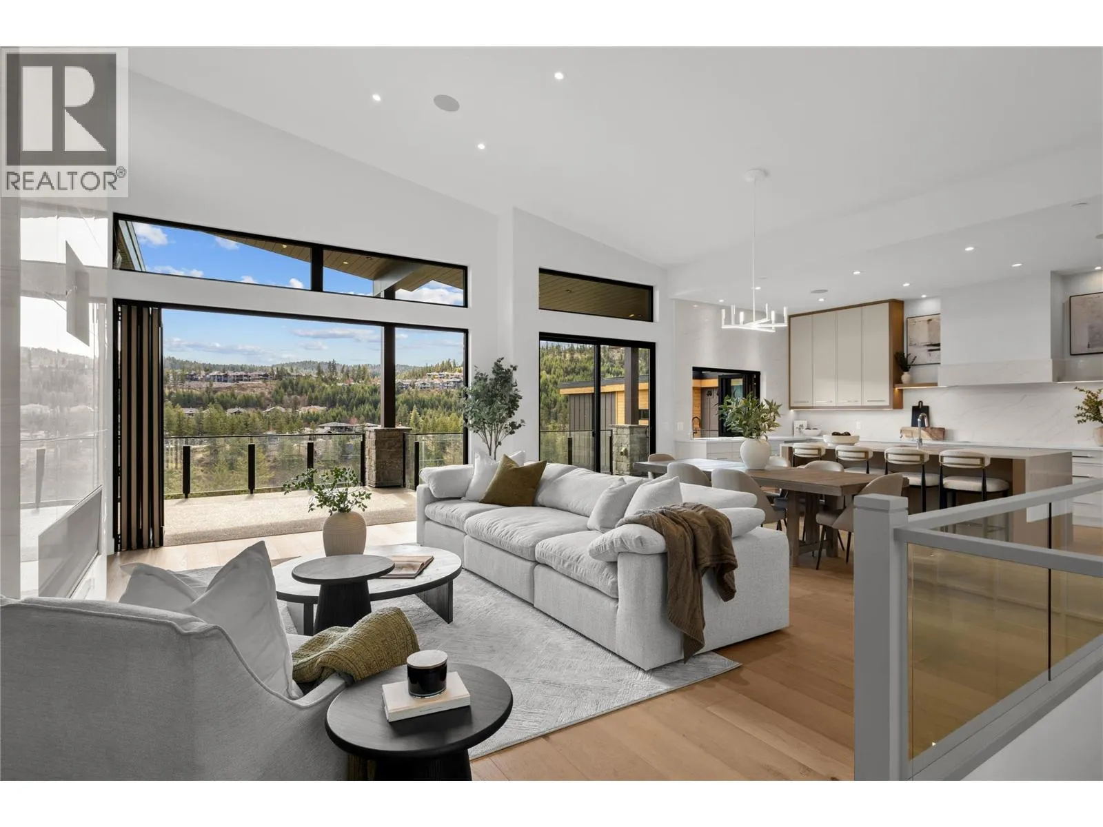 Nestled in the heart of the Okanagan, Predator Ridge Properties offers an unparalleled blend of luxury homes, breathtaking views, and resort-style amenitiesâperfect for those seeking an elevated lifestyle in a vibrant, master-planned community. In the prestigious Wildsong enclave this just-completed Serenity Peak build, by award-winning Carrington Homes, is a masterpiece. The 5-bed, 4-bath walkout rancher spans over 3,700 sq.ft., featuring soaring ceilings, accordion and pass-through windows, and high-end finishes. The open-concept layout highlights a designer kitchen with a massive island, floor-to-ceiling cabinets, and a walk-through pantry. The luxurious primary suite offers sweeping views, an ensuite with heated floors, and a spacious walk-in closet roughed-in for laundry. Two additional laundry areas provide added flexibility. Enjoy outdoor living with a covered deck, walkout patio with built-in speakers, low-maintenance yard, and in-ground saltwater pool with an automatic cover. A 3-car garage completes this exceptional property, located minutes from Sparkling Hill, Predator Ridge Golf Course, Silver Star, downtown Vernon, local beaches, and parks. Community residents enjoy access to championship golf, a state-of-the-art fitness centre, pool, racquet courts, hiking and biking trails, dining, a local market, community events, and a wellness-focused lifestyle. Live the luxury Okanagan lifestyle with Predator Ridge Properties. GST applicable. (id:27476)