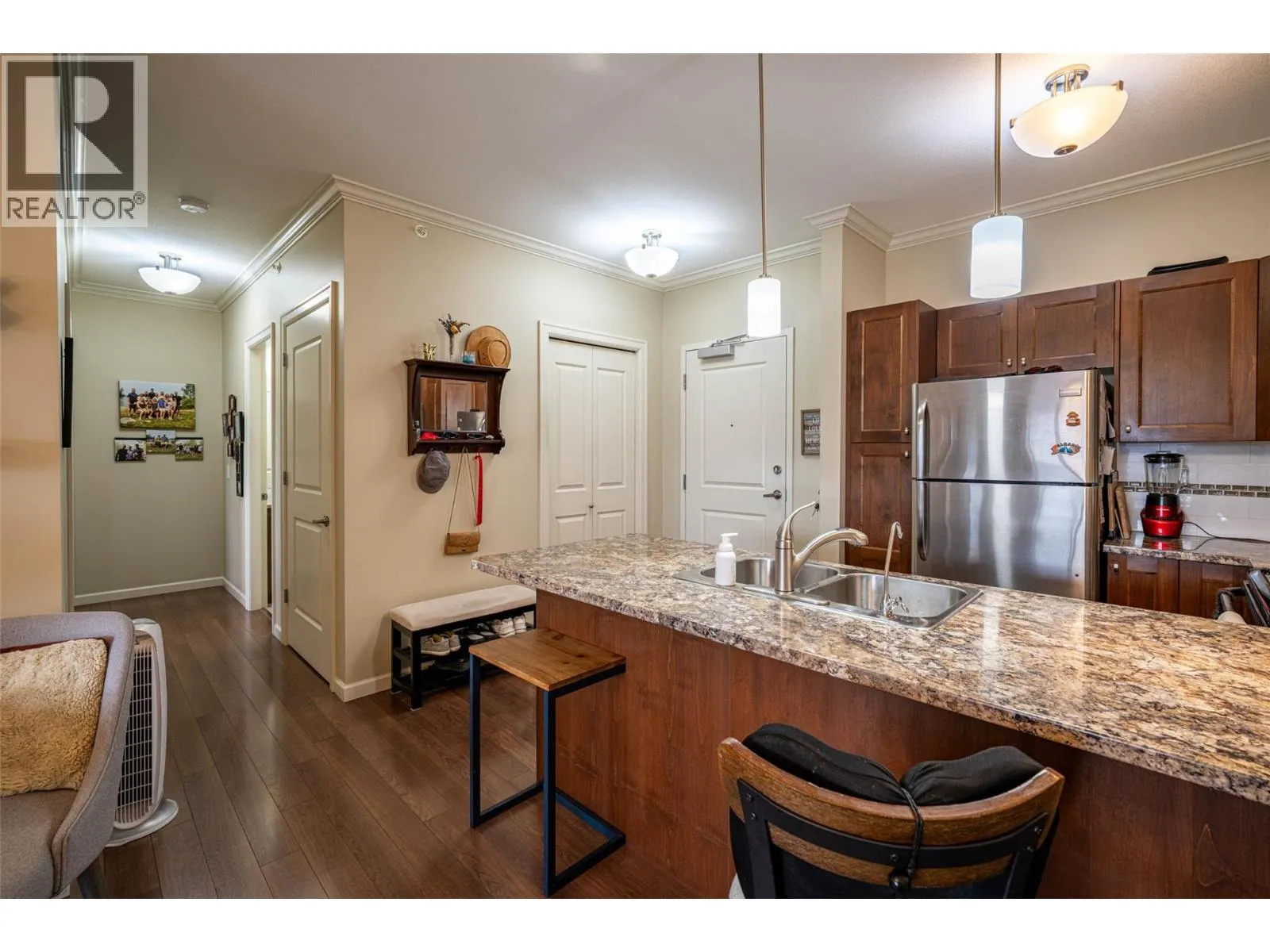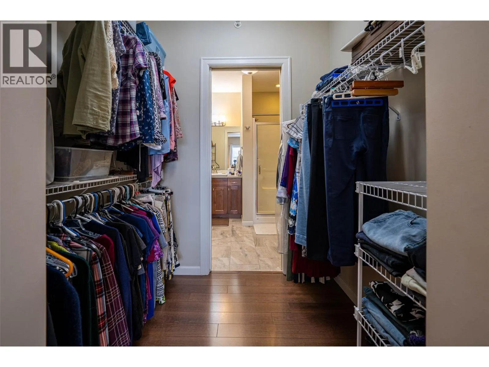 Rarely available, bright top floor unit with beautiful city and peek-a-boo lake views. This spacious 2 bdrm/2bath suite offers an open floor plan with a u-shaped kitchen complete with 4 stainless appliances. A deck is located off the the living room where you can sit outside & enjoy the views. The master can easily accommodate a king bed, has a walk-thru closet that connects to the xtra lrg ensuite bath w/walk-in shower. The second bedroom is a decent size and the main bath does offer a tub for the occasional soak. Secure u/g parking + a downtown location just a few minutes to all shopping! Catherine Gardens is a non-profit society dedicated to providing affordable 55+ housing with a carefree lifestyle & peace of mind of a newer building. No responsibility to sit on a strata council & a maintenance/occupancy fee that covers TAXES, water, sewer, garbage, snow removal, hot water, electrical/plumbing maintenance & repairs, appliance repairs/replacement & landscaping. You pay content/deductible insurance, hydro, cable & telephone only! No property purchase tax & 1 Year Schubert Center Membership. Building is pet friendly so bring your dog or cat! (id:27476)