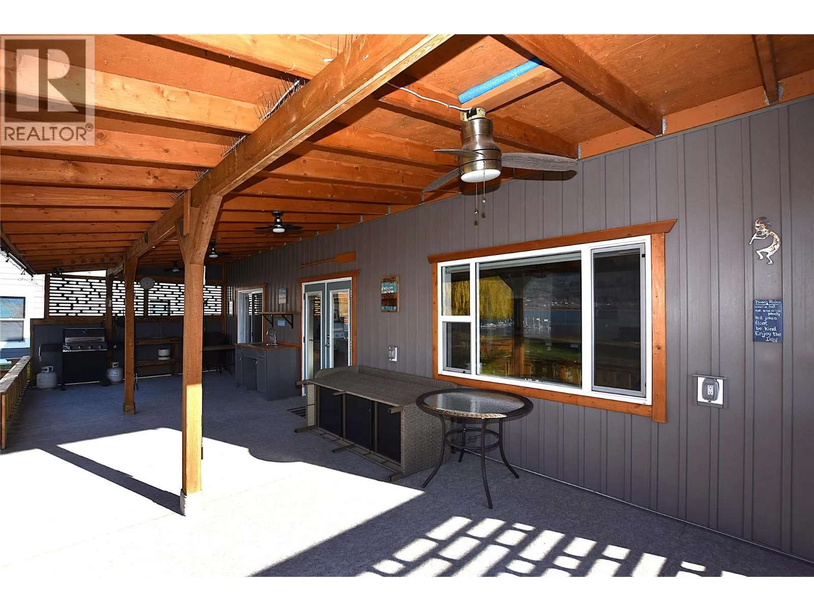 Your Okanagan Lakeside Escape Awaits â 103-75 Antoine Road, Vernon, BC Wake up to calm waters and fresh Okanagan air in this beautifully maintained lakeside home at Head of the Lakeâjust 15 minutes from Vernon and minutes to the golf course. Enjoy an open, bright layout with vaulted ceilings up to 12 feet and expansive windows showcasing stunning lake views. The modern kitchen features a large island with seating for five. The king-sized primary bedroom includes French doors to a spacious west-facing covered deck, perfect for sunset evenings. The deck also offers access from the main living area and includes a counter and sink for easy outdoor entertaining. A cozy wood-burning stove warms the living room on cooler days, while the east-facing front deck is ideal for sunrise coffees. The attached garage offers a workbench, sink, and excellent storage, plus space to park your vehicle. Additional room for an RV and guest parking is available. The fully landscaped yard includes fruit trees, raspberry canes, a garden area, and two storage sheds. Located on First Nations leased land with a 25-year lease available, the annual lease is $7,000 (reviewed every 5 years). Services include lake-intake water and septic. No property taxes or property transfer tax. The beach in front, while shared, is rarely used by others. An ideal full-time home or affordable lakeside getawayâoffering incredible value and true Okanagan living at a fraction of freehold cost. Homes this immaculate, this well cared for, and this well priced are few and far between. Come experience the serenity and beauty of Okanagan lake life for yourselfâyou may never want to leave. (id:27476)