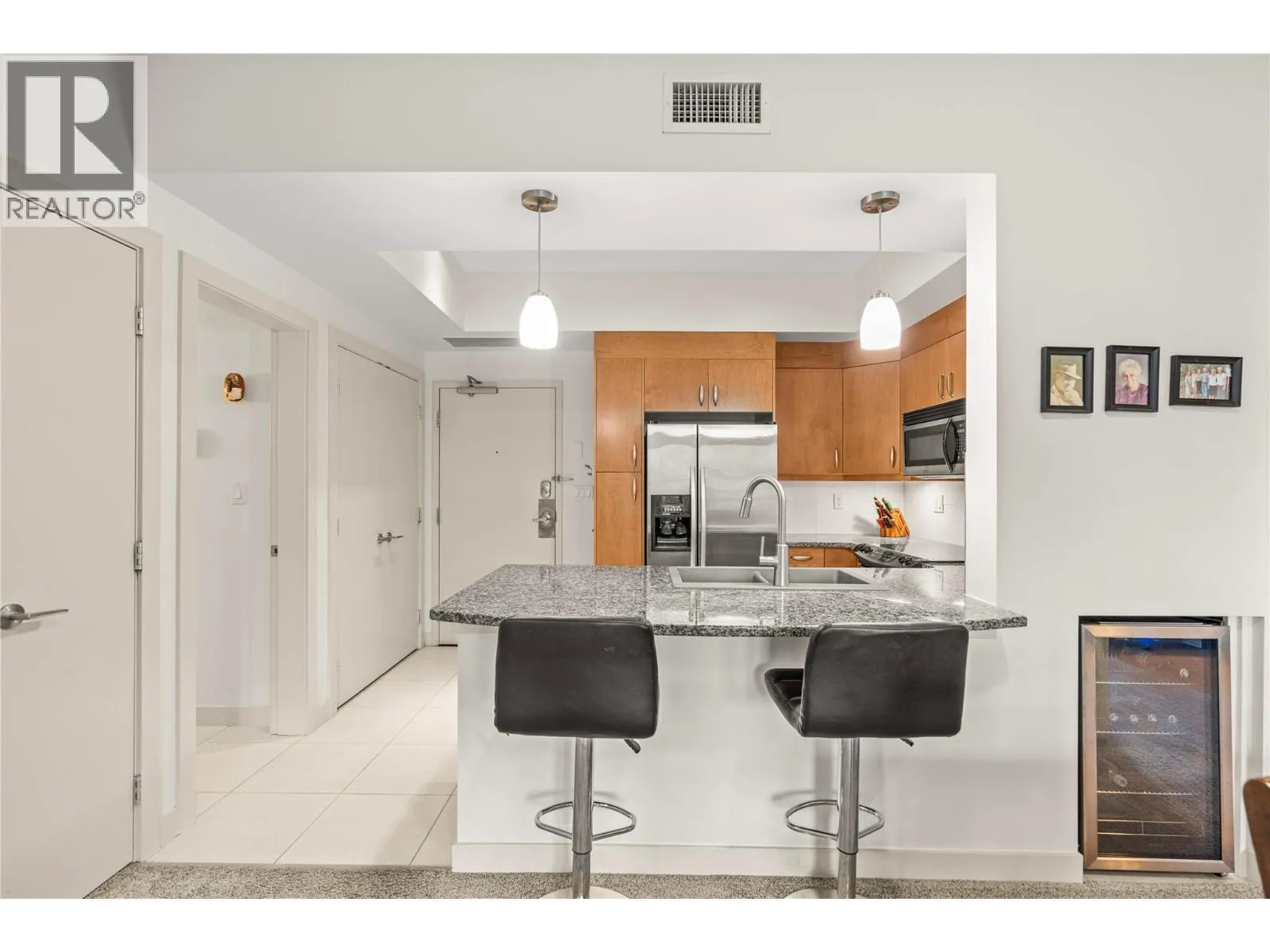 Welcome to The Strand Lakeside Resort on the shores of Okanagan Lake, where resort-style living meets the quiet beauty of Okanagan Landing. This beautifully maintained west facing 2 bed, 2 bath ground-floor condo offers a quiet & peaceful setting with effortless access & a private patio complete with a gas BBQ outlet, perfect for evening relaxation. Inside, you'll find a bright & inviting layout featuring a gas fireplace, granite countertops, in-suite laundry & recent updates including new interior paint, carpeting & a new heat pump for year-round comfort. All GST and DCC fees have already been paid, & with short-term rentals permitted, this unit offers incredible flexibility whether you plan to live here full time, enjoy it as a personal getaway or generate revenue. The Strand is known for exceptional amenities: a private beachfront, resort-style pool & year-round hot tub, secure underground parking, storage locker, bike storage, paddleboard & kayak racks, & a beautifully landscaped courtyard with a fire bowl for owners to gather & unwind. A private marina with boat slips available for purchase, making lake life even more convenient. Pets are welcome with restrictions & the location is outstanding, minutes to Ellison Provincial Park for hiking & biking adventures, waterfront trails, golf, wineries & all the recreation the Okanagan is famous for. This rare offering delivers the perfect blend of lakeside relaxation, resort amenities & the freedom to live or rent on your terms. (id:27476)