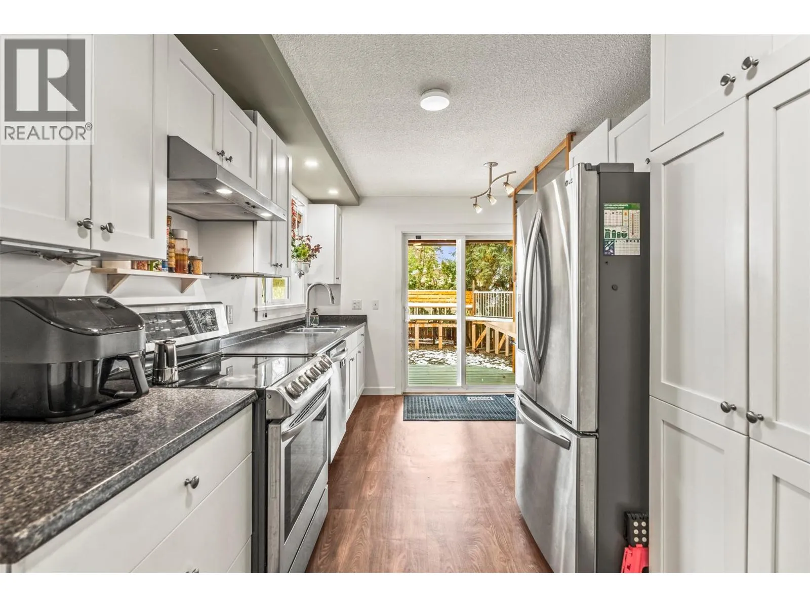 Perfect starter home in Vernon with a versatile detached shop/garage, ideally located in a quiet East Hill cul-de-sac. Just a block from Silver Star Elementary and walking distance to Vernon Secondary, this property offers unbeatable convenience for families. The flat 64 x 102 lot provides excellent usability, and the home has been thoughtfully updated and well maintained over the years. Inside, youâll find modern finishings, stainless steel appliances, and a bright, comfortable layout. Three bedrooms on the main level make family living easy, while the basement adds a fourth bedroom plus a spacious family room featuring a cozy gas fireplace. The upstairs living room adds even more charm with its wood-burning fireplace. With rear mudroom access, the lower level layout presents good potential for a future in-law suite if desired. Mechanical upgrades include a high-efficiency furnace, newer hot water tank, and updated windows, offering peace of mind and improved efficiency. The fully fenced backyard is a private, tree-lined oasis with mature hedges and plenty of space to enjoy. Separate storage shed adds practicality, and each summer the sellers set up a removable above-ground pool; the surrounding deck can remain or be removed based on buyer preference. A fantastic opportunity in a walkable, family-friendly neighbourhoodâhomes like this donât last. Just steps from Silver Star Elementary, this is the perfect place to grow your family. (id:27476)