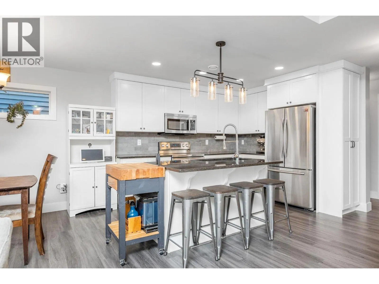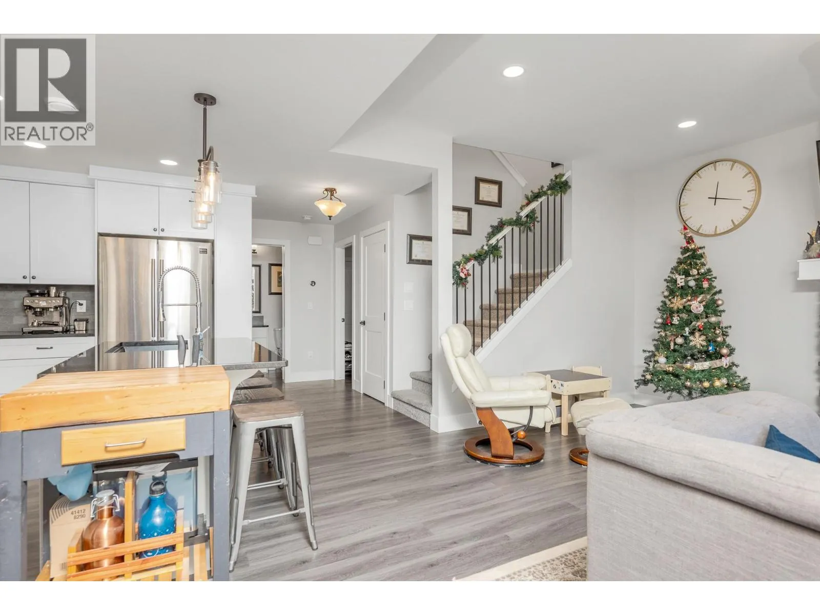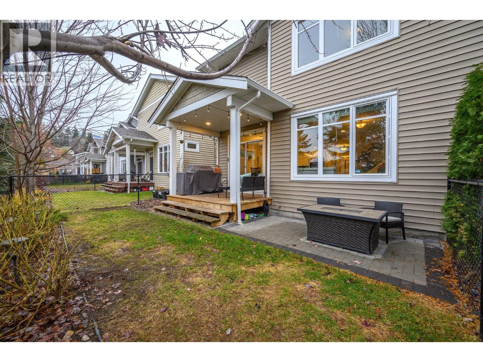 Welcome to Beachwalk Villas. This half-duplex style home is ideally located in the sought after Okanagan Landing area, close to Kin Beach, Paddlewheel Park, schools, walking and biking routes. The main floor offers a spacious entry hall and modern layout with an open concept kitchen featuring stainless steel appliances and quartz countertops, flowing into the dining and living areas. Patio doors open to a covered deck with a natural gas BBQ hookup. This leads to a private, fully fenced backyard with a new stone patio, perfect for entertaining, kids, or pets. A convenient mudroom off the double garage and a main floor half bathroom complete this level. The garage is pre-wired for an EV supercharger, ready for installation. Upstairs, youâll find the primary bedroom plus two generous secondary bedrooms, a full bathroom, and the laundry room. The spacious primary includes a walk-in closet and a beautifully finished ensuite with double sinks, quartz countertops, and a large tiled shower. Additionally this home features an easily accessible and useable 4 foot tall crawlspace running the full length of the home, providing excellent storage options. The community offers a playground and shared green space, making it ideal for families or pet owners. If youâre looking for a comfortable, move-in-ready home in a fantastic location, this one is a must-see. (id:27476)