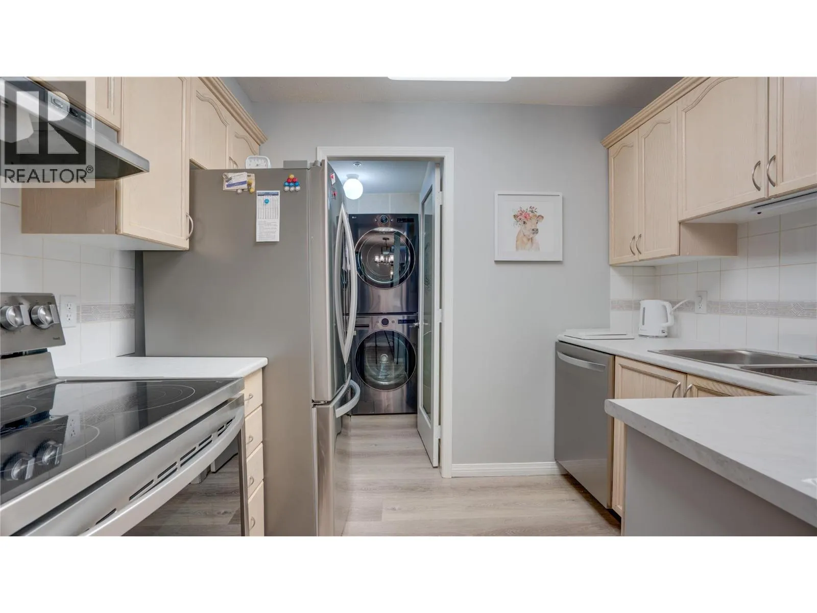 This move-in ready condo in the highly sought-after 55+ Alexis Park Gardens is waiting for its new owner! Quietly situated on the non-street side of the first floor, it offers peaceful living with convenient elevator access. The inviting floor plan is primarily open concept, featuring a spacious living room with a cozy corner gas fireplace and access to an enclosed sunroomâperfect for year-round enjoyment. The generous dining area is enhanced by a modern, dimmable light fixture, creating the ideal ambiance for any occasion. The fully equipped kitchen boasts recently updated countertops, a new sink, and upgraded stainless steel LG appliances. Just off the kitchen, you'll find a practical storage/laundry room complete with shelving and a newer LG stacking washer and dryer. The primary bedroom includes a 4-piece ensuite, while the large second bedroom is conveniently located near the main 4-piece bathroom. The home has seen numerous recent updates, including vinyl plank flooring, fresh paint, new alarms, cedar-lined closets, new toilets, new window screens, and professionally cleaned draperies. Enjoy easy walking access to the Schubert Centre, FreshCo, downtown eateries, and local shops. The unit also includes one assigned parking stall and a storage locker in the secure underground parking. (id:27476)