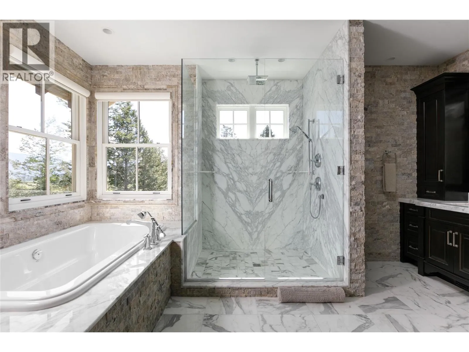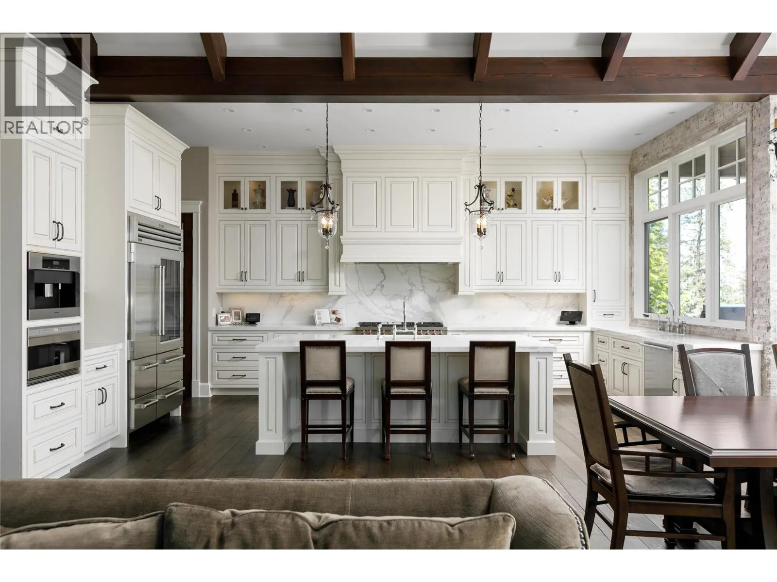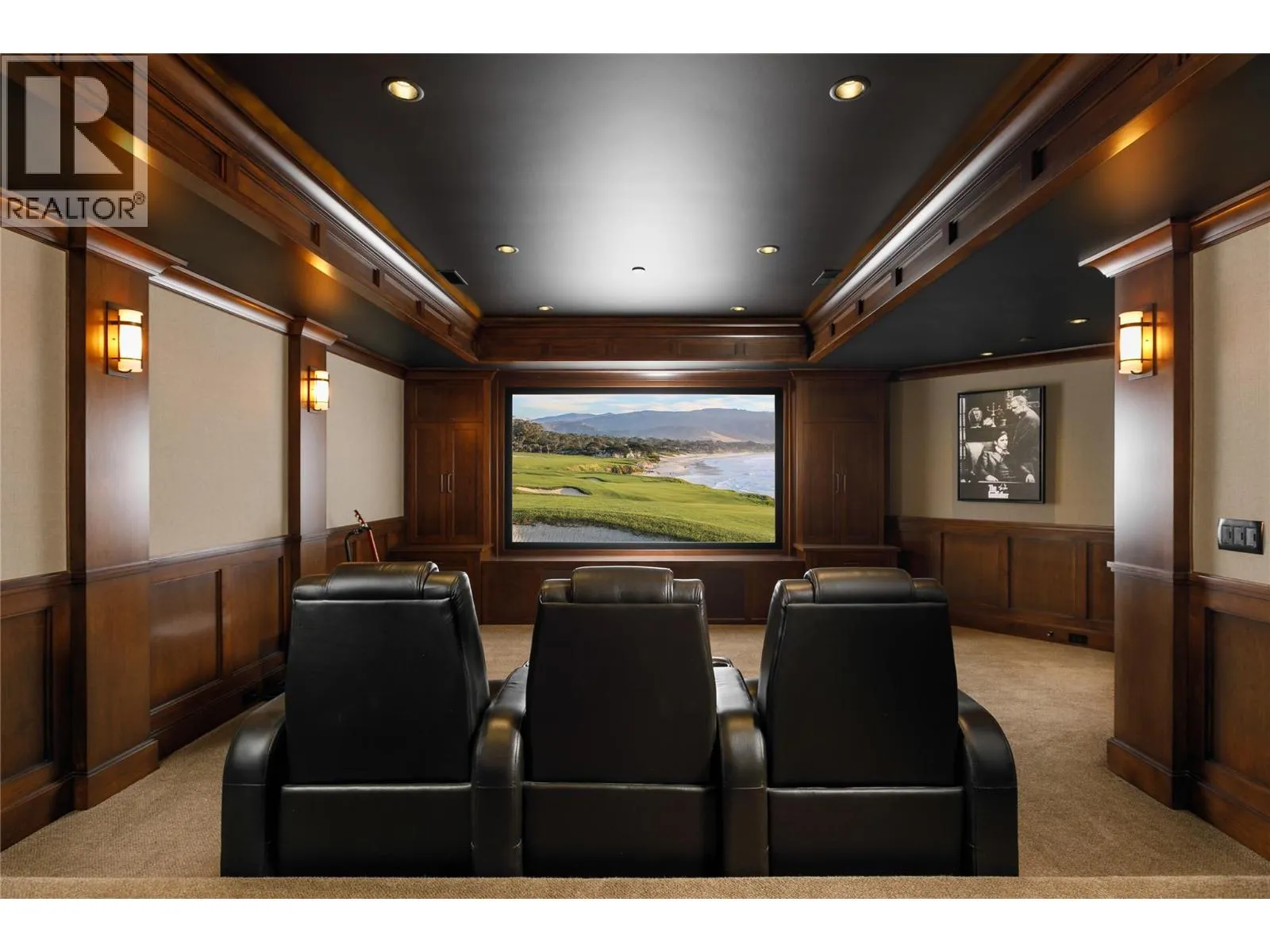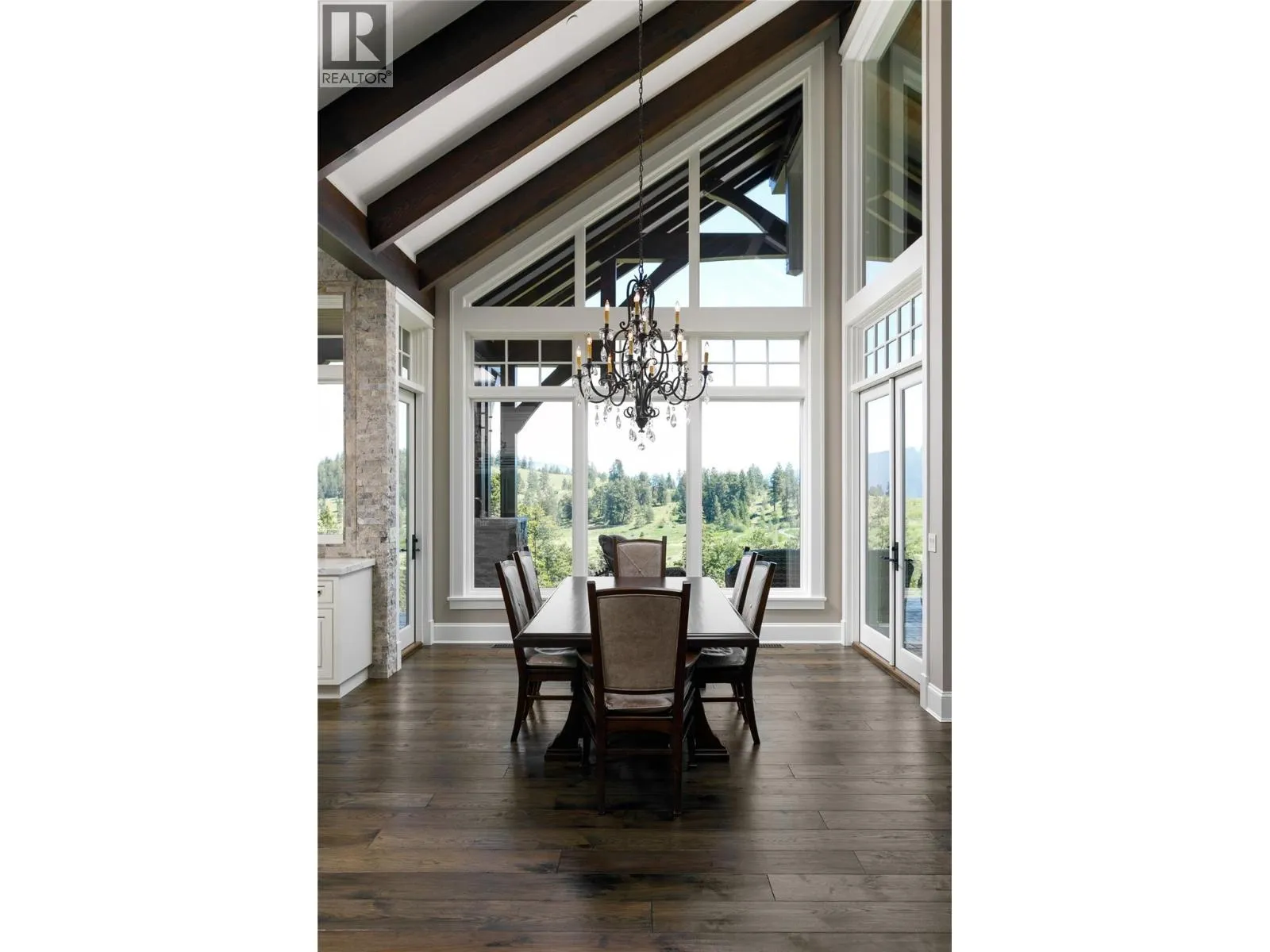 Your lifestyle needs that perfect home in a perfect setting! The Predator Ridge Community offers two world class championship golf courses, state-of-the-art fitness centre, tennis & pickleball courts, a vibrant village center and an endless trail system! This exceptional estate home sits at the end of a private cul-de-sac, offering expansive mountain and golf course views with breathtaking sunrises! Built by Heartwood Homes, it showcases exquisite craftsmanship with Calacatta marble, split-faced travertine, fir timber beams, hickory engineered hardwood, and intricate door and window details. The chef-inspired kitchen, featuring Miele, Wolf, and Sub-Zero appliances, flows into a sunlit great room with vaulted ceilings and a grand piano niche. The serene primary suite includes a see-through fireplace, marble slab shower with stone walls, and a custom walnut walk-in closet. The in-floor heated lower walk-out level is designed for entertainment, featuring a state-of-the-art theatre, games area, wet bar, and wine room. Outdoors, a Fujiwa porcelain-tiled saltwater pool, 10-foot hot tub, and multiple sitting areas with two exterior kitchens embrace the Okanagan lifestyle, while a cascading waterfall adds to the tranquility. A heated three-car garage completes this remarkable property. (id:27476)
