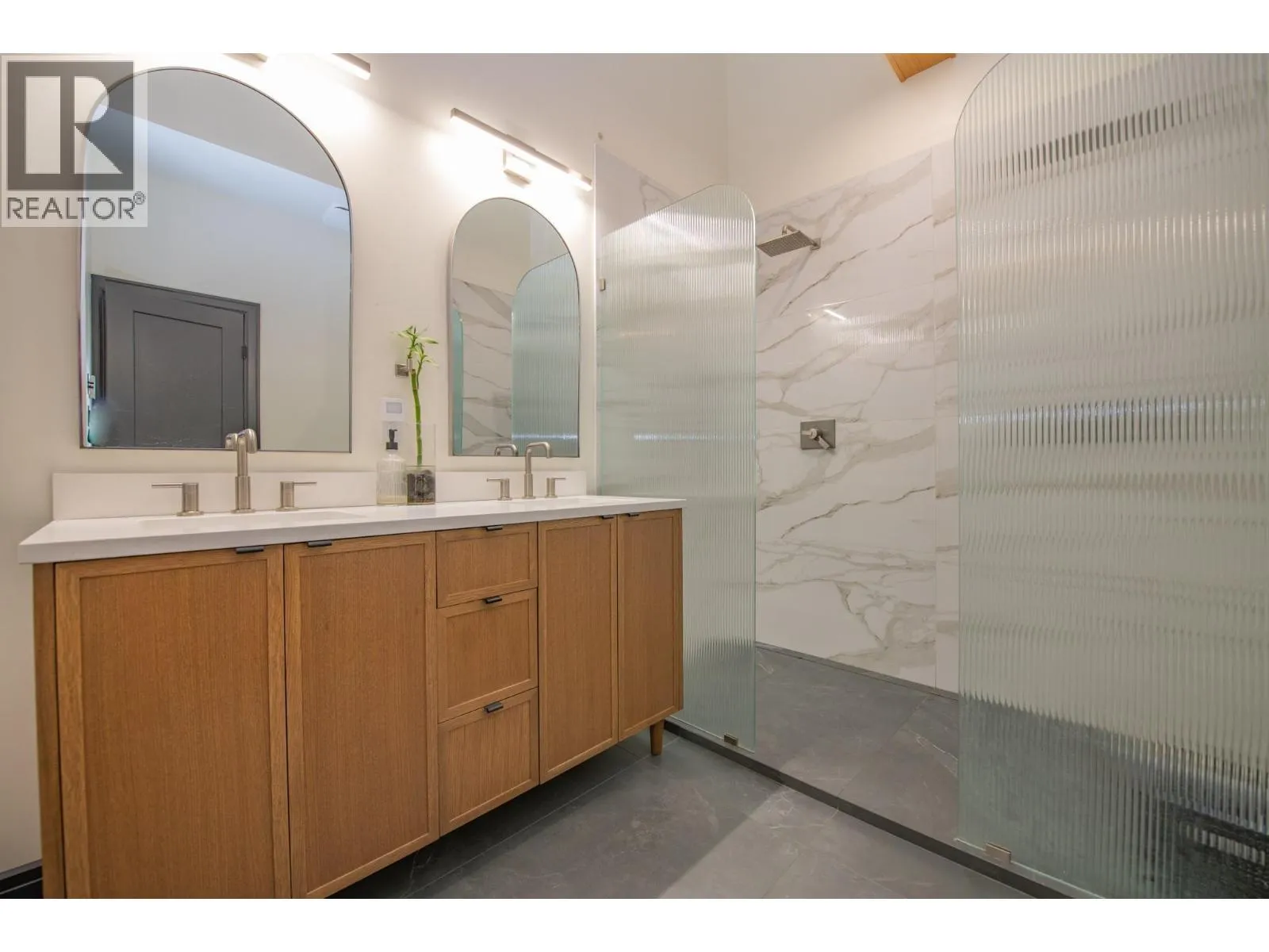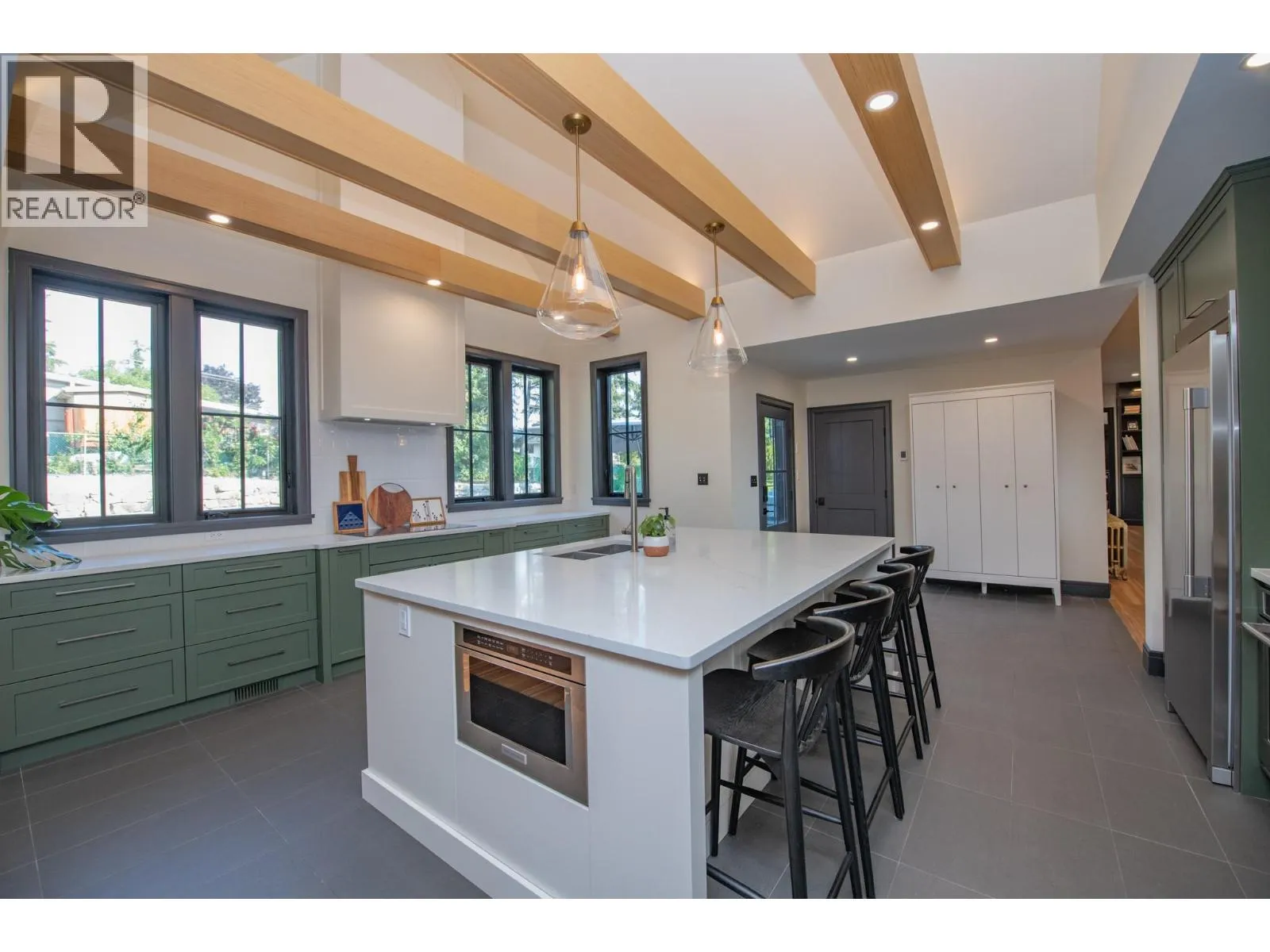 This 1912 heritage brick home sits proudly in Vernonâs coveted East Hill, blending timeless architecture with a full modern transformation. Offering 5 bedrooms and 4 bathrooms, the home features soaring vaulted ceilings, custom cabinetry, quartz counters, and premium appliances in a chefâs kitchen designed for gatherings. Bathrooms have been reimagined with spa-inspired finishes, heated tile, freestanding tub, and double vanities. The neatly finished basement provides abundant storage along with flexible space for a gym, home theatre, or additional recreation. Behind the character, the systems have been completely updated: new windows and doors, enhanced insulation, new 200amp electrical service and wire, new plumbing throughout, upgraded HVAC, and central air for year-round comfort. Original hardwoods pair seamlessly with new windows and doors, efficient mechanicals, and carefully chosen finishes. Iconic brick arches frame a wide veranda overlooking landscaped gardens, mature trees, and a spacious backyard with stonework and patio for entertaining. Just minutes from schools, parks, and Vernonâs downtown core, this property offers more than a homeâit delivers the East Hill lifestyle: character, community, and convenience in one of the Okanaganâs most desirable neighbourhoods. (id:27476)