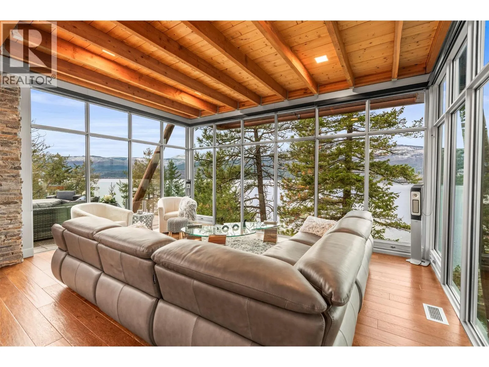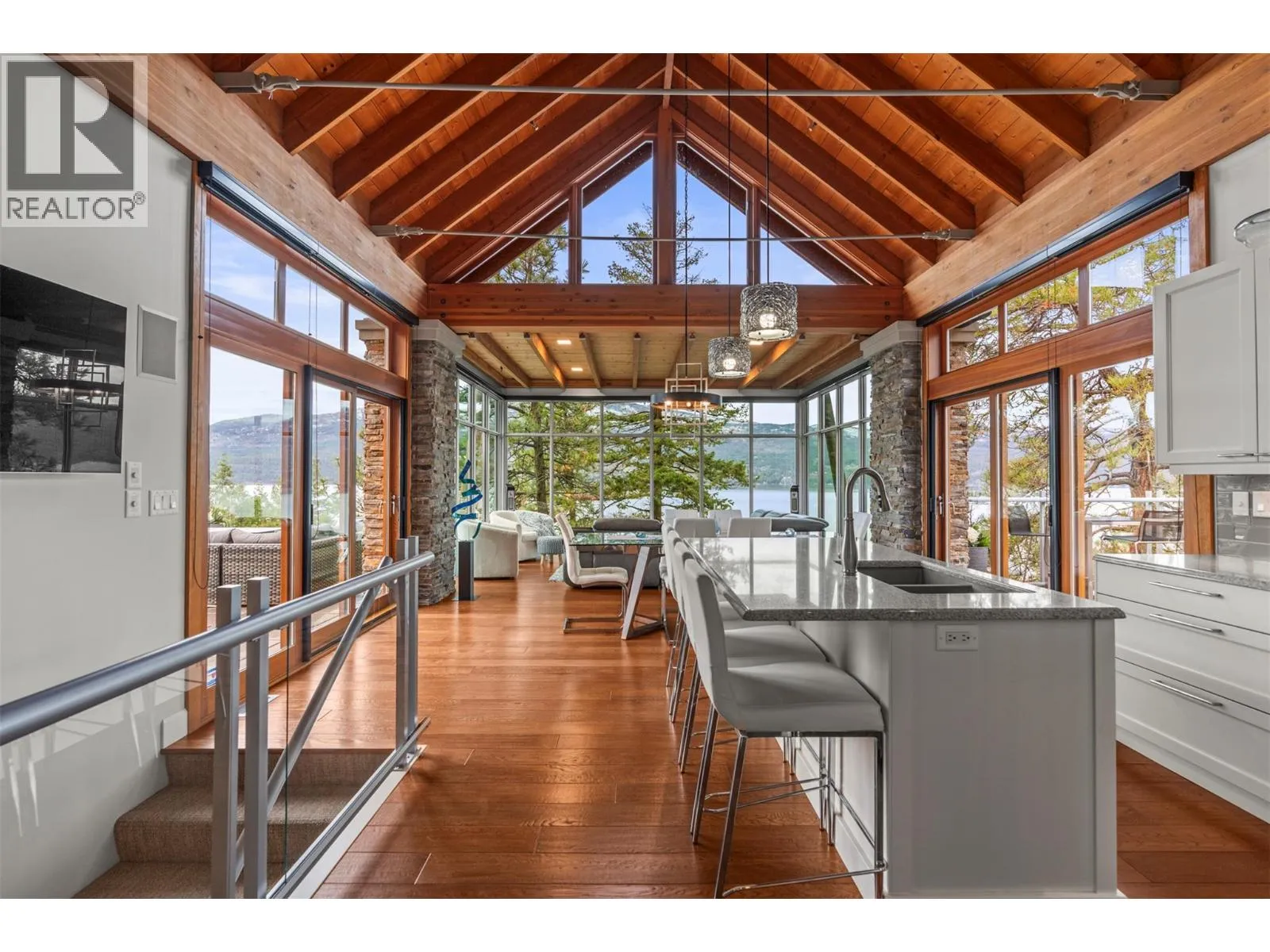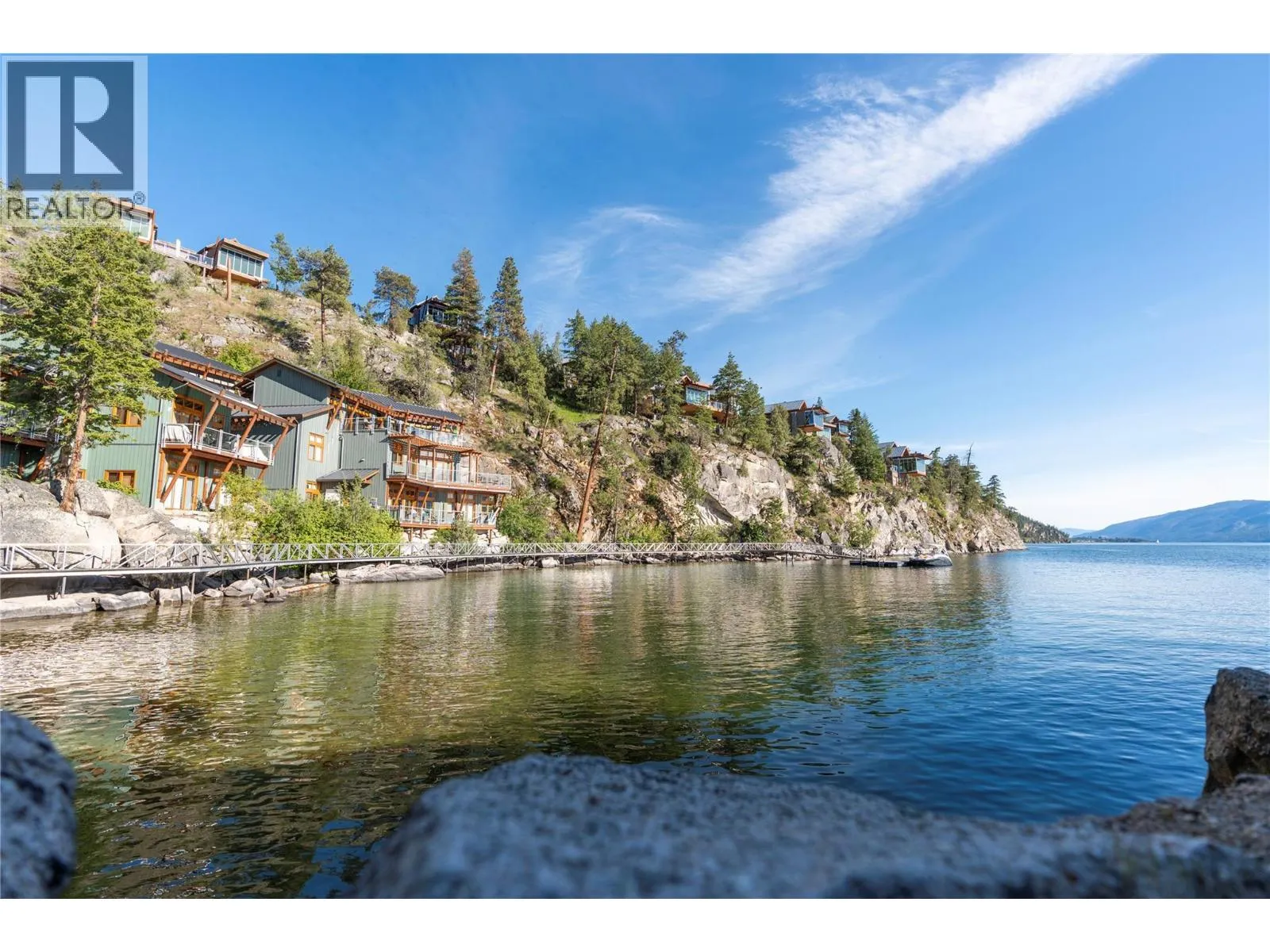 Experience refined lakefront living with unobstructed panoramic views from this stand-alone Ridge Home in the prestigious Outback on Okanagan Lake. Designed for effortless elegance, it features an airy upper level with vaulted ceilings, rich hardwood floors, and a chef-inspired kitchen with custom white cabinetry, quartz surfaces, a walk-in pantry, and an elegant island. Floor-to-ceiling glass and two view decks create seamless indoorâoutdoor living. A stylish den with a built-in bar and wine fridge, plus a powder room, completes the level. The lower floor offers three generous bedrooms, including a lavish primary with a reimagined walk-in closet and ensuite with in-floor heat, plus a private patio with a hot tub & outdoor shower. The Outback Lakeside Resort is not simply another Vernon community. With multiple tennis courts, pools and hot tubs, a fitness center, two private beaches and a marina, this handsome lakefront property offers a unique lifestyle that goes beyond luxury. A marina boat slip is available separately if desired. (id:27476)