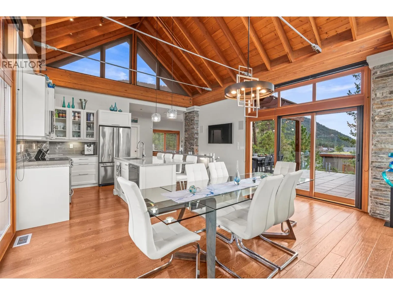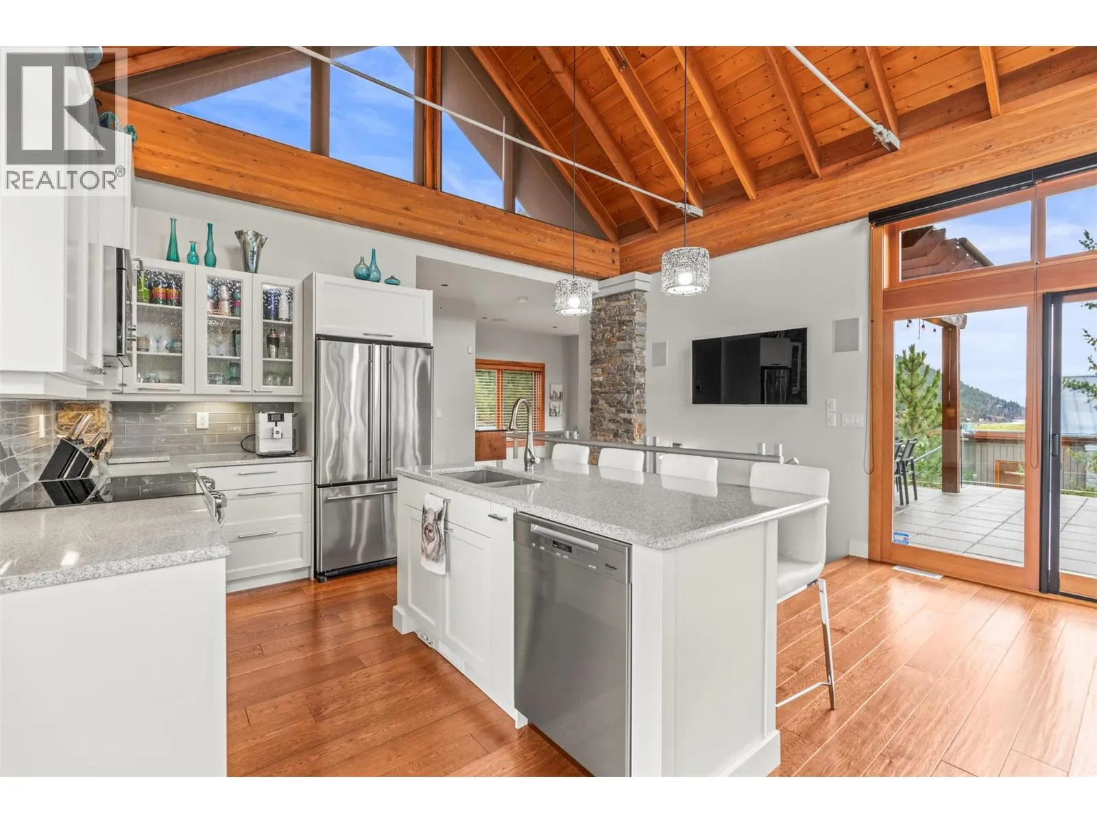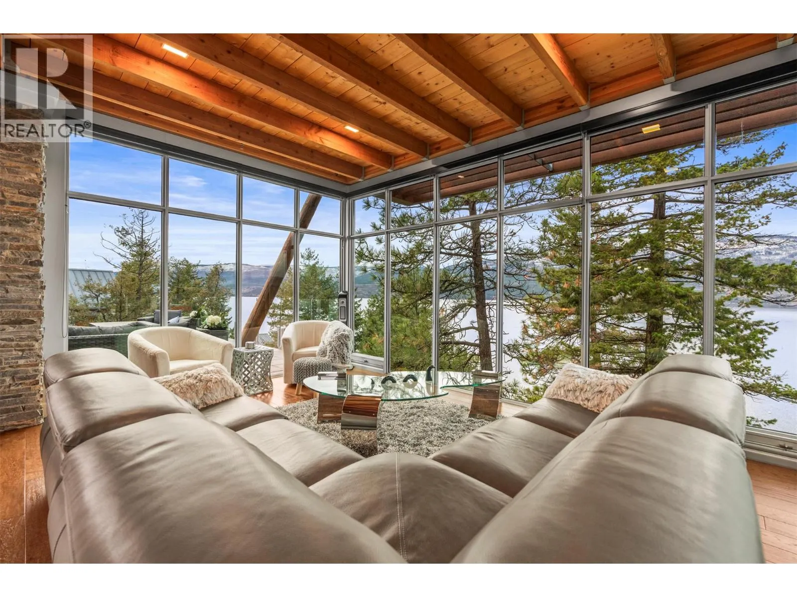 Experience refined lakefront living with unobstructed panoramic views from this stand-alone Ridge Home in the prestigious Outback on Okanagan Lake. Designed for effortless elegance, it features an airy upper level with vaulted ceilings, rich hardwood floors, and a chef-inspired kitchen with custom white cabinetry, quartz surfaces, a walk-in pantry, and an elegant island. Floor-to-ceiling glass and two view decks create seamless indoorâoutdoor living. A stylish den with a built-in bar and wine fridge, plus a powder room, completes the level. The lower floor offers three generous bedrooms, including a lavish primary with a reimagined walk-in closet and ensuite with in-floor heat, plus a private patio with a hot tub & outdoor shower. The Outback Lakeside Resort is not simply another Vernon community. With multiple tennis courts, pools and hot tubs, a fitness center, two private beaches and a marina, this handsome lakefront property offers a unique lifestyle that goes beyond luxury. A marina boat slip is available separately if desired. (id:27476)