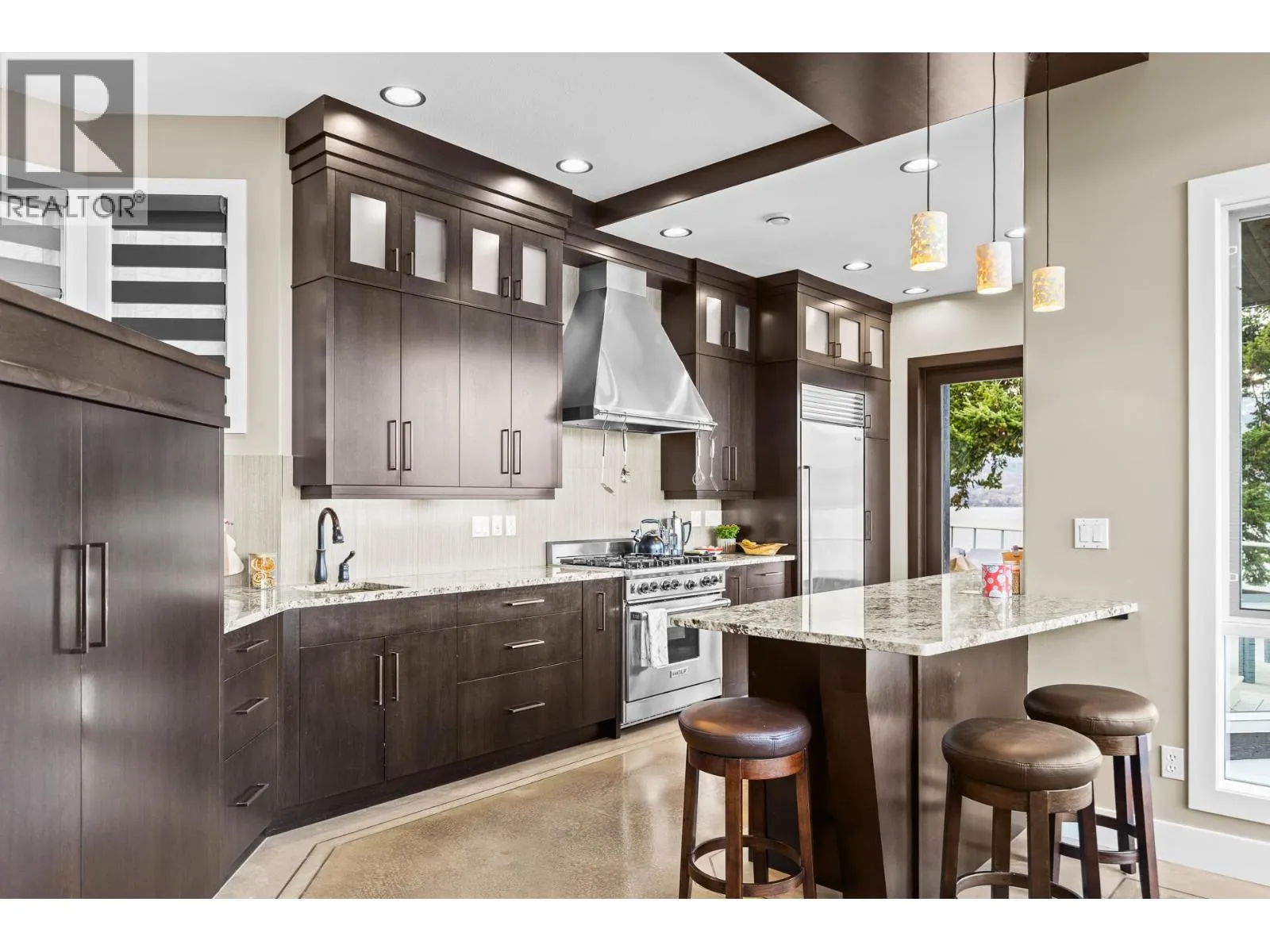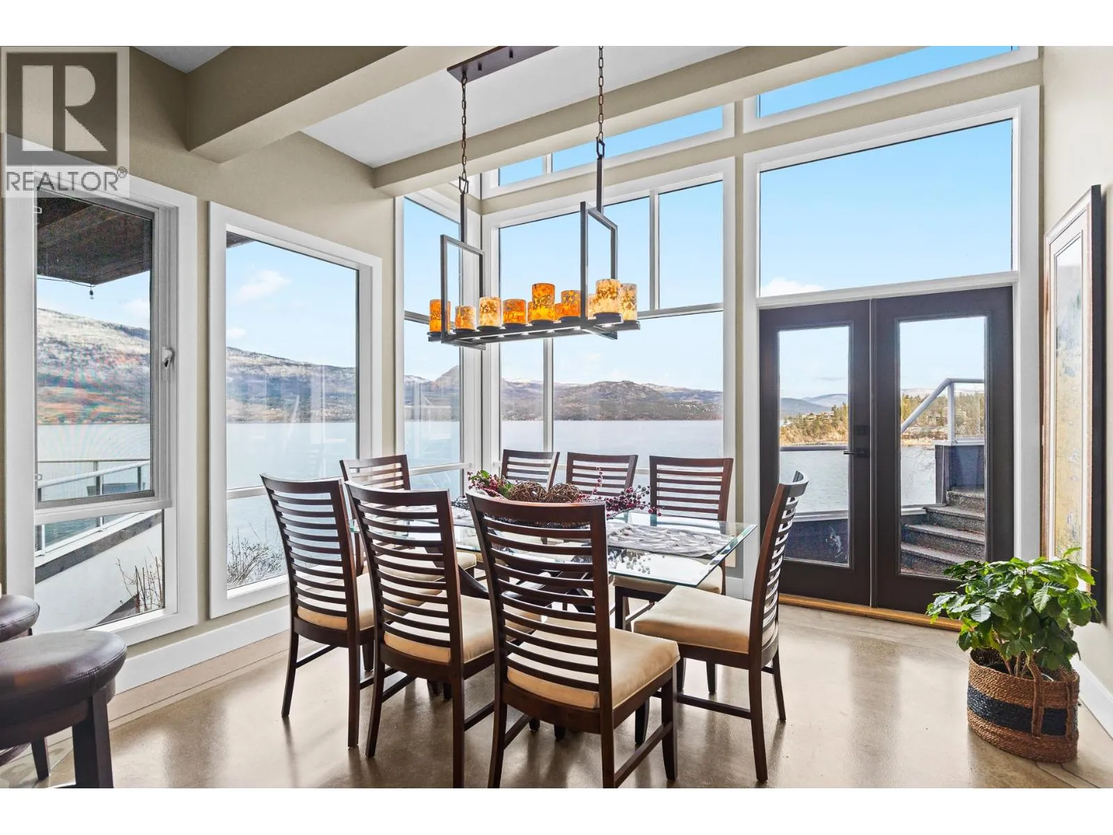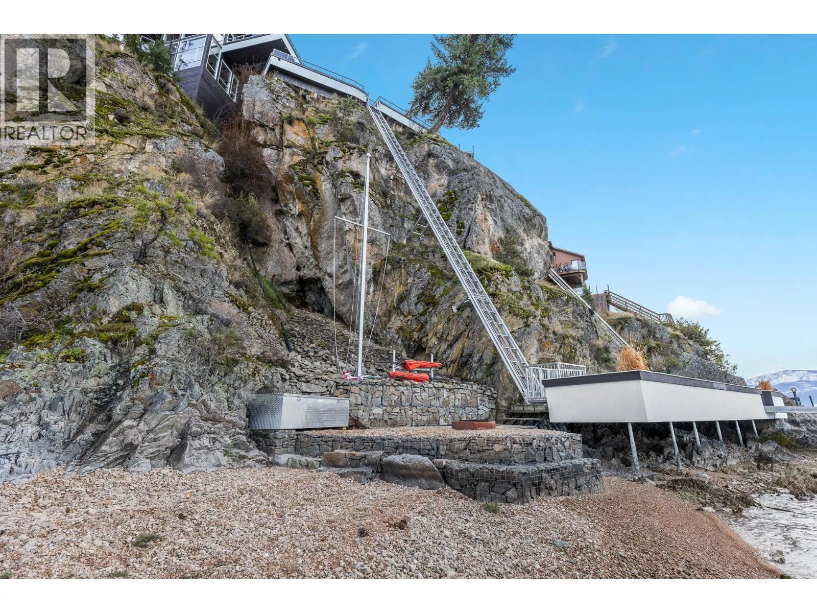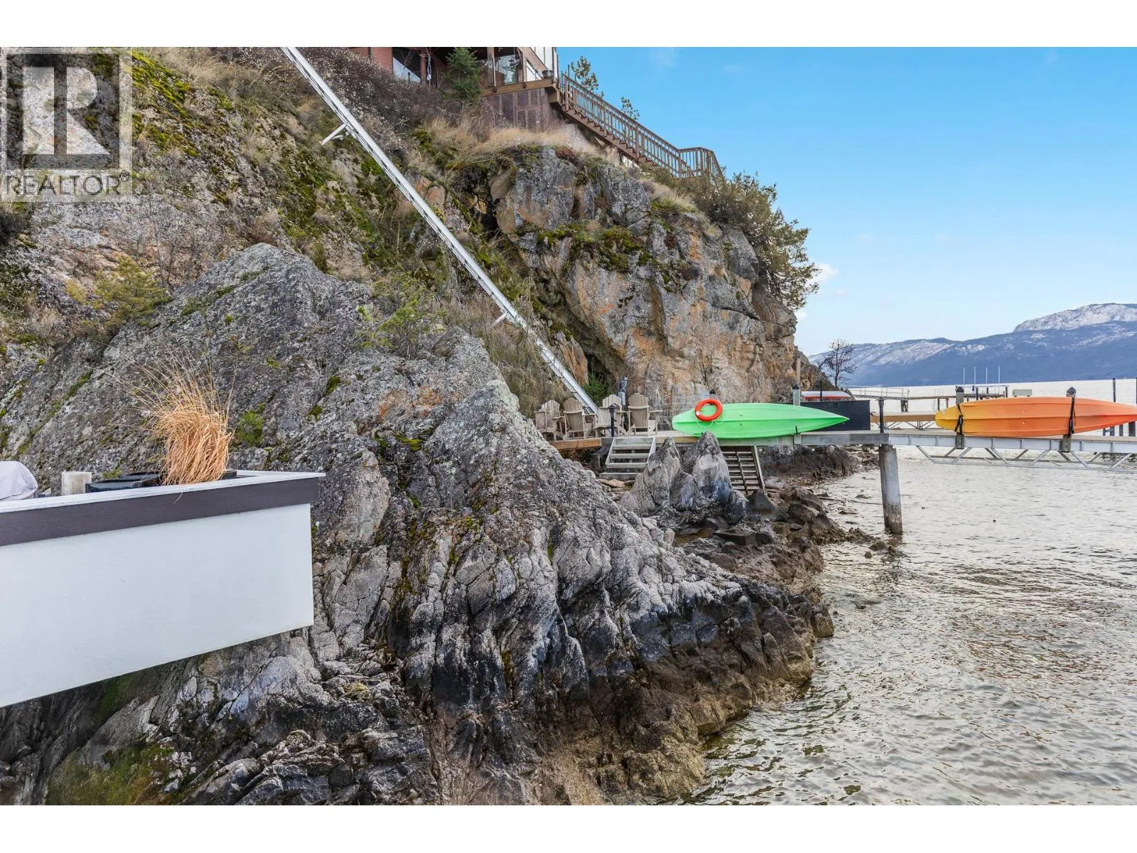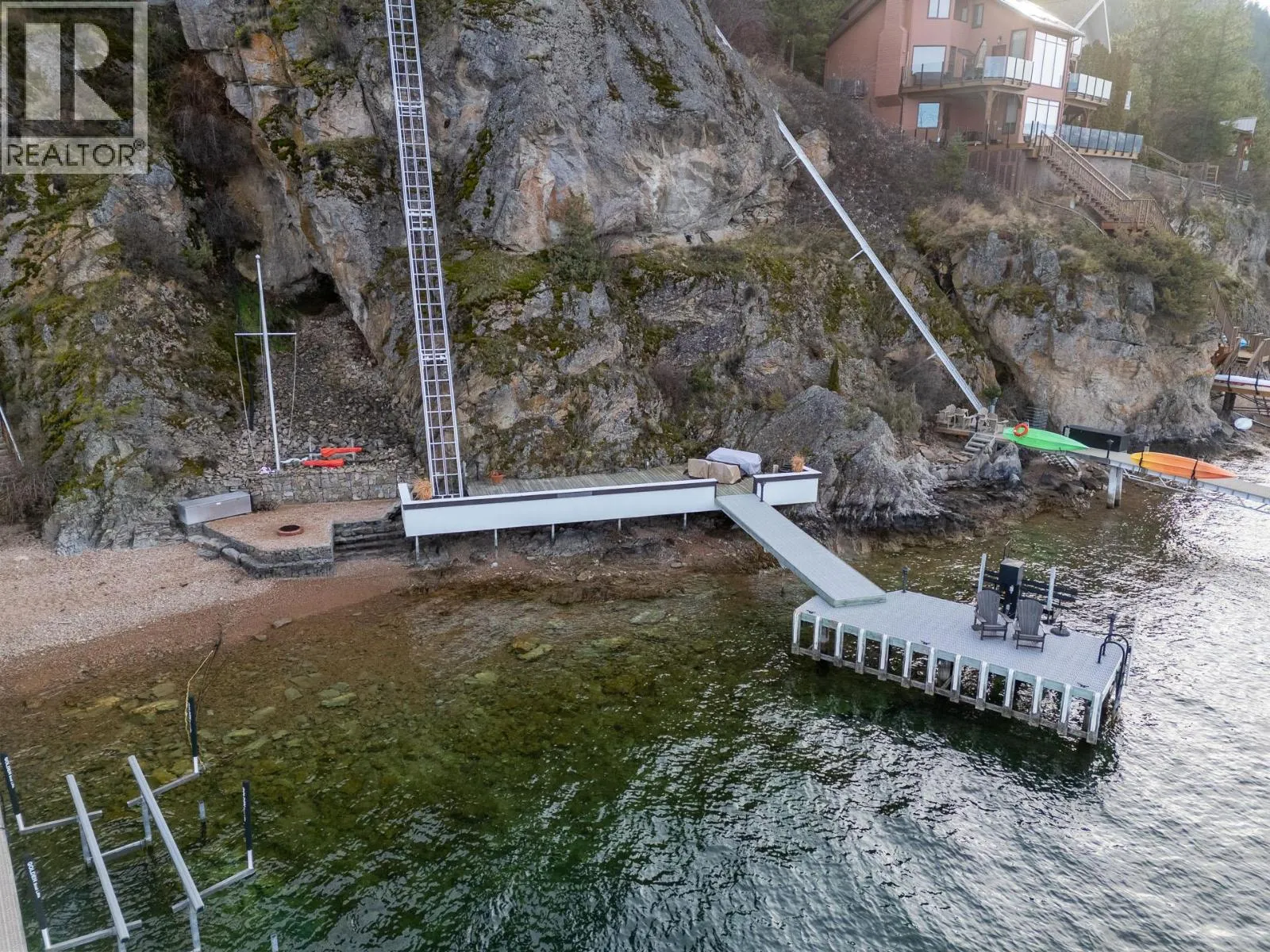 A spectacular 4/5 bedroom lakefront home offering breathtaking views and exceptional waterfront amenities. Start your mornings with coffee on one of four expansive balconies overlooking the lake and surrounding mountainsâor enjoy the serenity from your private dock. Perfectly positioned to maximize lake views, sunlight, and shade, the open-concept design features soaring ceilings, oversized windows, and abundant natural light, creating the true feeling of living on the water. The home showcases a fully remodeled gourmet custom kitchen with top-of-the-line appliances, custom cabinetry, and premium countertops. All bathrooms and the laundry room have also been completely updated, including a spa-inspired primary ensuite that welcomes you into a luxurious retreat with custom walk-in closets. The living room is truly a showpiece, highlighted by a striking rock feature that adds character, warmth, and a memorable focal point for entertaining. Designed for comfort and convenience, the property includes two trams that allow for aging in place and provide effortless access for you and your guestsâfrom the home down to the lakefront patio and attached dock. The expansive dock area features a boat lift, ready for your enjoyment and easy lake access. This custom, modern lakefront residence offers a rare opportunity to embrace waterfront living and make the lake an integral part of your active lifestyle (id:27476)