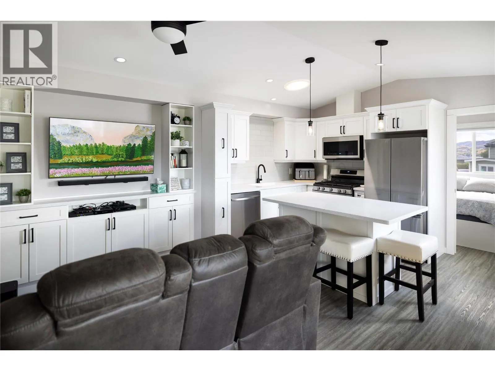 This custom-designed 2-bedroom, 1.5-bath home is nearly new and it showsâbuilt in 2022 and set on a private corner lot in the highly sought-after Swan Lake RV Resort. Offering the perfect blend of comfort, community, and resort-style living, this park model home is ideal for your lifestyle! Enjoy a spacious layout with a large entry - sun porch, and an open-concept living area centrally located between the two bedrooms. The front (guest) bedroom includes a convenient 2-piece ensuite, while the second bedroom at the rear offers additional privacy. The open kitchen and living room create a welcoming space for gatherings, extending seamlessly into the bright sunroom. Step outside to the covered back deck and beautifully landscaped yard, complete with a gazebo, BBQ area, and powered shed with waterâperfect for entertaining or relaxing in style. Located steps from the shore of Swan Lake, bring your kayak, or paddle board! This friendly, amenity-rich community features a clubhouse, pool, workshop, and regular social events like Friday Happy Hourâmaking it easy to feel right at home. This residence offers a low-maintenance, lock-and-leave getaway, this home checks all the boxes. Donât miss this unique opportunityâbook your showing today! (id:27476)