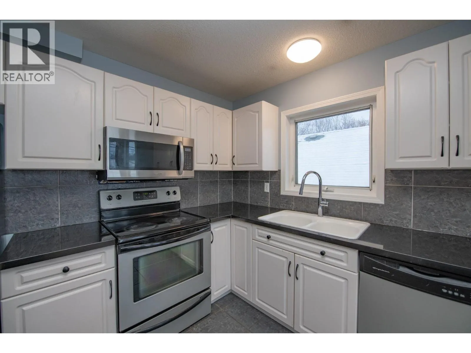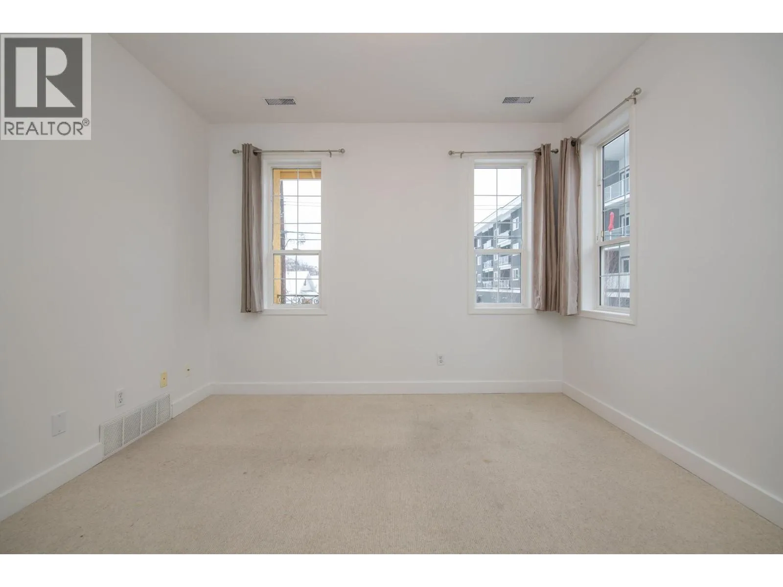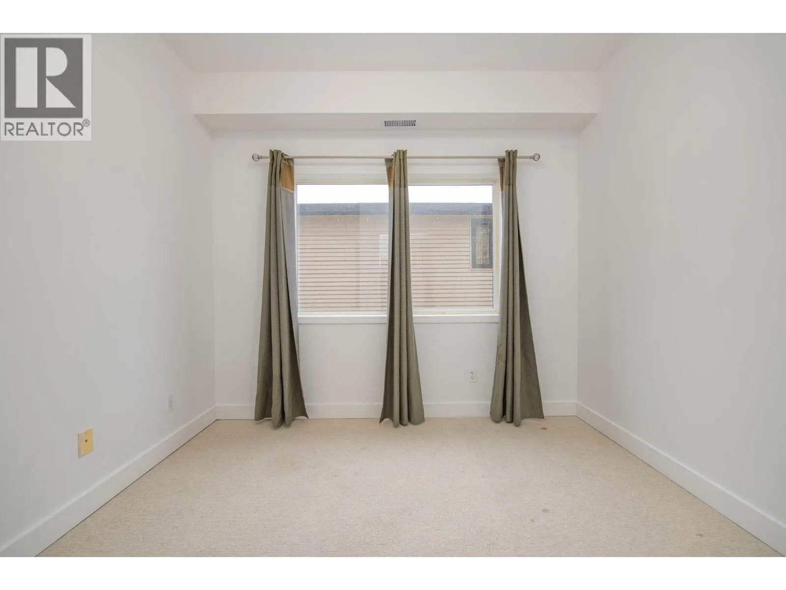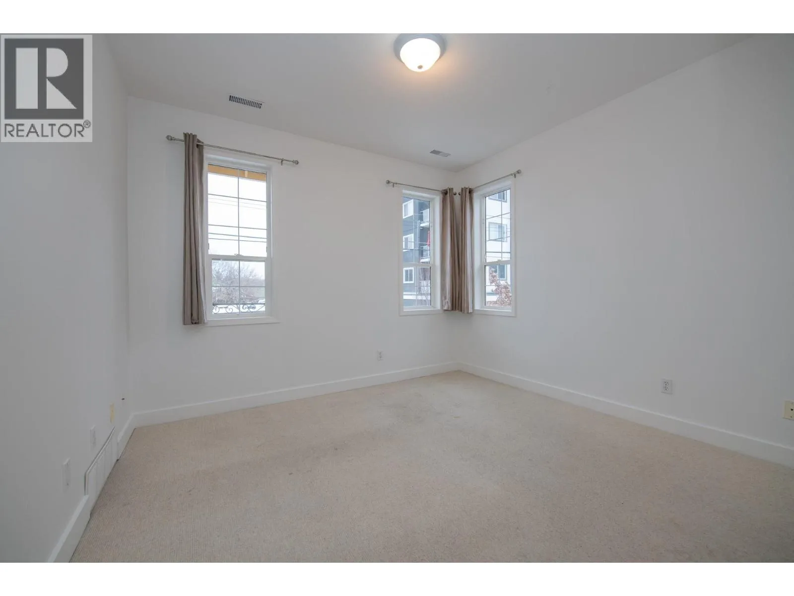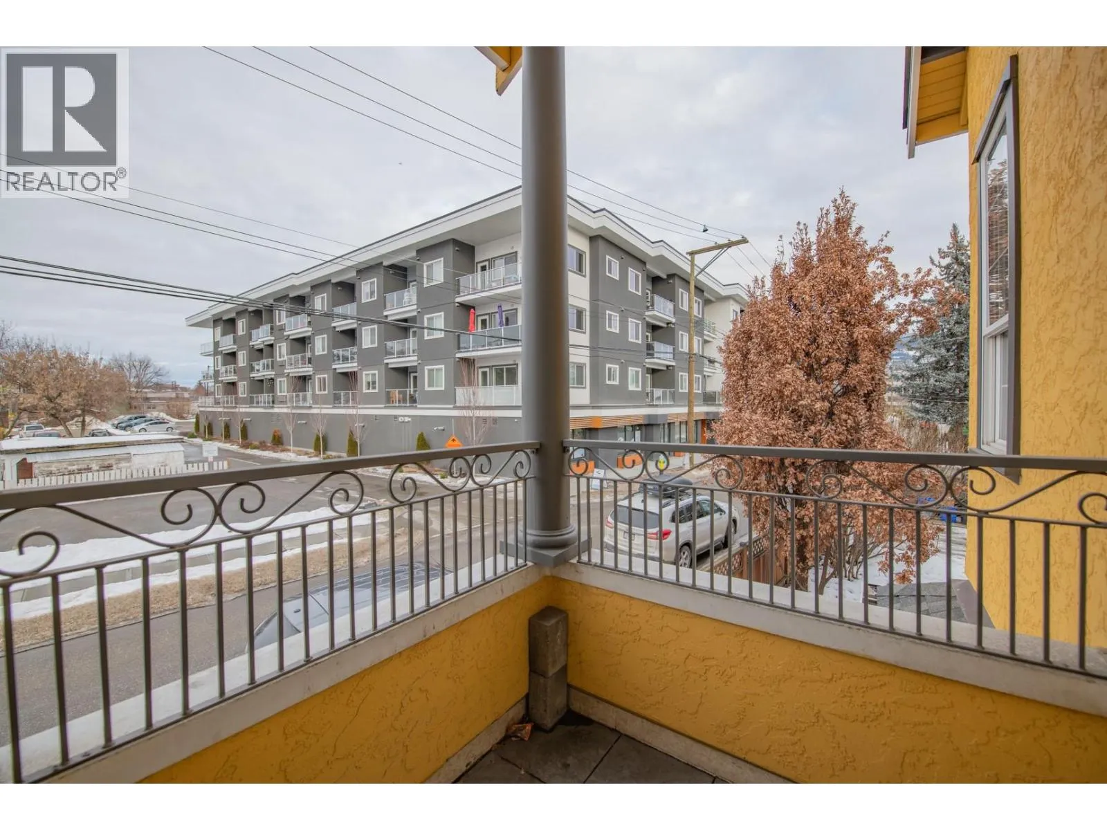 Unique 2 level townhome in downtown Vernon. This spacious townhome features over 1500 sq/ft of living space, including 3 bedrooms and 2 full bathrooms. The spacious kitchen has solid surface counters, stainless steel appliances and an eat in island. The living room is bright, flows nicely from the dining room and has real hardwood flooring. 2 bedrooms and a bathroom complete the main living level. Upstairs, you will find a oversized loft style master bedroom with vaulted ceiling plus an adjoining bathroom. Plenty of storage, balcony patio and tall ceilings make this unit stand out. Small 3 unit strata with quaint design, walking distance to all shops and amenities downtown has to offer. Freshly painted,1 pet allowed. Book your showing today! (id:27476)
