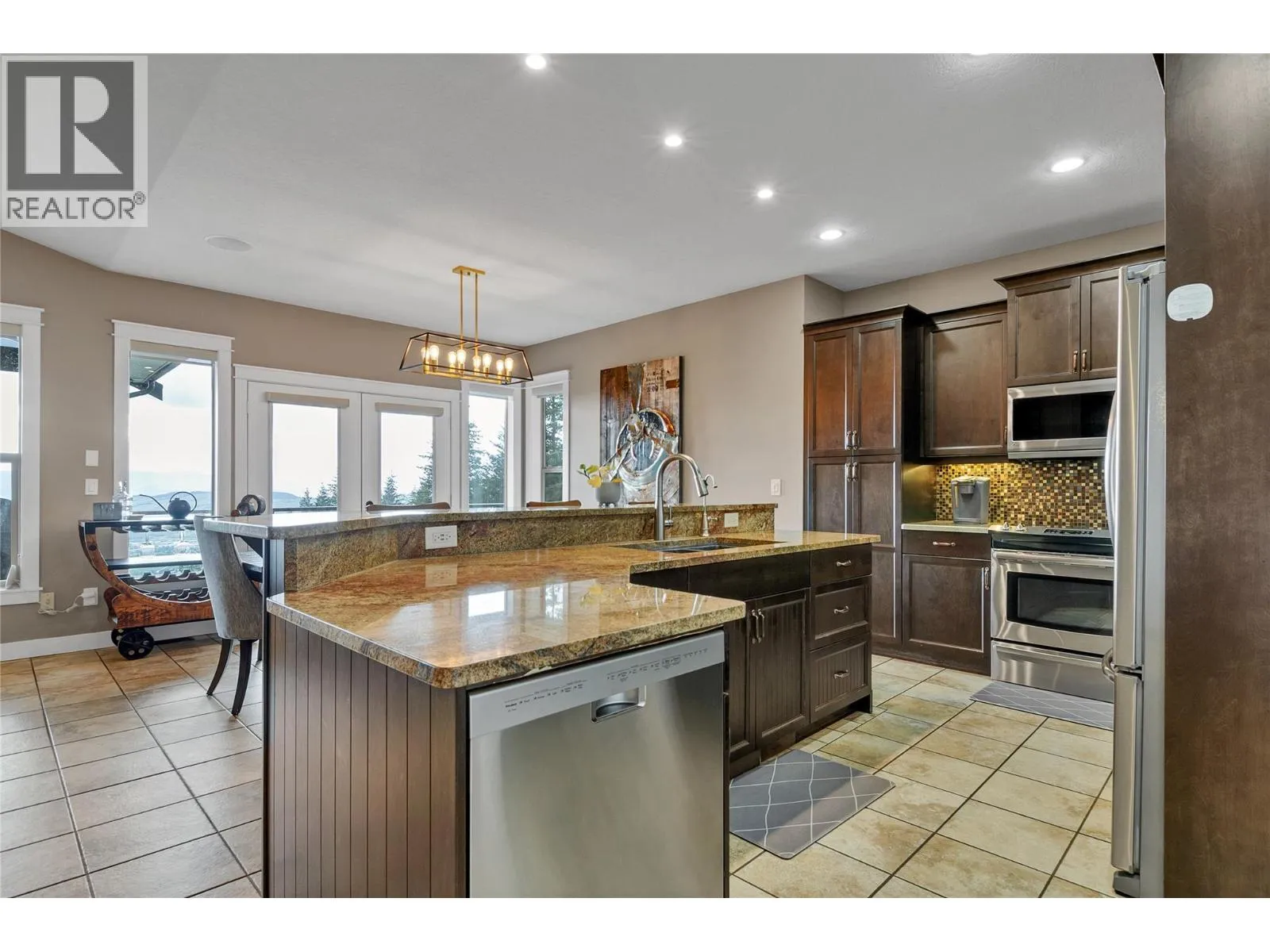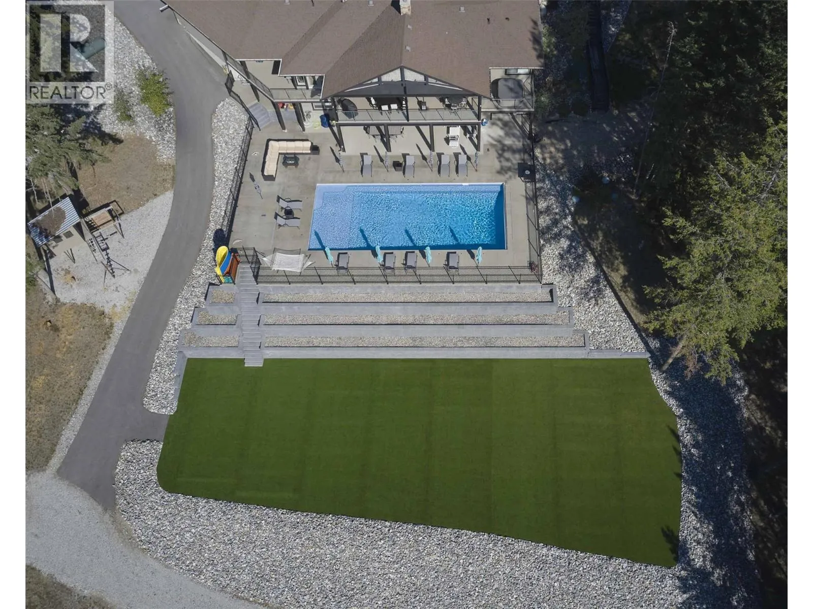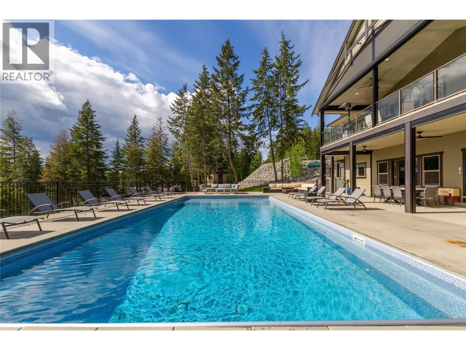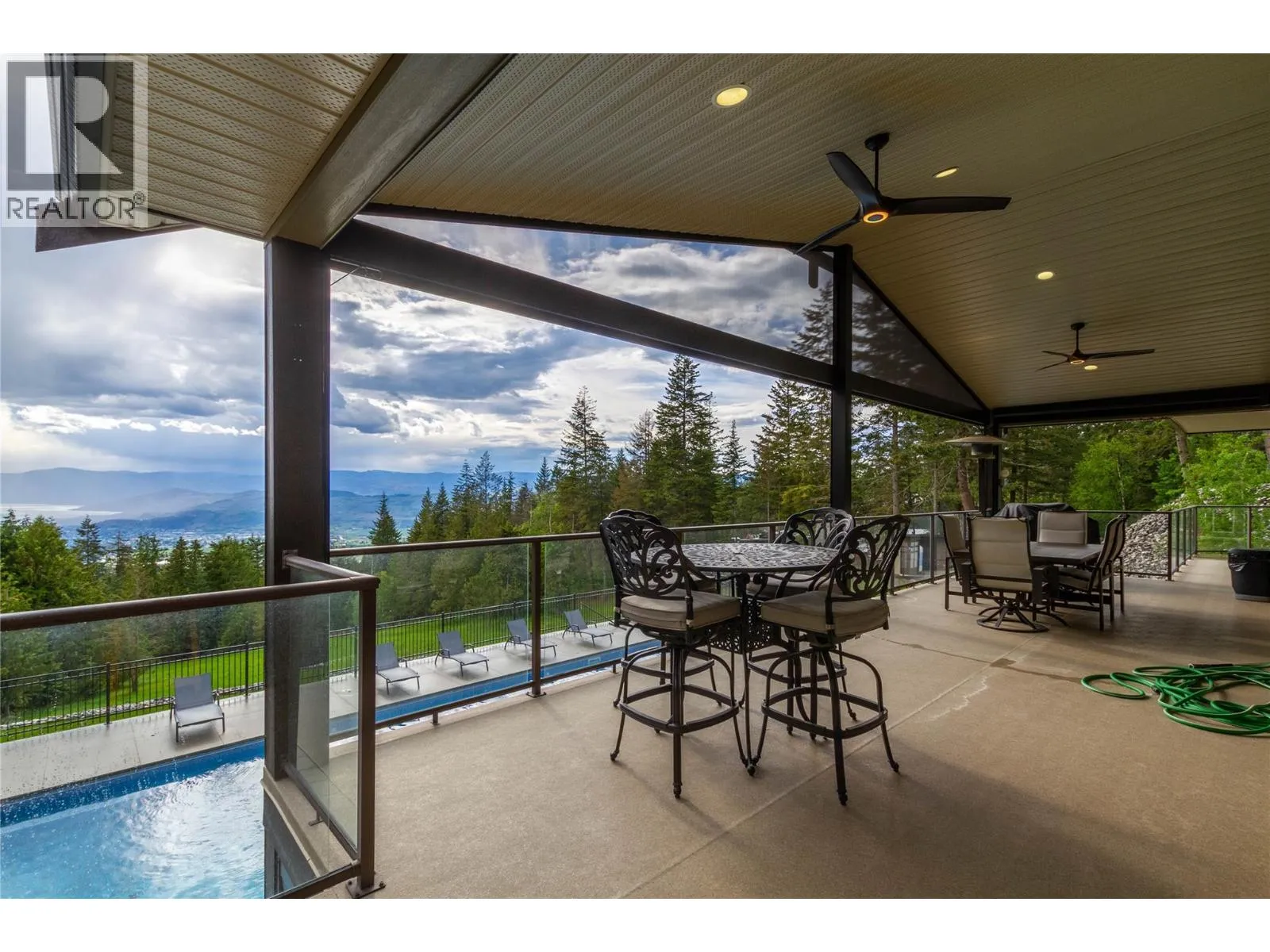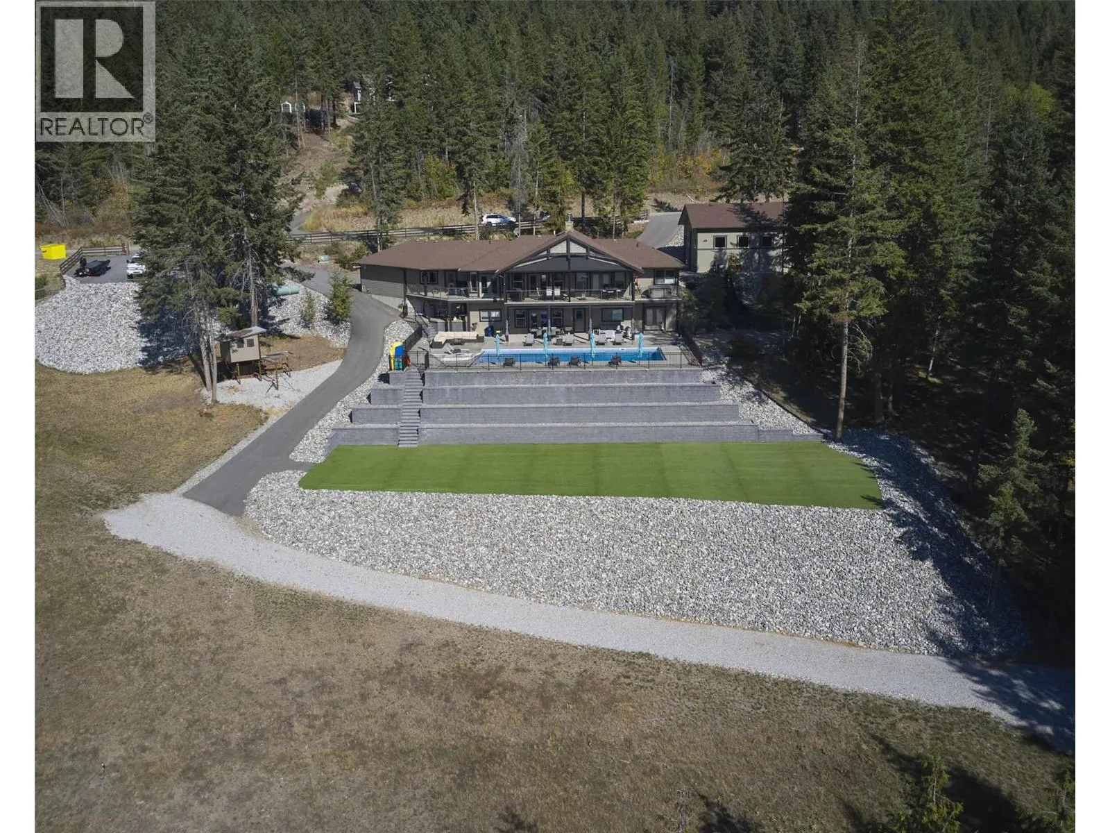 Welcome to your dream home! This custom-built 5-bedroom rancher with a walkout basement is nestled on 5 private acres in the idyllic North BX area. No Speculation tax! Enjoy a serene, tree-lined rural setting with breathtaking city and lake views. The main level features 3 spacious bedrooms plus a den, an open-concept living area with large windows that offer stunning views, and a gourmet kitchen equipped with high-end appliances and ample counter space. The fully self-contained basement suite is perfect for guests or as an income helper. Outdoor amenities abound, including an expansive backyard with an inground saltwater heated pool, complete with an automatic cover and state-of-the-art features. The large, maintenance-free artificial green space is perfect for kids. The property also offers ample paved parking with a unique drive-thru access gated driveway. Additional features include an oversized heated garage and a detached shop for extra storage or projects. 26x42 shop with 16 ceilings! The location is ideal, with close proximity to hiking, ATV, and mountain biking trails, as well as the Silver Star ski mountain for year-round outdoor activities. This property is the perfect blend of luxury, comfort, and convenience, offering tons of space and endless potential. Don't miss out on this private and serene haven! (id:27476)
