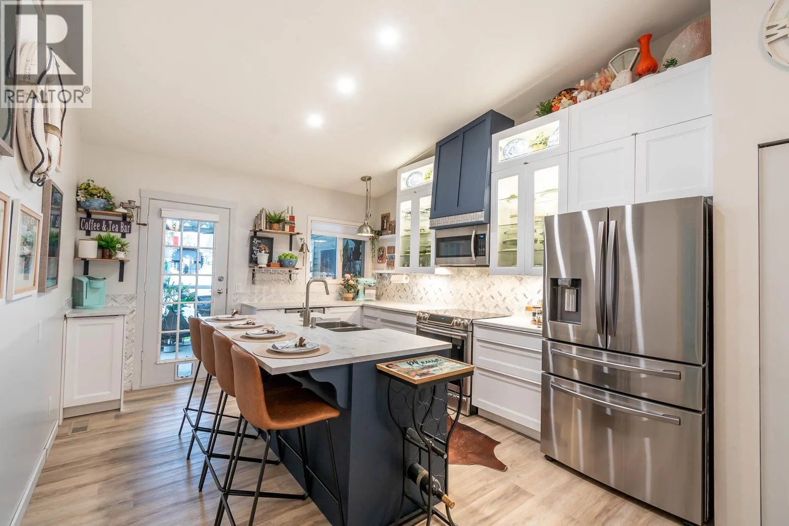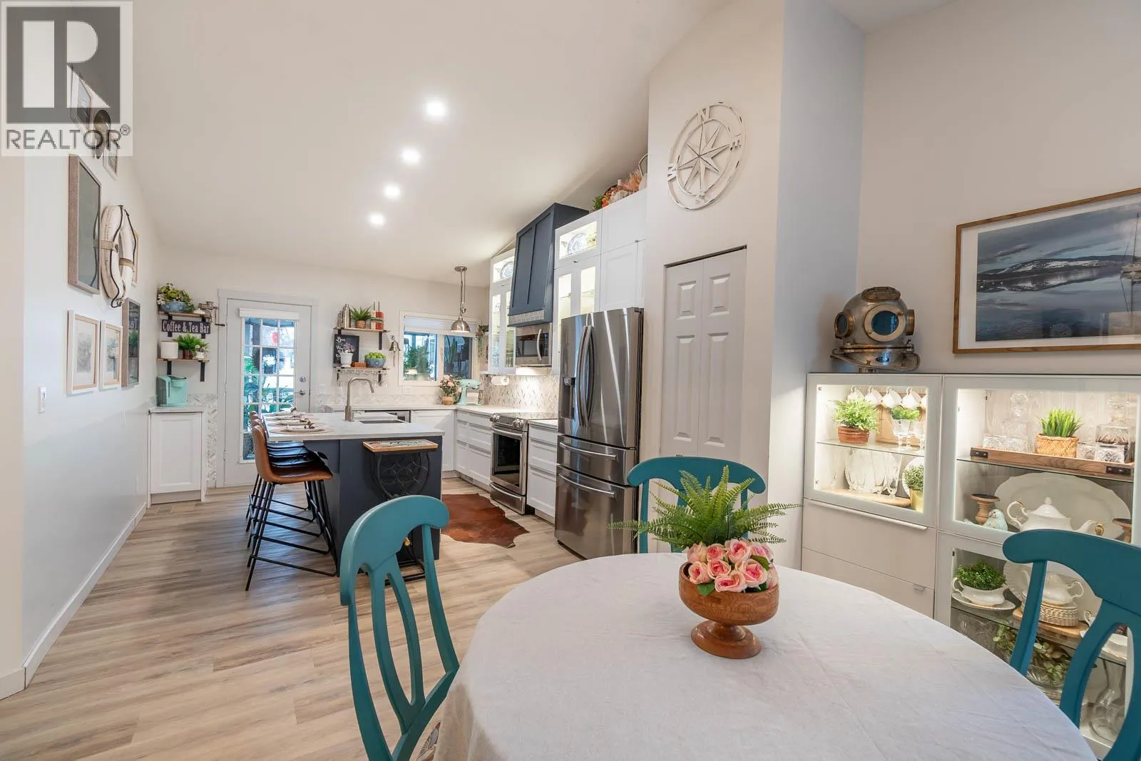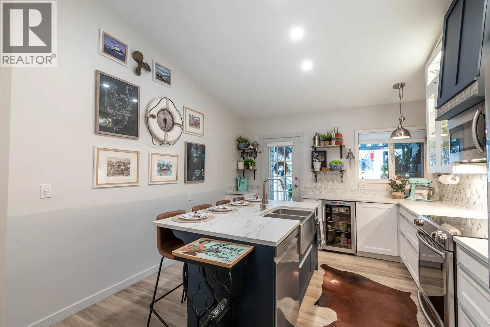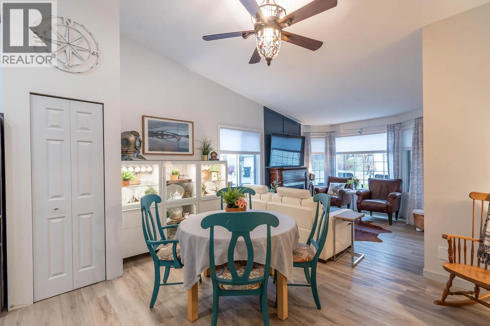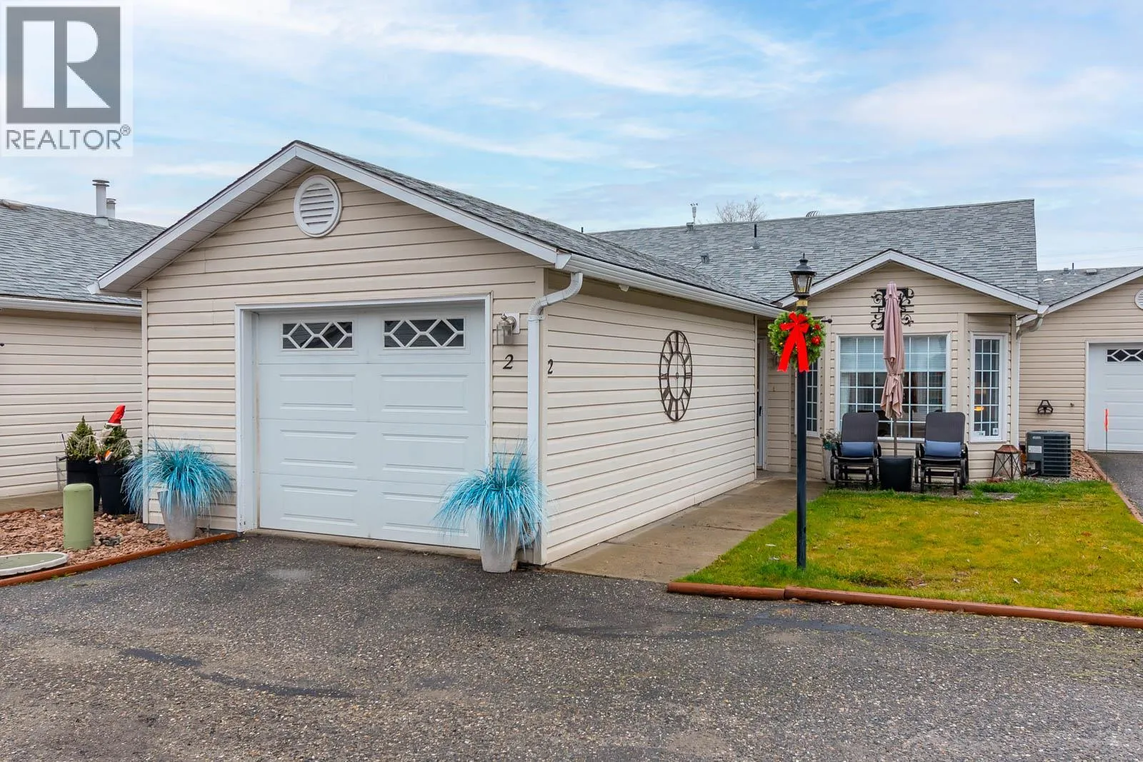 Beautifully maintained level entry 55+ townhouse located in the highly sought after Vernon Creek Villas, offering comfortable living in a prime, convenient location. Enjoy the ease of being within walking distance to transit and Vernonâs vibrant downtown core with its shops, services, and amenities. Step inside to a bright and spacious open concept layout highlighted by vaulted ceilings and abundant natural light. The updated kitchen is both functional and stylish, featuring soft close cabinetry with integrated lighting, SS appliances, built in wine cooler, and a large island. The primary bedroom offers a generous retreat with dual his and her closets and a well appointed 3 piece ensuite. A full 4 piece main bathroom includes in suite laundry for everyday convenience. Additional features include keyless entry from the garage, private backyard, covered patio ideal for relaxing or hosting guests, and convenient guest parking nearby. Numerous updates include new windows installed throughout, improving both comfort and energy efficiency. Residents enjoy low maintenance living with strata fees that include maintenance, sewer, garbage/recycling, and water. An extra parking stall is available for just $100 annually. Pet friendly with restrictions allowing either one dog or one cat not exceeding 16 inches in height. This home offers a wonderful combination of comfort, location, and lifestyle in one of Vernonâs most desirable adult oriented communities. (id:27476)