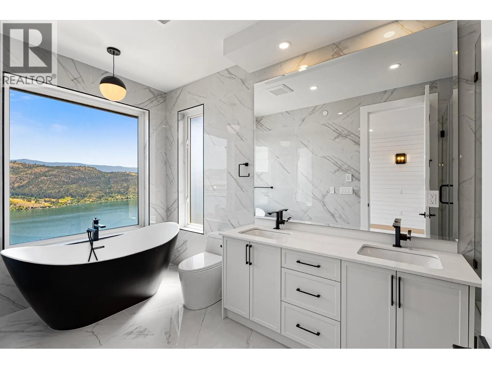 Welcome to 8928 Tavistock Road, modern masterpiece where every detail is crafted to elevate your lifestyle & every window captures breathtaking views of Okanagan Lake. Perched on a prime low-side lot in Vernon's prestigious Adventure Bay, this brand new, 3-level luxury home offers 3,667 square feet of intelligently designed living space, with 5 spacious bedrooms & 5 bathrooms. The main floor showcases an open-concept layout with 9-foot ceilings, oversized windows, and seamless indoor-outdoor flow that keeps the lake in view at every turn. The chef's kitchen, elegant dining area, and airy living room are perfectly positioned to soak in the scenery, while the primary suite features a spa-inspired ensuite and walk-in closet with lake vistas to start and end your day. A second bedroom completes the main floor. The lower level offers three more bedrooms, a large family room, and a wet bar that leads to a Lakeview balcony. Downstairs, a fully finished walk-out basement includes a massive rec room, full bath, and access to a Lakeview patio ideal for entertaining or unwinding. Two upper decks and xeriscaped landscaping complete this low-maintenance stunner. Residents enjoy private beach access, tennis and pickleball courts, and scenic trails. This is the lake life you've been waiting for-book your tour today. (id:27476)