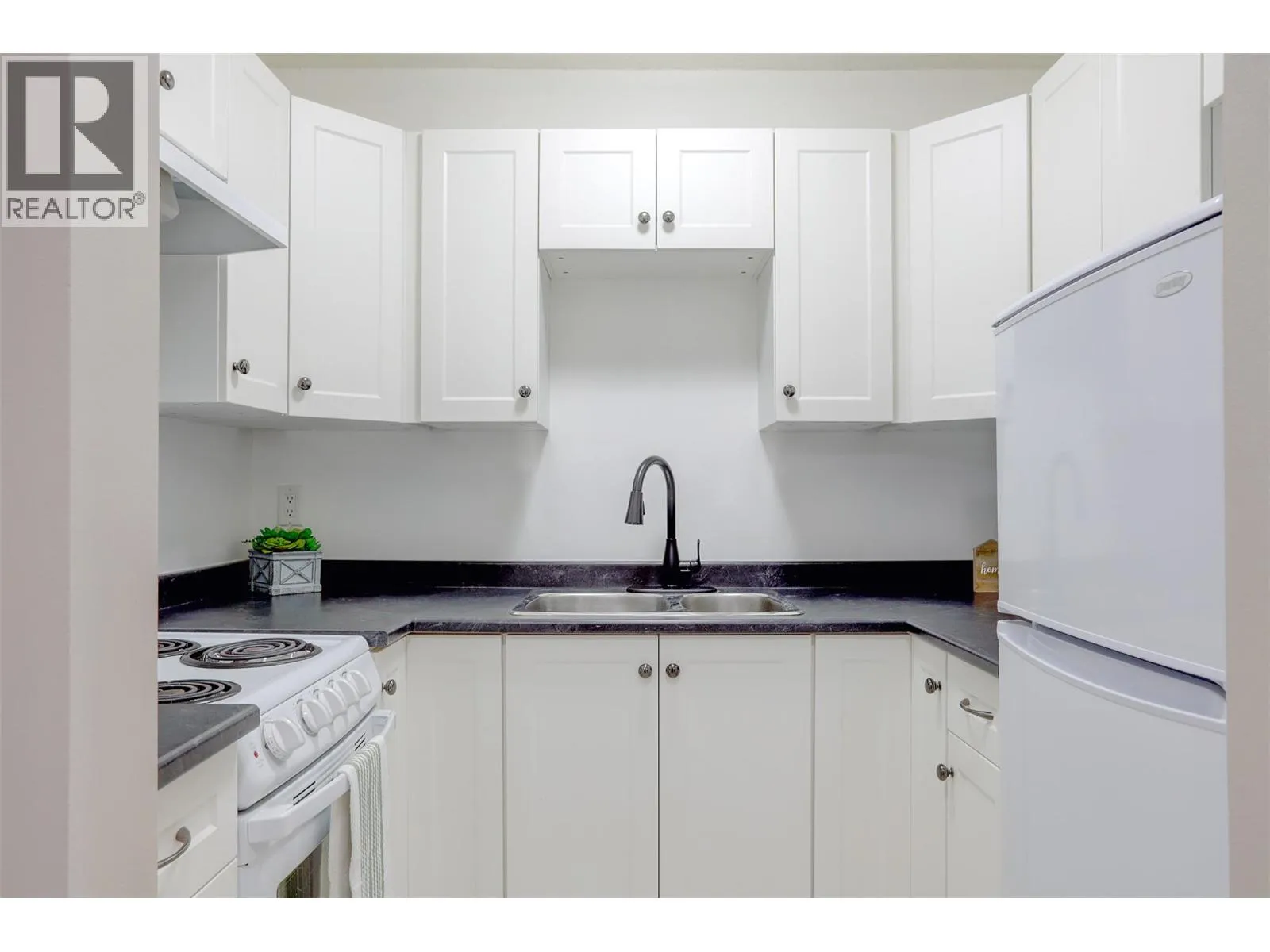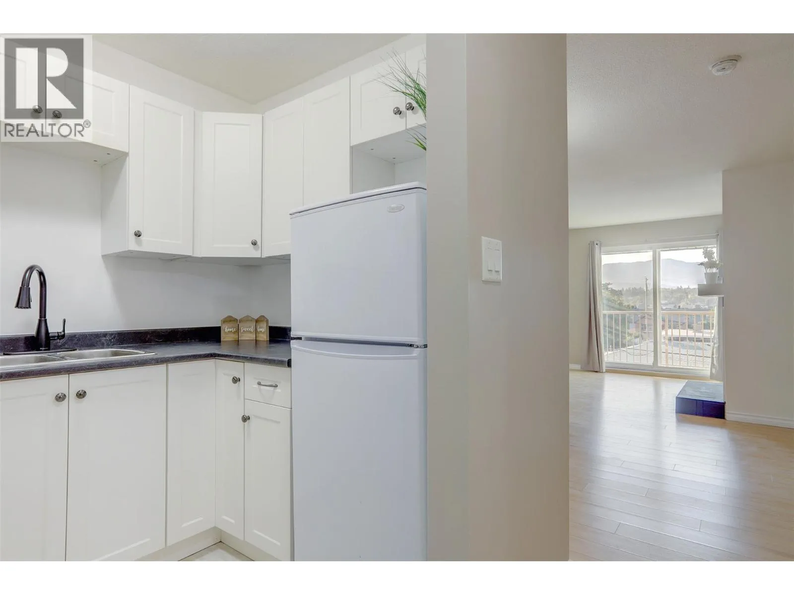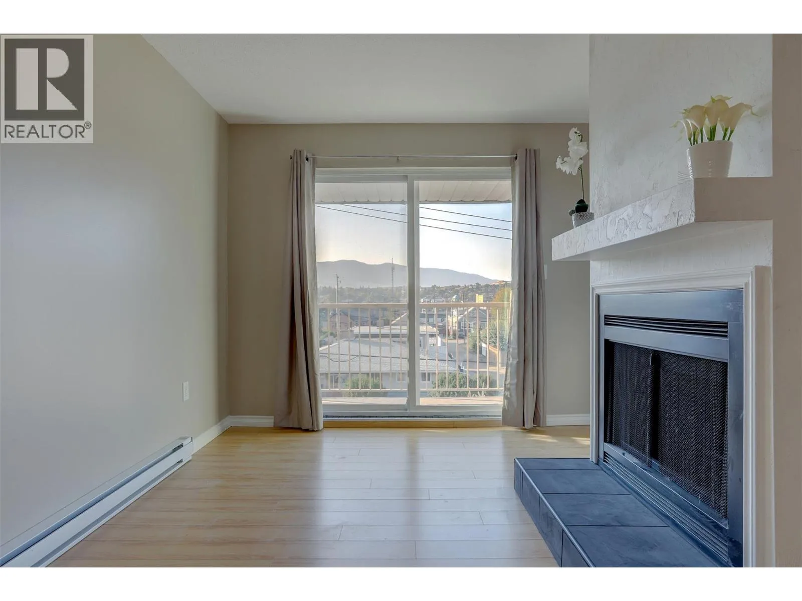 Bright, south-facing top-floor 1-bedroom in the heart of downtown. Freshly painted, this open-concept unit features newer appliances and a decorative fireplace mantle. Enjoy excellent natural light and city views. The building offers an updated elevator, shared coin laundry, and open parking. Well-maintained strata with ongoing improvements. Strong rental history and walkable to shops, restaurants, and amenitiesâideal for first-time buyers or investors. (id:27476)