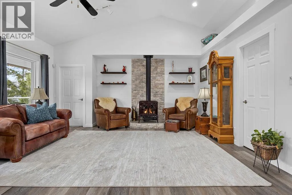 Discover your dream retreat on a private and quiet .63-acre lake view lot. New roof (2023), 10 new windows on main floor, flooring, and self-contained two-bedroom walkout suite! (Over $100,000 spent on renos in the last three years). This home offers lake views and natural light through vaulted ceilings and skylights. Custom kitchen with walk-in pantry and breakfast nook. Great room features Jotul gas fireplace, new hearth, dining area, and living room. Master suite with deck access, walk-in closet, and ensuite bathroom with Neptune tub and double sinks. Second bedroom ideal as den or guest room with Murphy bed. Daylight suite offers modern amenities and lake views. Features include: Jotul gas fireplace, Sound-deadening insulation - New heat pump - Updated appliances - Refinished deck and stairs - Insulated garage doors - Fire-smart clearing -Heated/cooled triple garage with workshop, RV & boat parking. Fenced yard with room for additional shop, plus private beach and boat launch access! (id:27476)