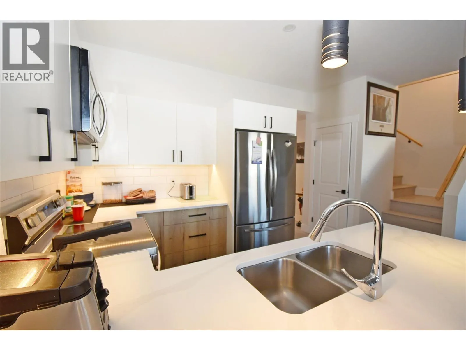 Live the true Okanagan dream at #30 Hillview Heights, a 2023-built townhouse in Vernonâs sought-after East Hill community. Ideal for singles, empty-nesters, families, or investors, this home offers a spacious & flexible layout across three levels with 3 beds & 3.5 bathrooms. The main floor features bright, open-concept living with large windows and access to a covered deck overlooking the inner courtyardâquietly positioned & not backing onto the highway. The designer kitchen showcases quartz counter-tops, custom cabinetry, & Samsung SS appliances, perfect for entertaining or everyday living. Upstairs, the generous primary suite includes a walk-in closet & a beautifully finished ensuite. A spacious 2nd bedroom, full 4pc bath, separate laundry room, & convenient storage complete the upper levelâideal for families or guests. The lower level offers a versatile family room or flex space with a full 4pc bath, ideal as a 2nd primary bedroom, rec room, home gym, or media space. Dedicated storage & a mechanical room add functionality. Additional highlights include a single garage, extra driveway parking, & low-maintenance landscaping. Hillview Heights offers low strata fees of $300.04/month, pets allowed, & no rental restrictions making it an excellent option for homeowners or investors. Located minutes from schools, parks, downtown Vernon, shopping, hiking trails, & Okanagan Lake, this home delivers the best of East Hill living that balances comfort, flexibility, & sophistication. (id:27476)