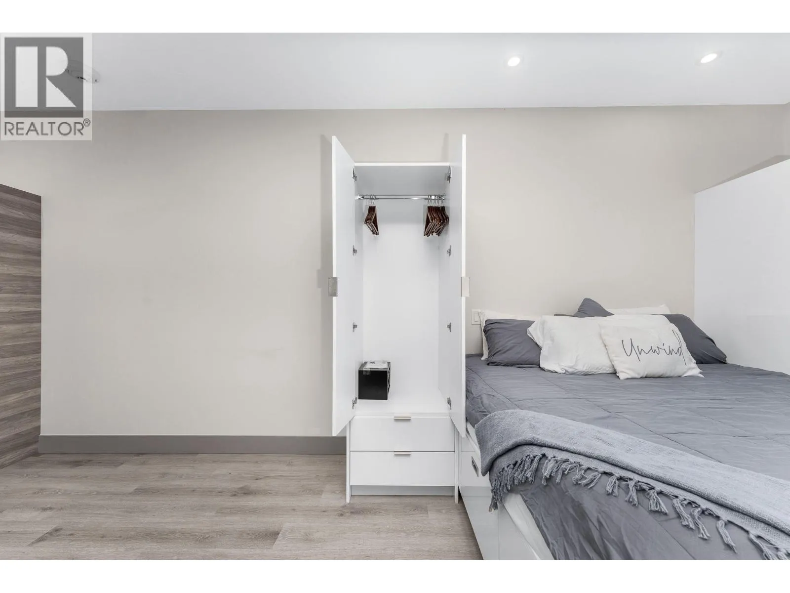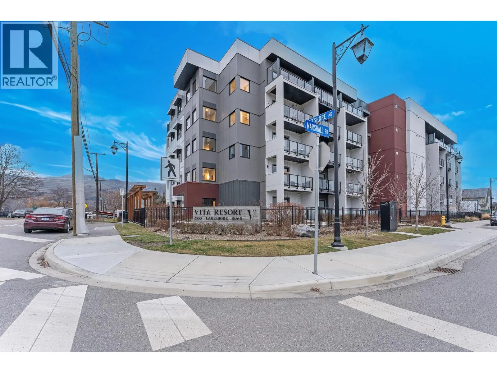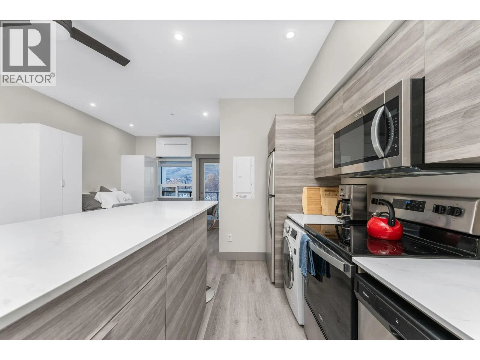 A pied-a-terre, a get-away location for summer and winter fun or an early toe-hold in the exciting world of home ownership -- this affordable and incredibly well designed micro unit is a great consideration. Built in 2021 just across the road from a well-kept public beach (Kin Beach) this development features a pool, gym, pickle-ball courts, community BBQ and EV charging stations. Inside, the Unit comes with everything you need to live - bedding, dining and kitchenware etc. Practical vinyl plank flooring, an awesome King size bed and cleverly designed storage. You have in-suite laundry with the latest in small space convenience - a washer-dryer combo designed to wash and dry clothes in the same drum! And then for bigger loads there is a coin operated laundry unit on the 3rd floor. The only thing inside this unit doesn't have is a sofa because the tenant said the original wasn't comfortable! So now all you need to do is invest in your own comfortable sofa and you have a truly compact and functional home! In addition, there is a 6'x4'x6' locker conveniently located on the same floor. Outside you have north-west facing massive deck (14'x 4'6"") with beautiful lake views for those summer evenings. And ⦠the strata fees are reasonable at $282 per month. Oh and one more important thing -- unlike nearly every condo in Vernon, the Vita allows short term rentals -- see supplement for details. (id:27476)