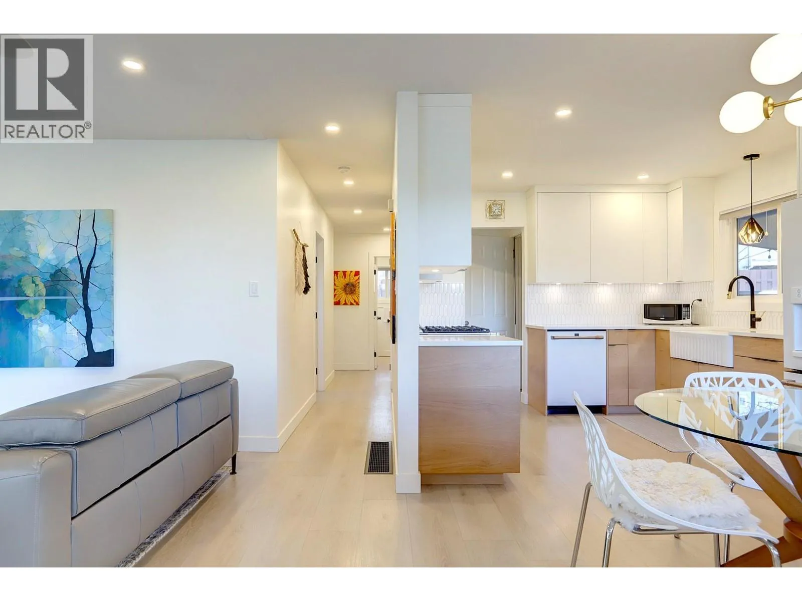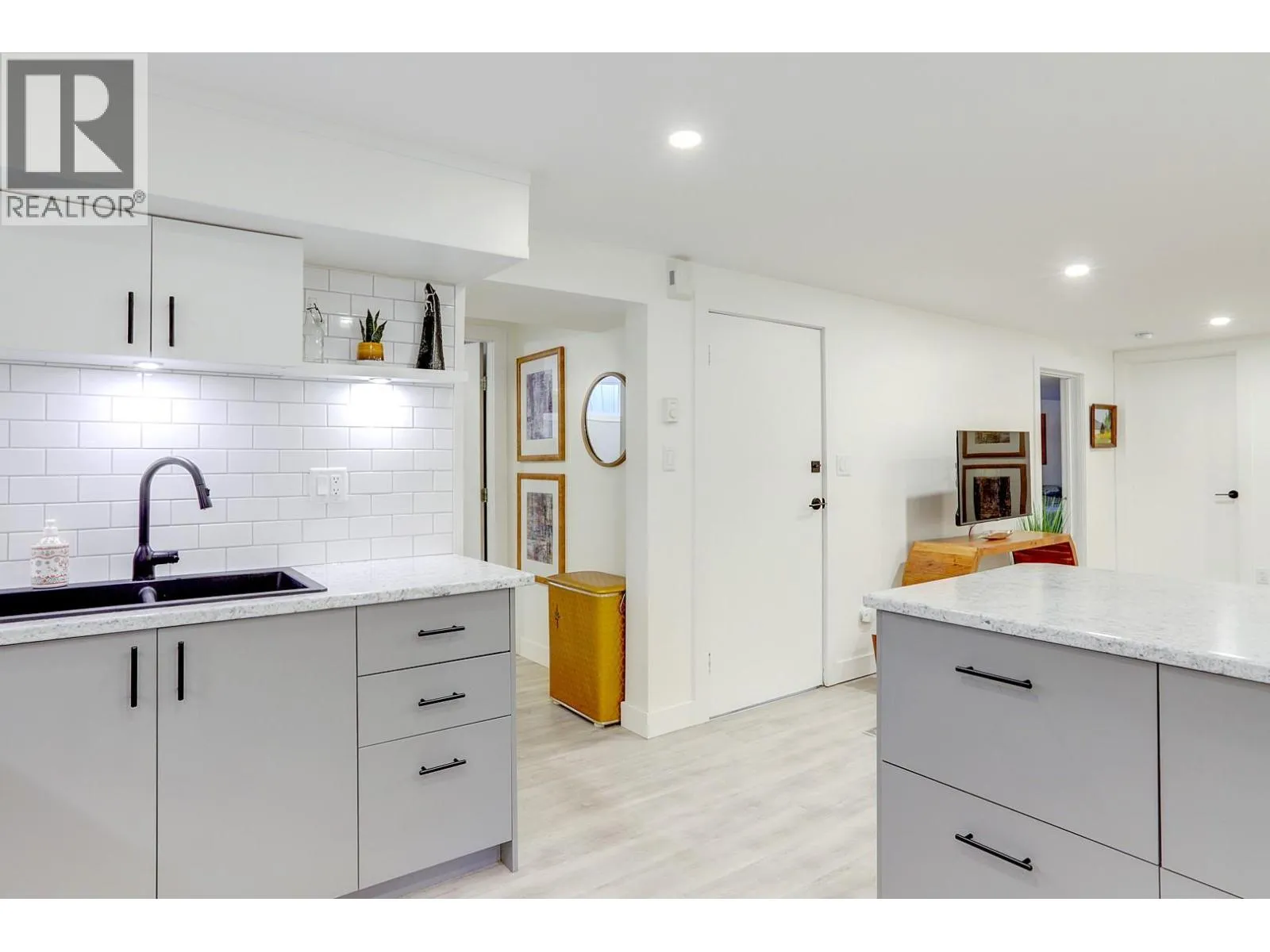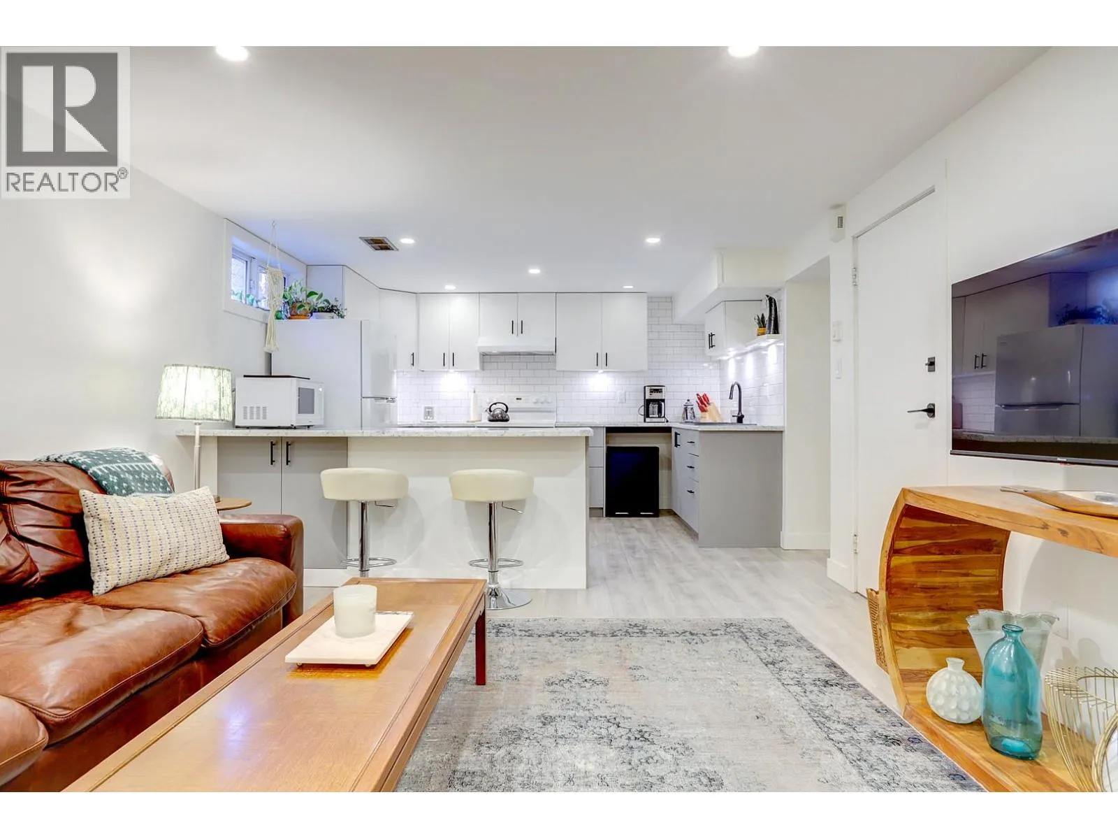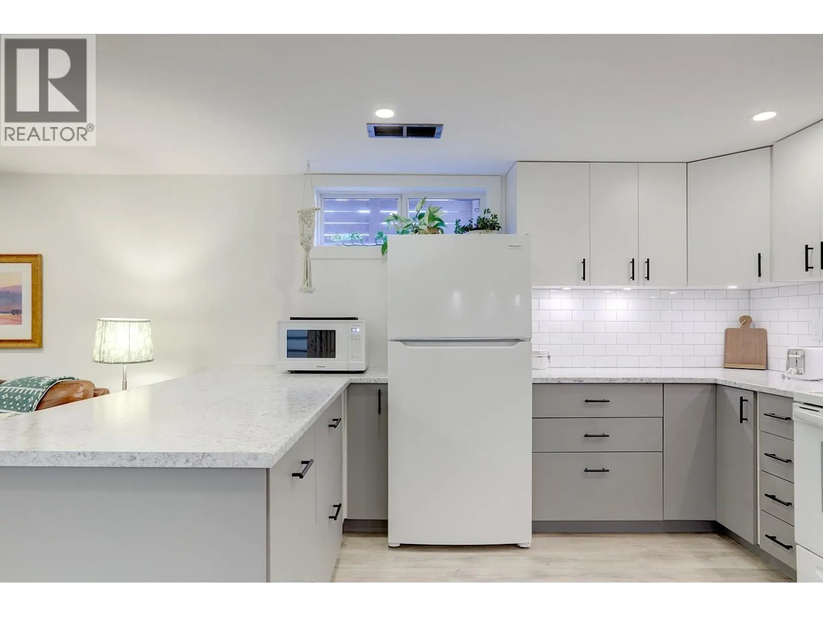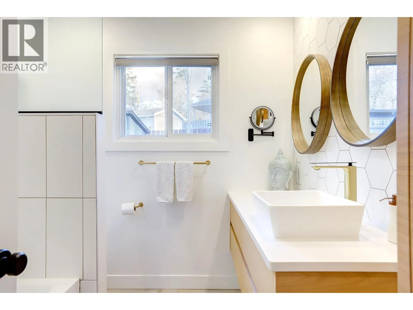 Quietly set on a cul-de-sac in desirable Lower East Hill/Harwood, this beautifully updated home offers privacy, flexibility, and close proximity to downtown. Elevated above the street, the home enjoys excellent separation from the road and abundant natural light throughout. The main floor is bright and thoughtfully renovated with a clean, modern aesthetic. The stunning kitchen features high-end GE Series appliances, custom cabinetry, open shelving, and a functional layout that flows seamlessly into the dining and living areasâperfect for everyday living. Contemporary lighting, wide-plank flooring, and tasteful design choices create a warm, refined atmosphere. Downstairs, a separate unauthorized suite with its own kitchen provides excellent flexibility for intergenerational living, potential rental income, or a home-based business. Two additional bedrooms complete the lower level, with storage thoughtfully tucked into the south-facing bedroom. The layout allows the entire home to function as a single residence, offering flexible living options for buyers seeking a cohesive family home. Outside, the private backyard is peaceful and easy-care, featuring irrigated landscaping and a simple, low-maintenance design. The driveway includes stamped, coloured concrete at the apron with a broomed finish through the ample parking area, providing improved vehicle traction. Measurements taken from iGuide and should be verified if important to a buyer. (id:27476)