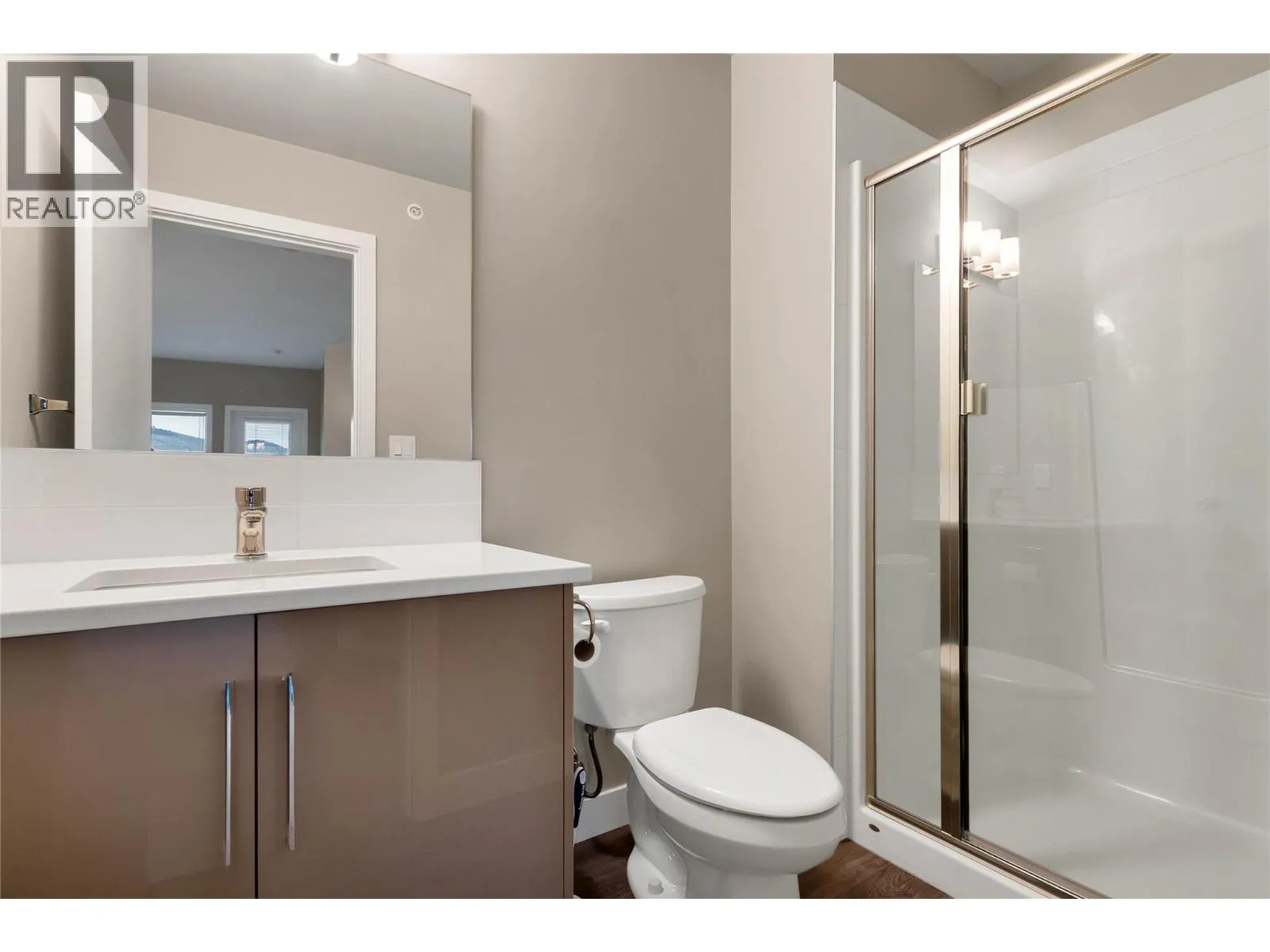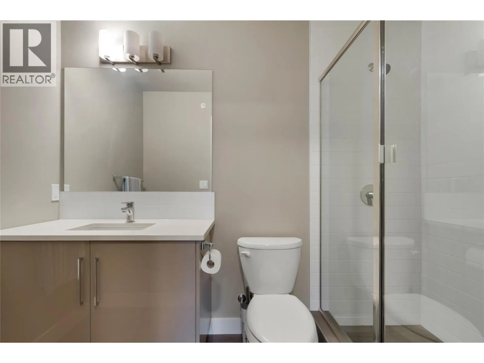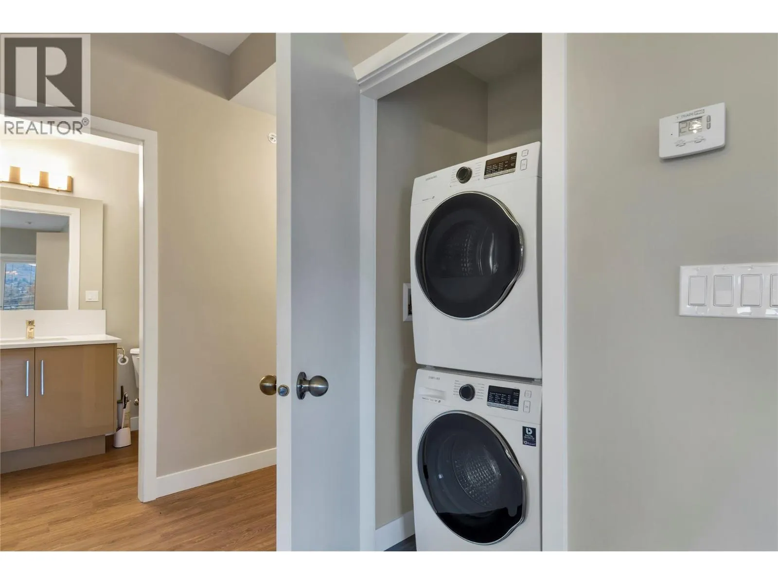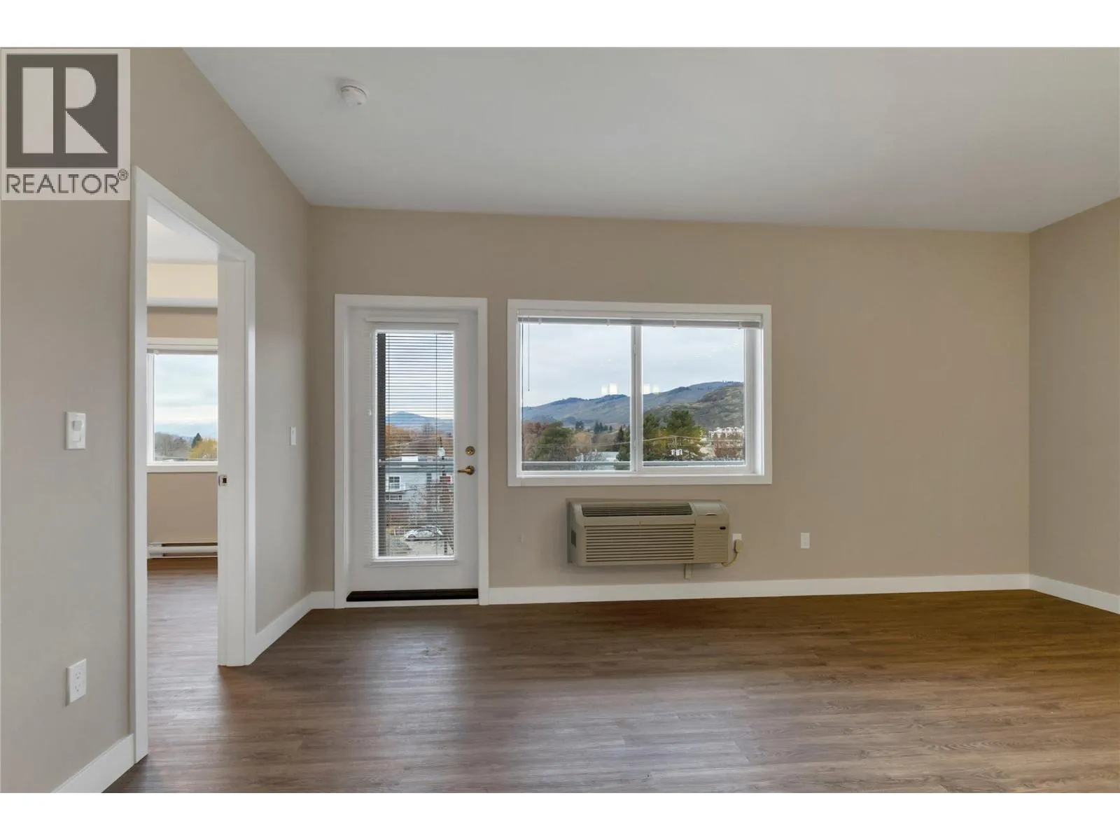 Welcome to this top-floor corner 2-bedroom, 2-bathroom condo in the heart of downtown Vernon. Offering approximately 890 sq. ft. of bright, open-concept living, this home features a modern kitchen with stainless steel appliances, quartz countertops, under-cabinet lighting, ample cabinetry, and an island with seating, flowing seamlessly into the dining and living areasâperfect for entertaining or everyday comfort. Enjoy added privacy, excellent natural light, and a private balcony with city and mountain views. The primary bedroom includes a walk-in closet and a 3-piece ensuite, while the second bedroom is ideal for guests or a home office. Additional features include in-suite laundry, contemporary bathrooms with glass shower enclosures, durable vinyl plank flooring, and neutral designer finishes throughout. This home comes complete with 2 secure underground parking stalls, a dedicated storage locker, shared bike storage in a well-maintained building with secure entry. Located just steps from shopping, restaurants, cafes, parks, and public transit, this is an excellent opportunity for first-time buyers, downsizers, or investors seeking a low-maintenance lifestyle in a prime central location. Make this property your own and start enjoying the active Okanagan lifestyle today! (id:27476)