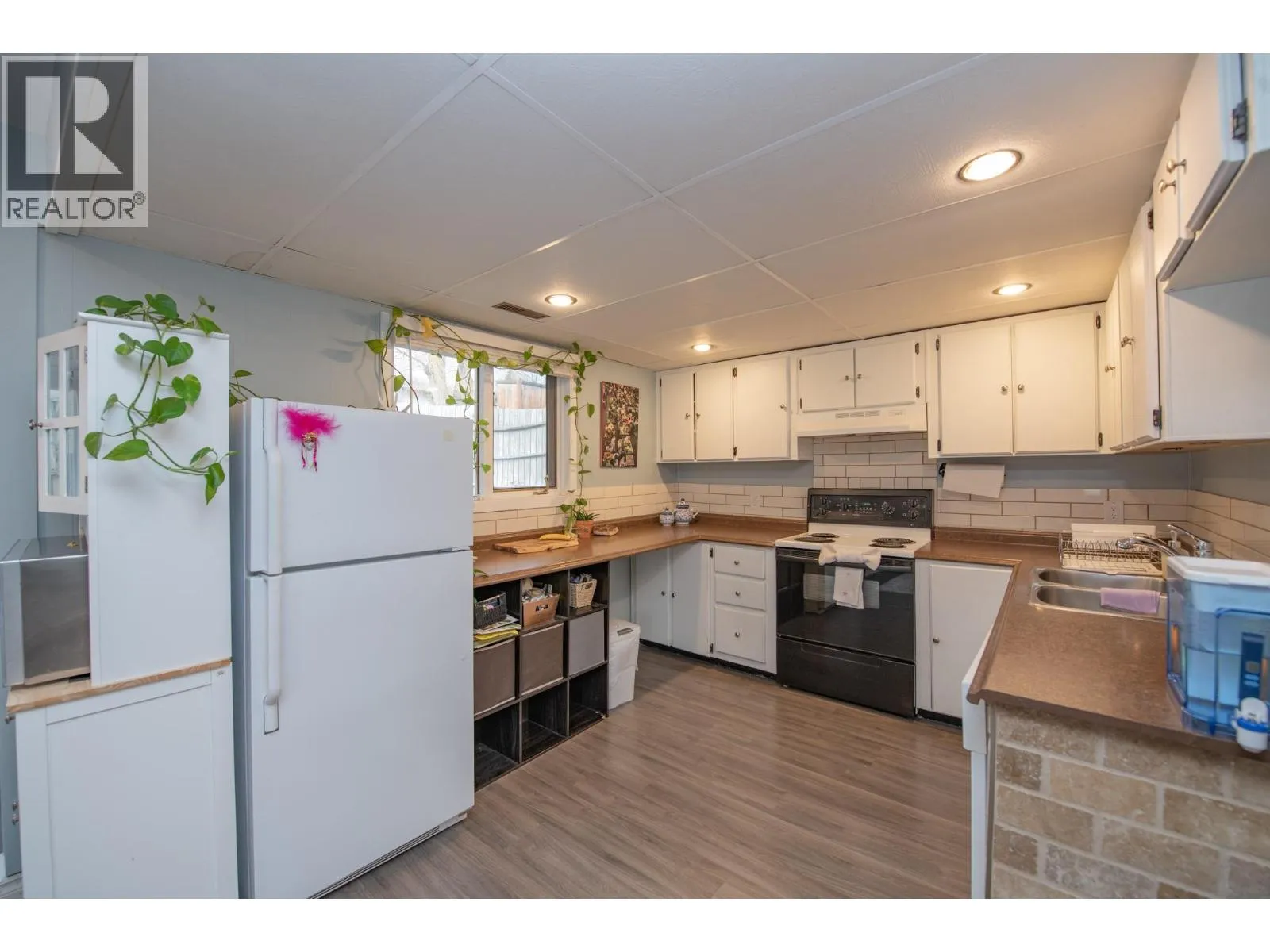 Well-maintained two-storey home with income-generating suite, ideally located within walking distance to amenities. The main floor features an open-concept living, dining, and kitchen area. The cozy living room offers a natural gas fireplace and sliding glass doors leading to the patio. A proper dining space connects to the kitchen with a convenient raised eating bar. The bright kitchen includes stainless steel dishwasher, ample counter space, and plenty of storage. The primary bedroom easily accommodates a king-size bed and offers generous closet space along with in-suite washer and dryer. A second bedroom and a full bathroom with tub/shower complete the main level. Downstairs youâll find a bright one-bedroom daylight suite with its own open-concept living, dining, and kitchen area. The suite features a spacious living room, full bathroom with tub/shower, and in-suite laundryâan excellent mortgage helper. The private backyard offers access for both the main home and the suite, with attractive fencing, room for a garden, green space, and has a utility shed. RV parking and additional tenant parking are available in the driveway. Newer furnace and AC. Enjoy a prime location just moments from Buy Low Foods, the gym, hockey arena, schools, and other amenities, all within a desirable school catchment. (id:27476)