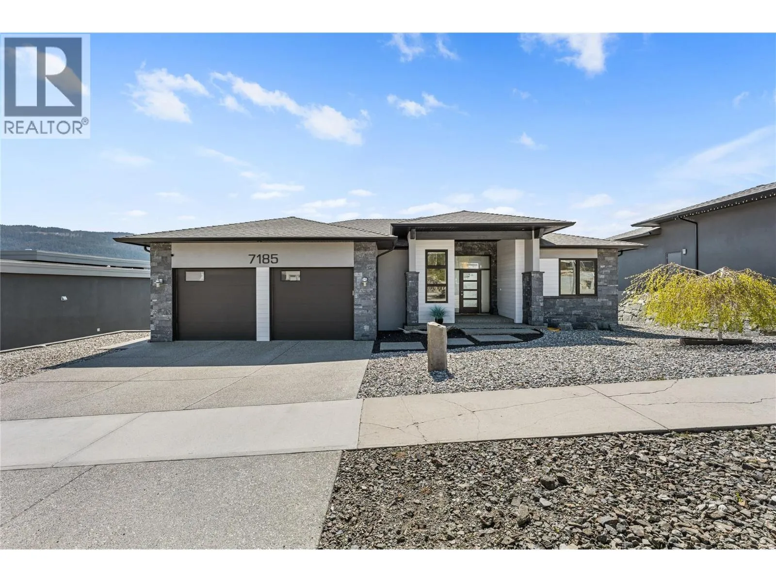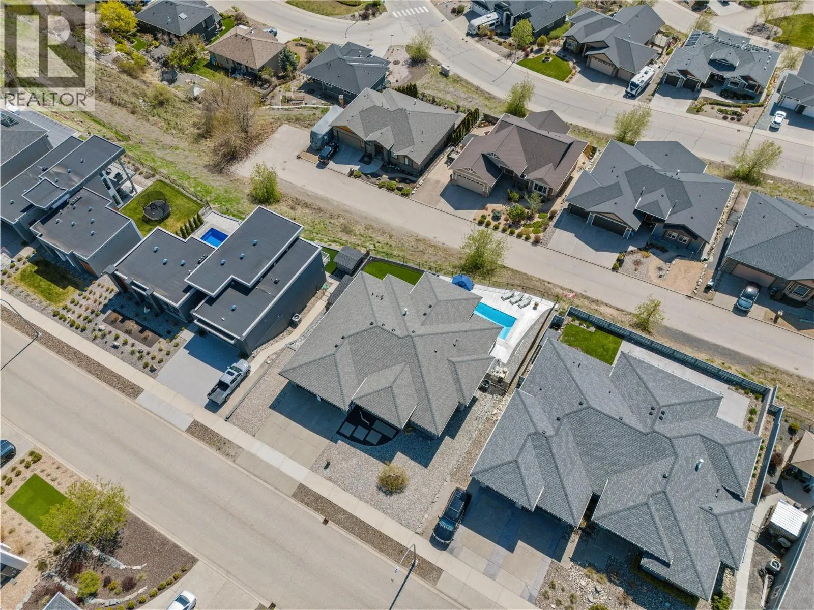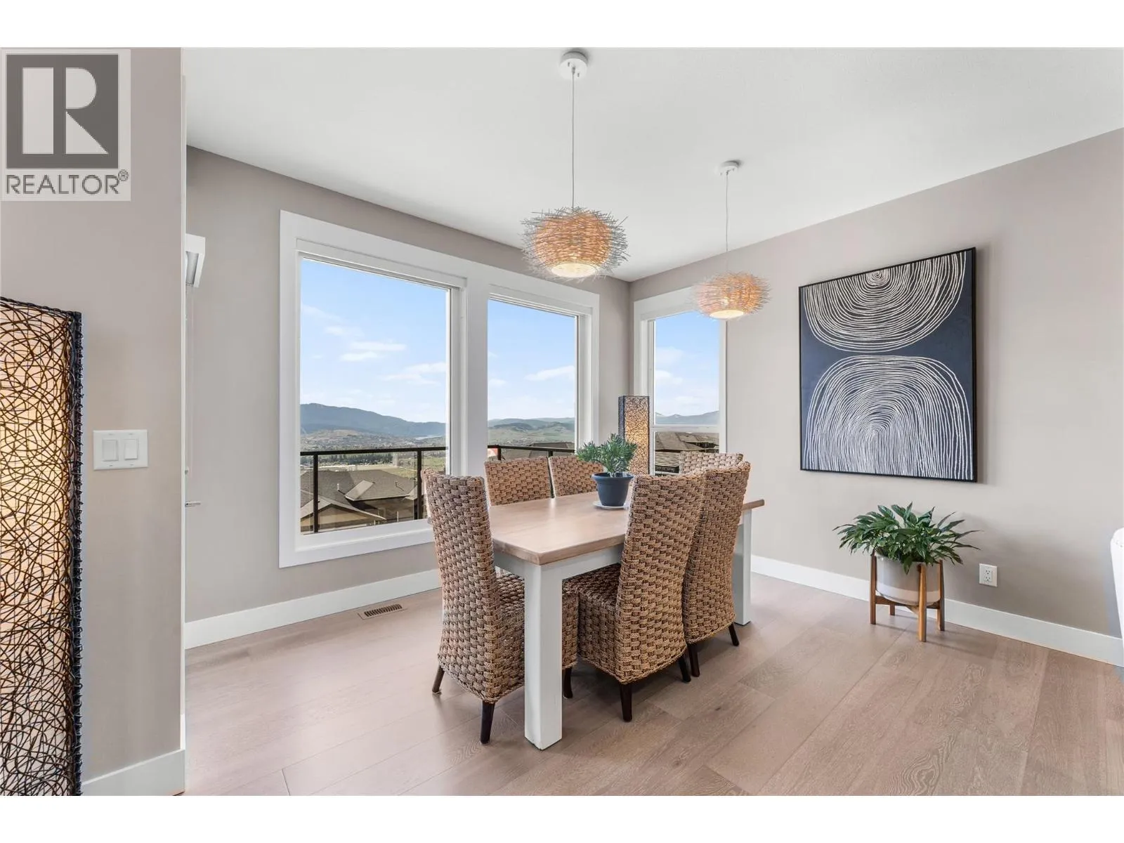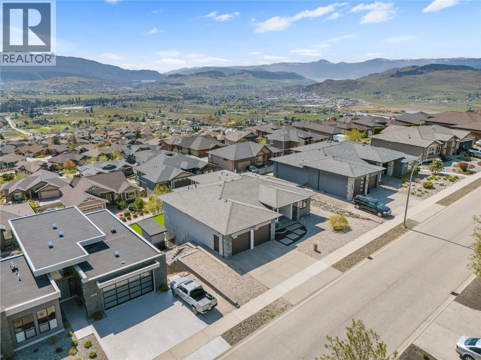 What most people envision for their dream Okanagan lifestyle; this contemporary home is designed to take full advantage of its elevated setting, with striking views of the surrounding mountains, lakes, and valley. The main floor features an open, airy layout with 11-foot ceilings, expansive windows, and direct access to a large covered deck ideal for morning coffee or maybe an evening glass of wine from a local Okanagan winery. The kitchen blends form and function with quartz countertops, stainless steel appliances, and clean-lined maple cabinetry. The primary bedroom offers a peaceful retreat with a walk-in closet and ensuite, complete with a freestanding soaker tub and custom tiled shower. An oversized second bedroom, a versatile den or third bedroom, and a well-appointed laundry room with built-in bench and storage round out the main level. Downstairs, the walk-out lower level with 10-foot ceilings provides exceptional flexibility, featuring a media room, games area, gym, wet bar, additional bedroom and spa inspired full bathroom. Outdoors, the fully automated saltwater pool with new liner and safety cover is paired with low-maintenance Synlawn turf and a custom storage shed. An oversized double garage and generous extra parking accommodate vehicles, trailers, boats, or RVs. You can be on the ski hill, hiking trails, golf course or lake all within a short drive from home. (id:27476)