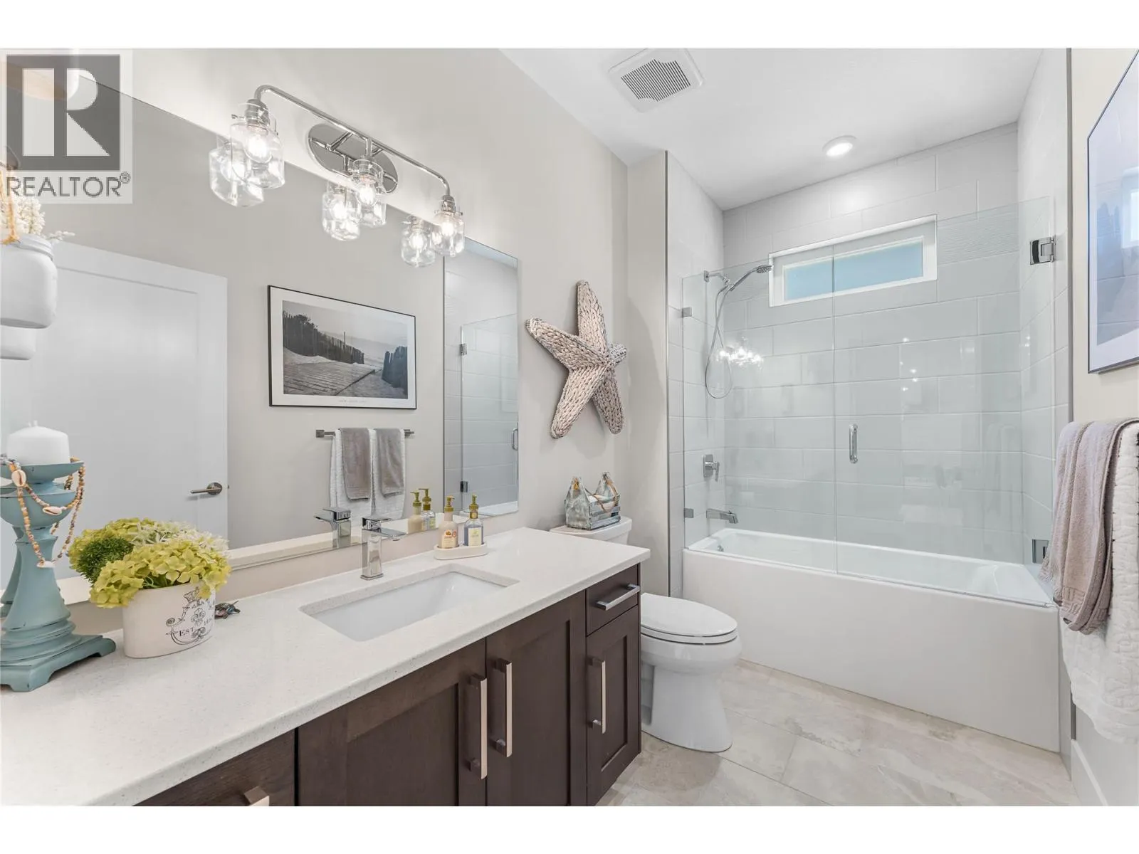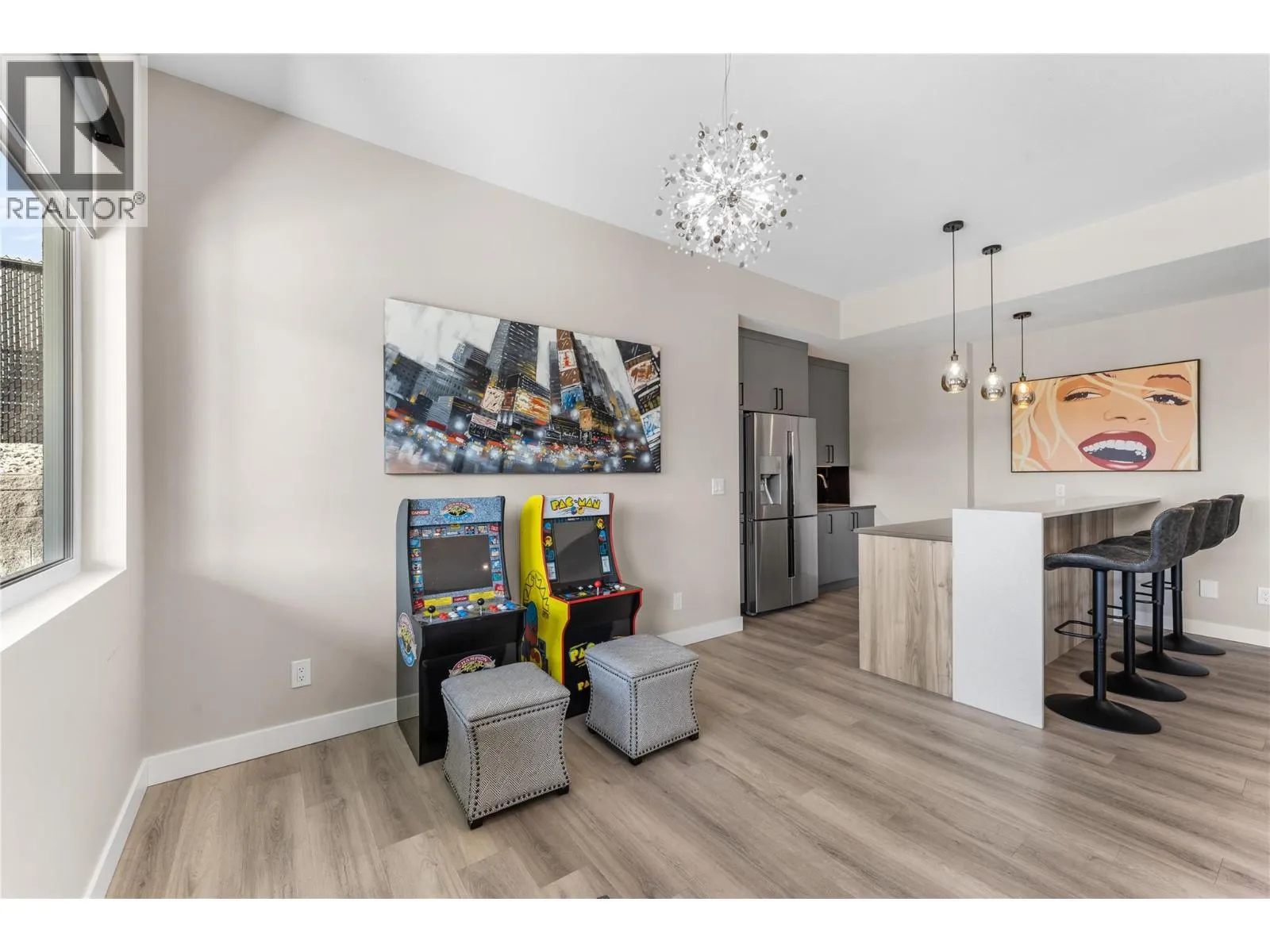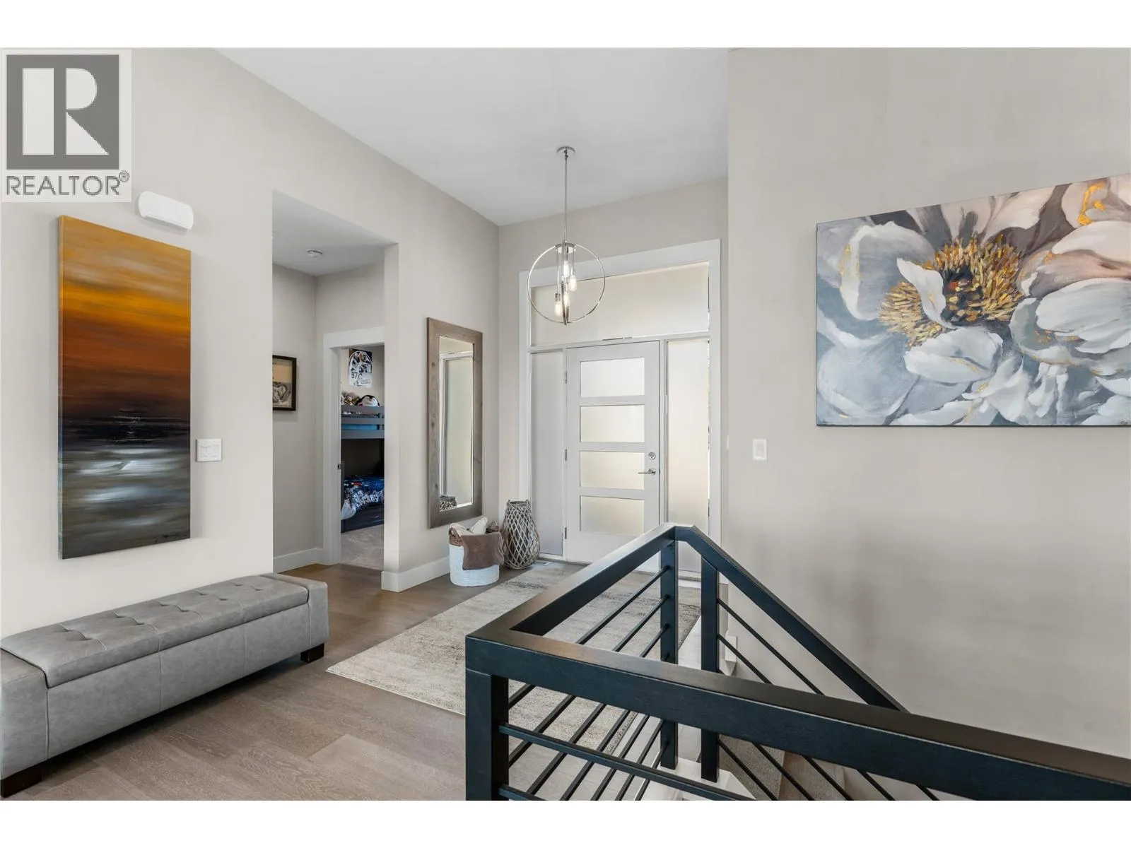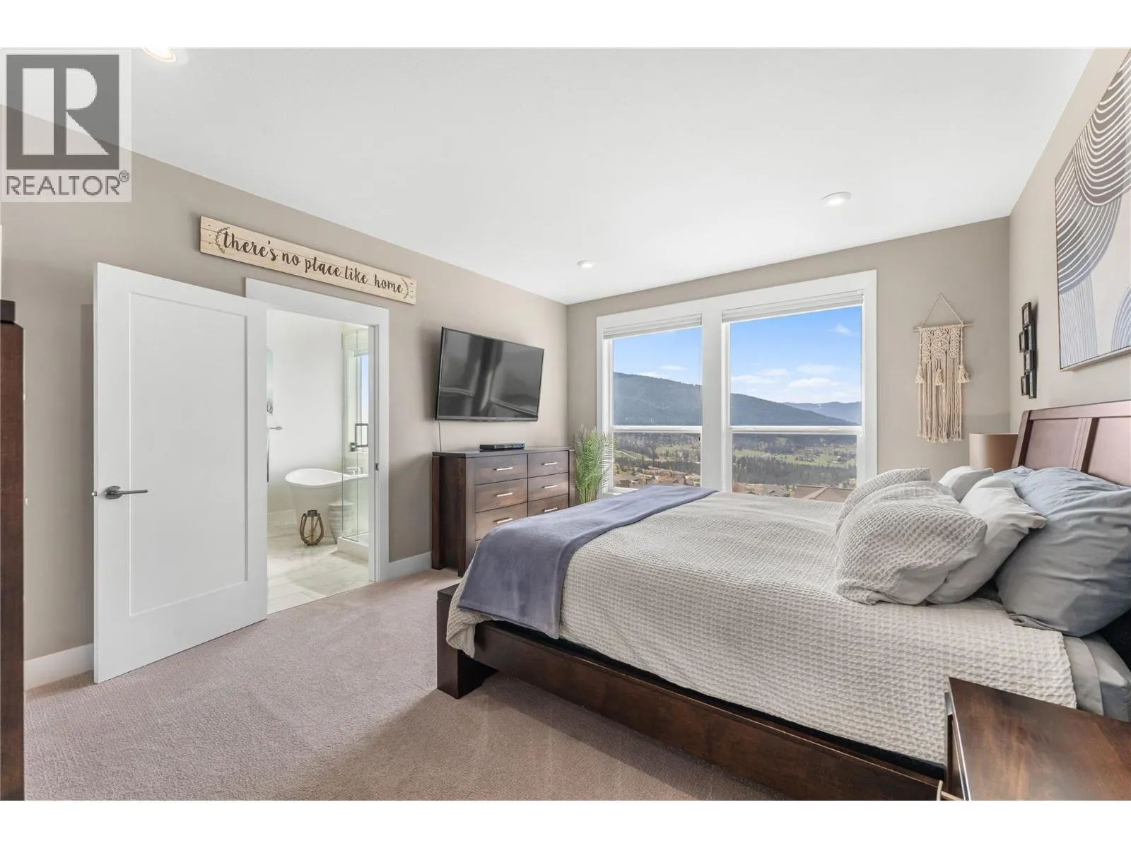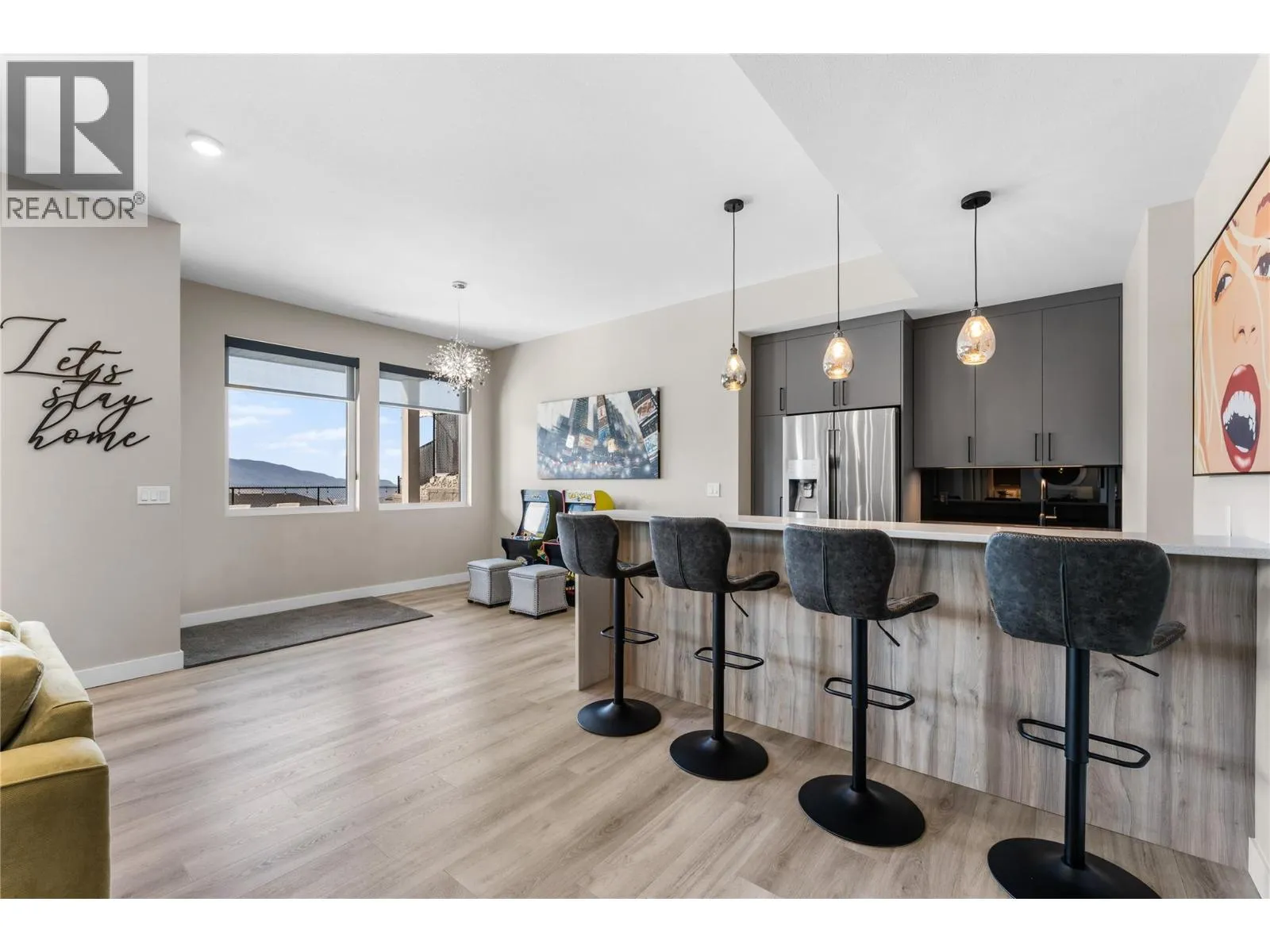 What most people envision for their dream Okanagan lifestyle; this contemporary home is designed to take full advantage of its elevated setting, with striking views of the surrounding mountains, lakes, and valley. The main floor features an open, airy layout with 11-foot ceilings, expansive windows, and direct access to a large covered deck ideal for morning coffee or maybe an evening glass of wine from a local Okanagan winery. The kitchen blends form and function with quartz countertops, stainless steel appliances, and clean-lined maple cabinetry. The primary bedroom offers a peaceful retreat with a walk-in closet and ensuite, complete with a freestanding soaker tub and custom tiled shower. An oversized second bedroom, a versatile den or third bedroom, and a well-appointed laundry room with built-in bench and storage round out the main level. Downstairs, the walk-out lower level with 10-foot ceilings provides exceptional flexibility, featuring a media room, games area, gym, wet bar, additional bedroom and spa inspired full bathroom. Outdoors, the fully automated saltwater pool with new liner and safety cover is paired with low-maintenance Synlawn turf and a custom storage shed. An oversized double garage and generous extra parking accommodate vehicles, trailers, boats, or RVs. You can be on the ski hill, hiking trails, golf course or lake all within a short drive from home. (id:27476)