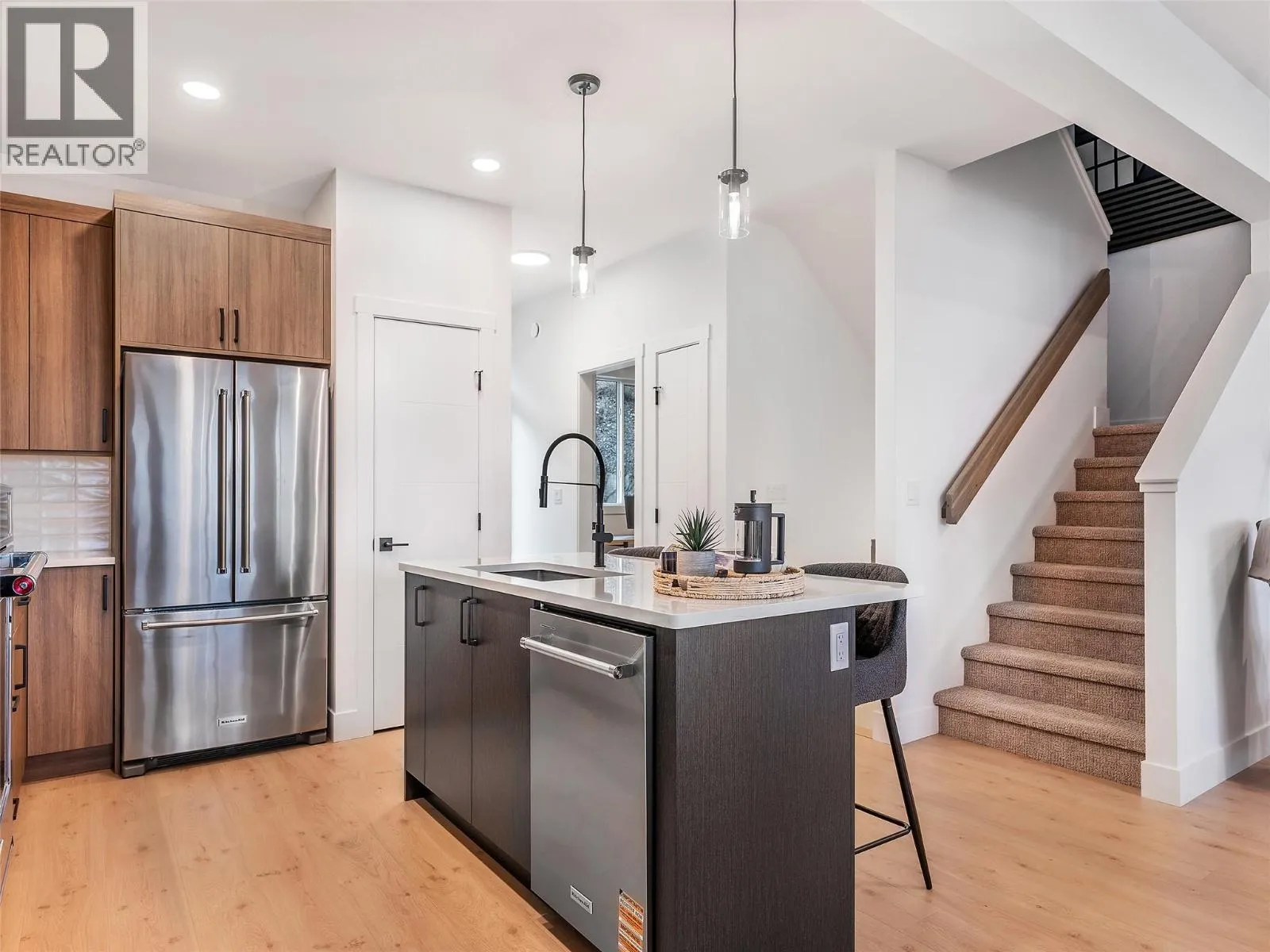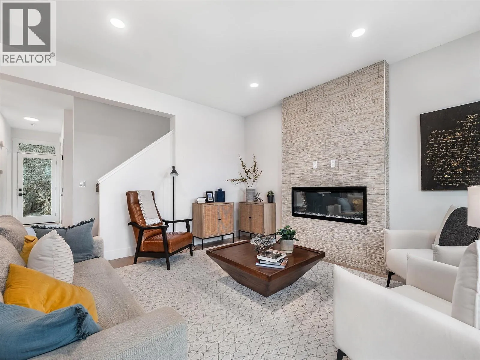 PRICED BELOW ASSESSED VALUE! This luxurious modern contemporary townhome offers an exceptional living experience in a vibrant lake-view community located just below The Rise Resort. Spanning three thoughtfully designed levels, this home features 1,767 sq ft with 3 bedrooms and 3 bathrooms. Enjoy seamless indoor-outdoor living with double decks and a walkout patio, perfectly positioned to take in the surrounding views. The oversized 19' x 40' garage provides ample space for vehicles, storage, or recreational equipment. Interior finishes include Rev Par wood flooring, a premium stainless steel KitchenAid appliance package with gas cooktop and wall oven, and a spa-inspired ensuite complete with an elegant tiled shower with 10 mm glass and a soaker tub. The main floor offers 9-foot ceilings and expansive windows that fill the space with natural light. Aldebaran Homes designed this home for comfort and peace of mind. It features 6"" concrete party walls between units for enhanced soundproofing, a high-efficiency furnace with air conditioning, Low-E energy-efficient windows, and full BC New Home Warranty coverage. No Property Transfer Tax applies when purchased as a primary residence. GST applicable. Donât miss the opportunity to own a stunning new home in one of Vernonâs most desirable new communities. (id:27476)