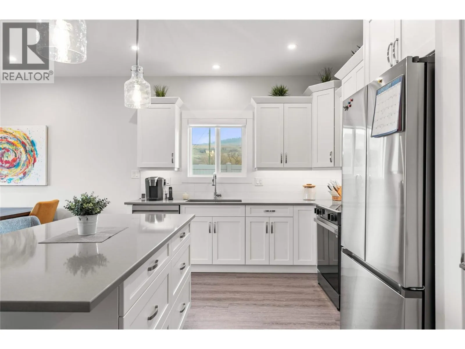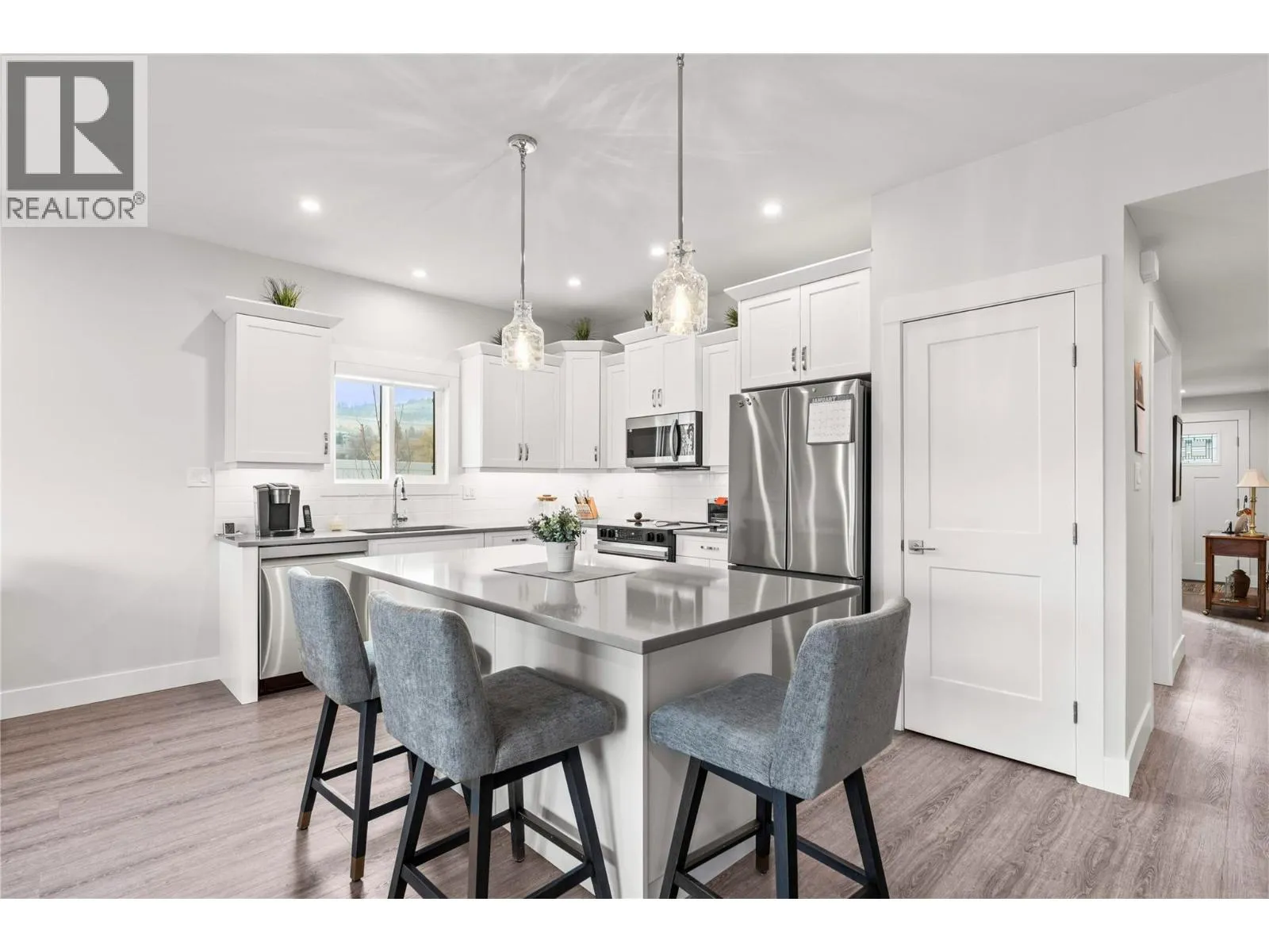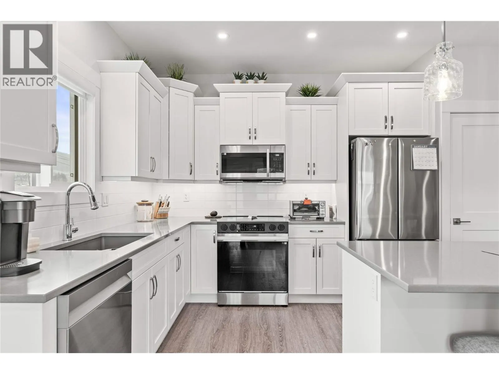Welcome to Maple Lane and Vernon's newest quaint small community for retired and semi-retired lifestyle!! With only 8 homes in total these Non-strata semi-detached rancher style bungalows with wheelchair access allow ease and throughout. Built to Step-5 Code for maximum energy efficiency and piece of mind you'll be able to maintain minimal utility fees while maximizing comfort. Enjoy hosting friends and family while preparing meals upon quartz counters, Kitchen island and the bright open floor plan flowing from Kitchen to Dining room, Living room to backyard patio. The Primary bedroom is positioned at the back of the home for optimal peaceful sleep and has walk-in closet, 5 piece ensuite with double vanity, soaker tub and walk-in shower. 2nd and 3rd bedrooms, and a 4 piece main bathroom give privacy and accommodation to visitors and exception function for at home office/den. A large Laundry, generous Foyer and oversized single garage round out the interior. Outside you'll find ample parking on paved driveway, xeriscaped front yard with irrigation for planters. The backyard is fully fenced for privacy, pets and kids/grandkids with grass and enough space to run and play. Underground irrigation for your convenience and you even get a large shed with power light and plug to tinker and store equipment. This is the lifestyle you've worked so hard for...just come home and enjoy!!!! GST is applicable but no PTT on new construction. (id:27476)