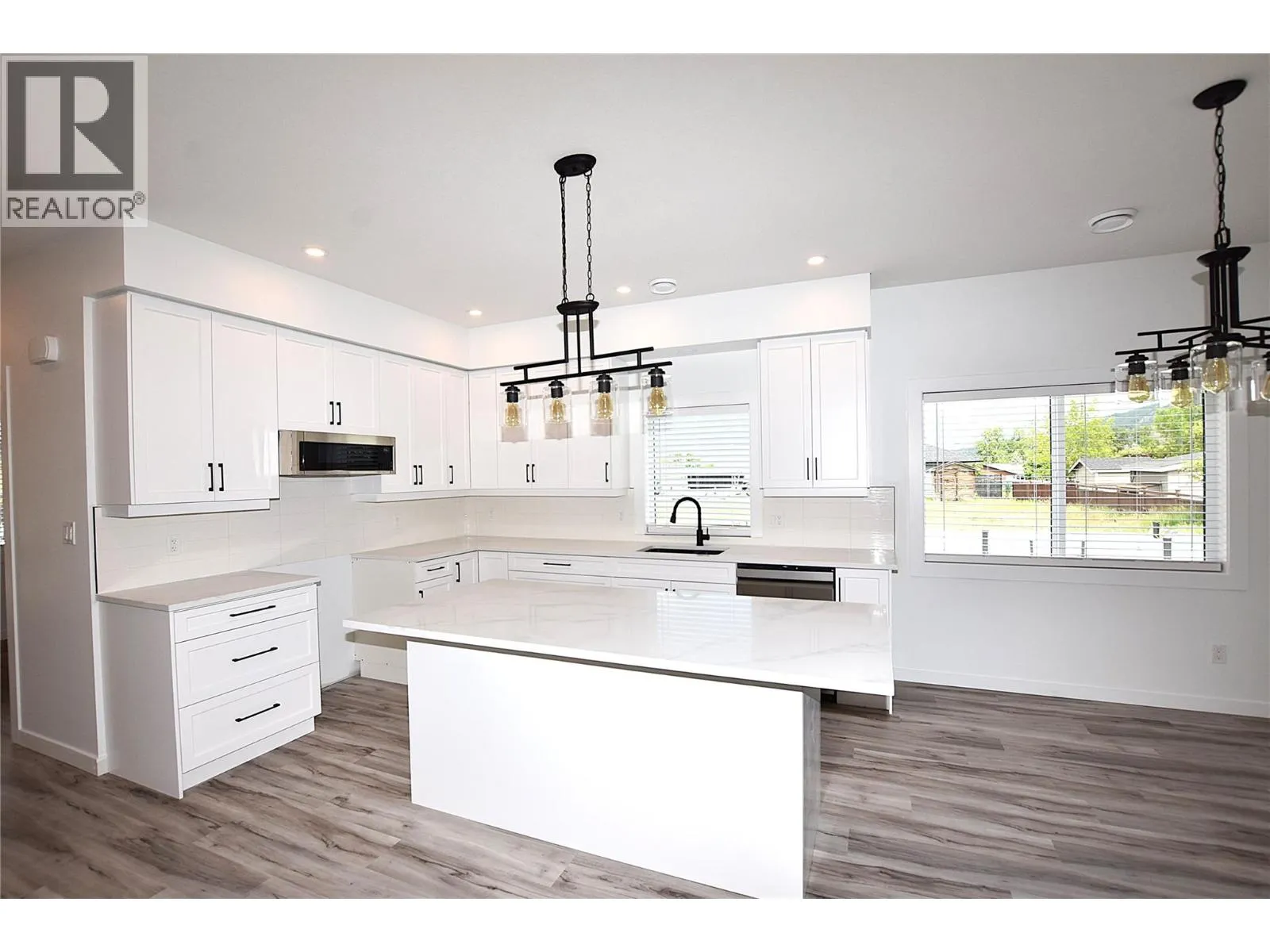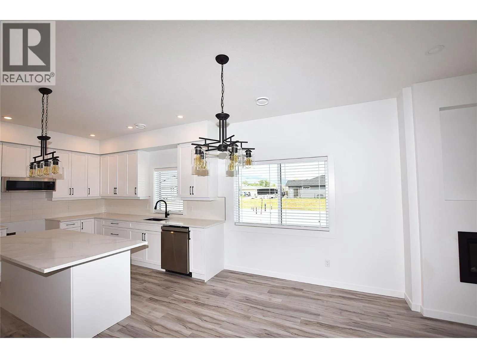Welcome to 592 Nighthawk Avenue, nestled in the beautiful Parker Cove community. This newly constructed 1,300 sq. ft. rancher combines modern comfort with everyday practicality and includes an attached double garage. Inside, the open-concept main living area features durable vinyl plank flooring, ideal for low-maintenance living. The kitchen is both stylish and functional, showcasing bright white cabinetry with soft-close drawers, a spacious island, quartz countertops, and a pantry for added storage. The living room is warmed by an electric fireplace and opens through sliding doors to a back patio, creating a seamless indoor-outdoor living experience. The primary suite offers a walk-in closet and a private 3-piece ensuite. Additional highlights include a propane furnace, heat pump for efficient heating and cooling, a utility sink in the laundry room, and flexible options for both electric and propane stoves. The home is also pre-wired for a generator and hot tub, ensuring future readiness. Ideally located just a short walk from 2,000 feet of shared Okanagan Lakefront, residents enjoy easy access to the beach and lakeside living. PREPAID LEASE TO 2056 and an annual utility fee of just $980, making this an affordable opportunity to embrace the Okanagan lifestyle. Note: GST applies; no Property Transfer Tax (PTT). (id:27476)