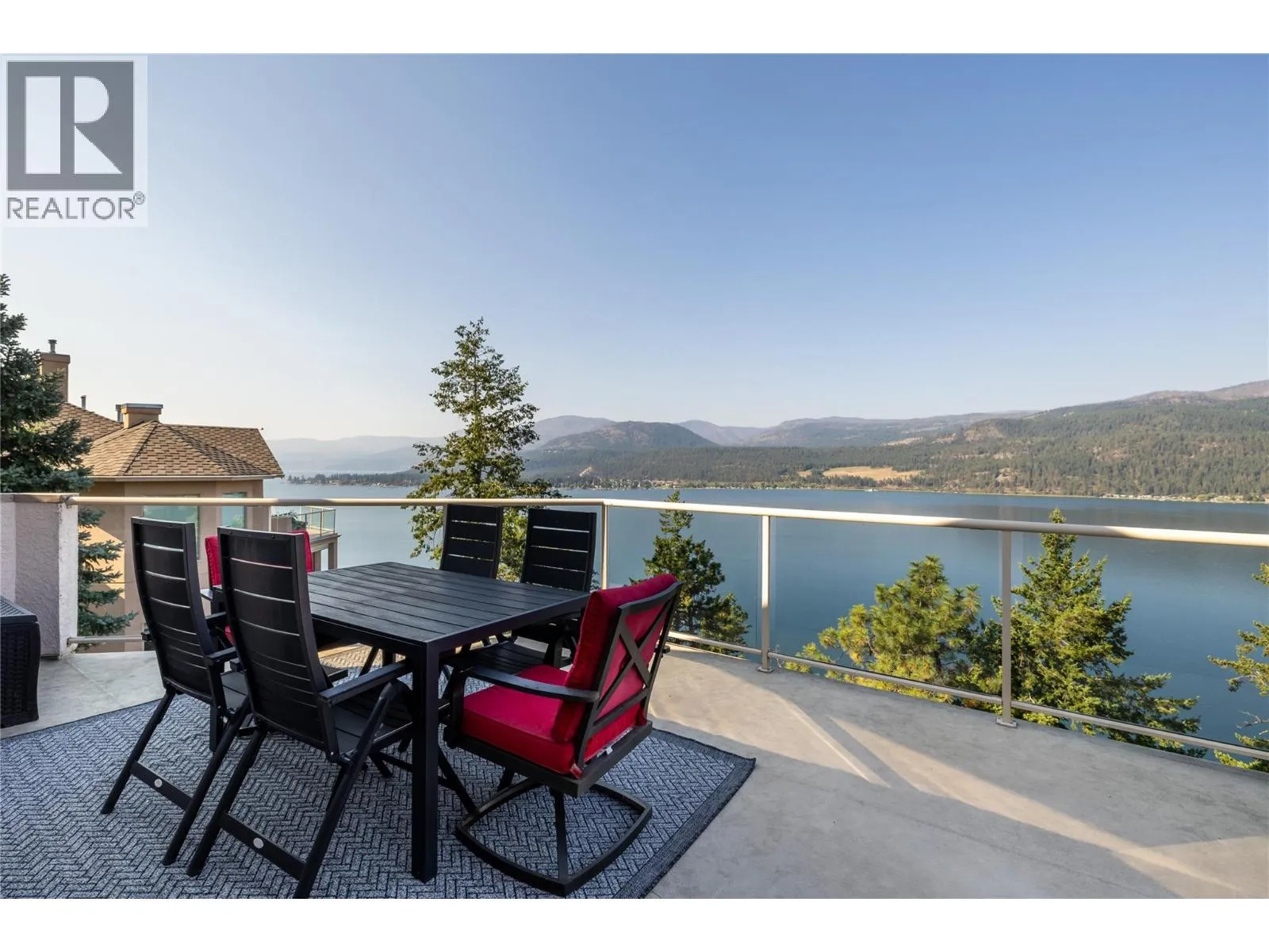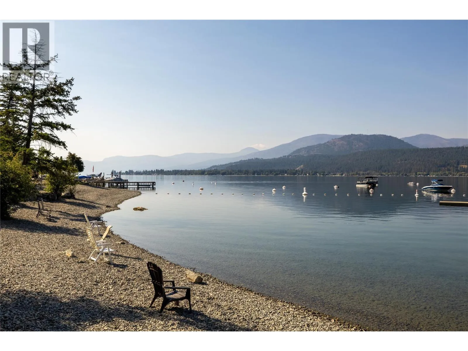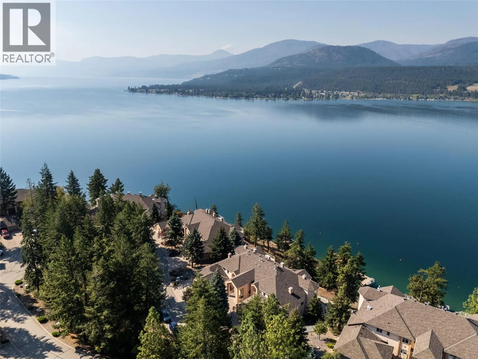 On the bluffs of Okanagan Lake sits a one-of-a-kind complex and this stunning 3 bed/2 bath rancher-style home offering breathtaking panoramic views and all the perks of waterfront living. The open layout is designed to showcase the scenery, starting with an updated kitchen featuring granite counters, tile backsplash, newer appliances, and abundant storage. The dining area with a cozy two-way gas fireplace flows seamlessly into the spacious living room with vaulted ceilings and new power blinds. The primary suite boasts deck access, a spa-inspired ensuite with custom tile shower, dual sinks, private water closet, and a generous walk-in closet. Two additional bedrooms, a full guest bath, and a laundry room with extra storage complete the thoughtful floor plan. Step outside to the expansive deck with two new power awningsâideal for summer BBQs and endless outdoor enjoyment. Parking includes a single garage, an extra outdoor stall, and ample guest spaces. This gated community showcases over 500â of private beachfront with washrooms, a swimming dock, boat launch, moorage, picnic areas, walking paths, a romantic gazebo, and a local access to tennis/pickleball courts & playground. With no age restrictions and pet-friendly policies, this âlock and leaveâ lifestyle offers the ultimate downsizing opportunity without compromise. (id:27476)