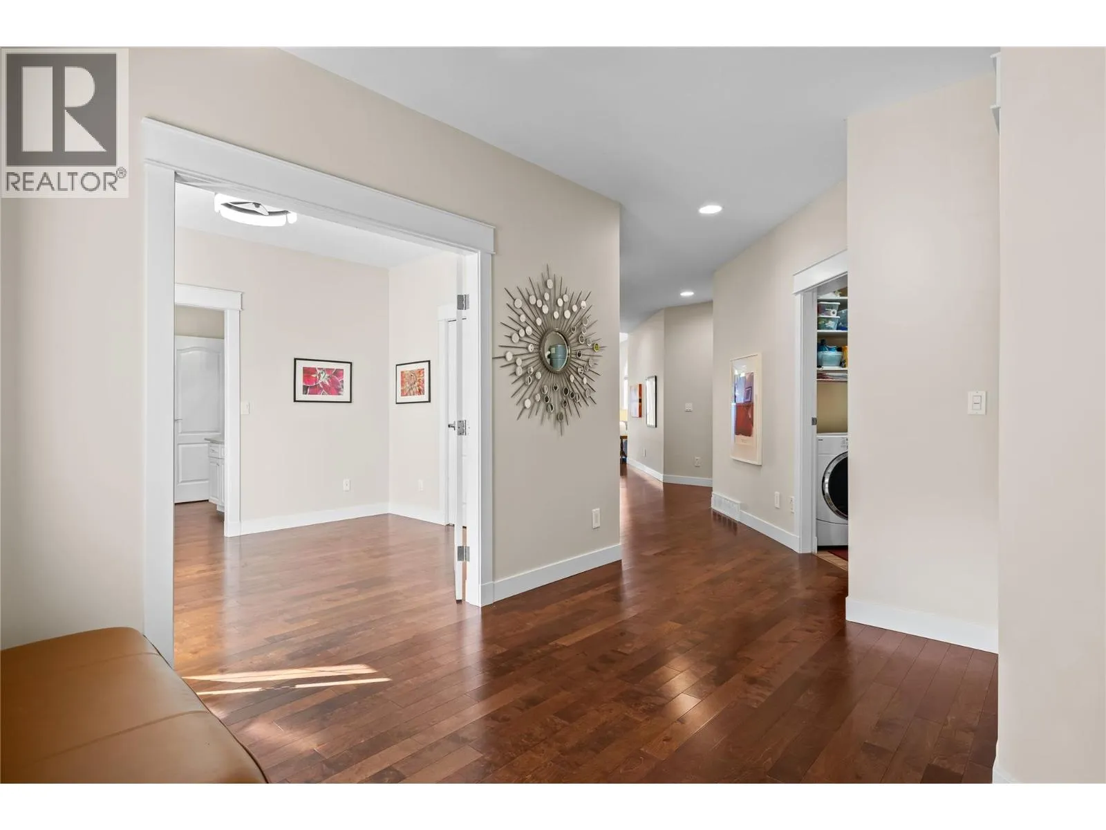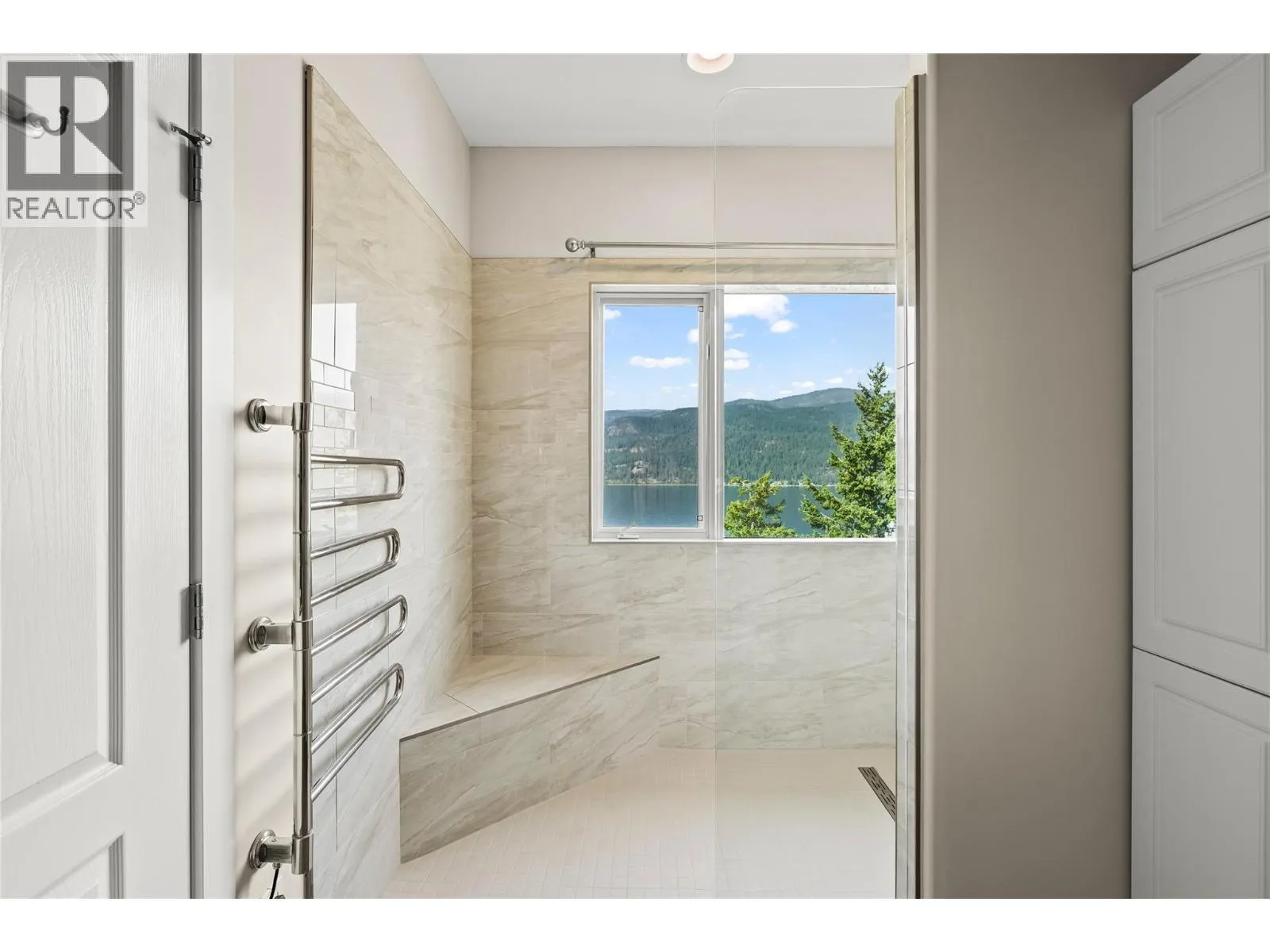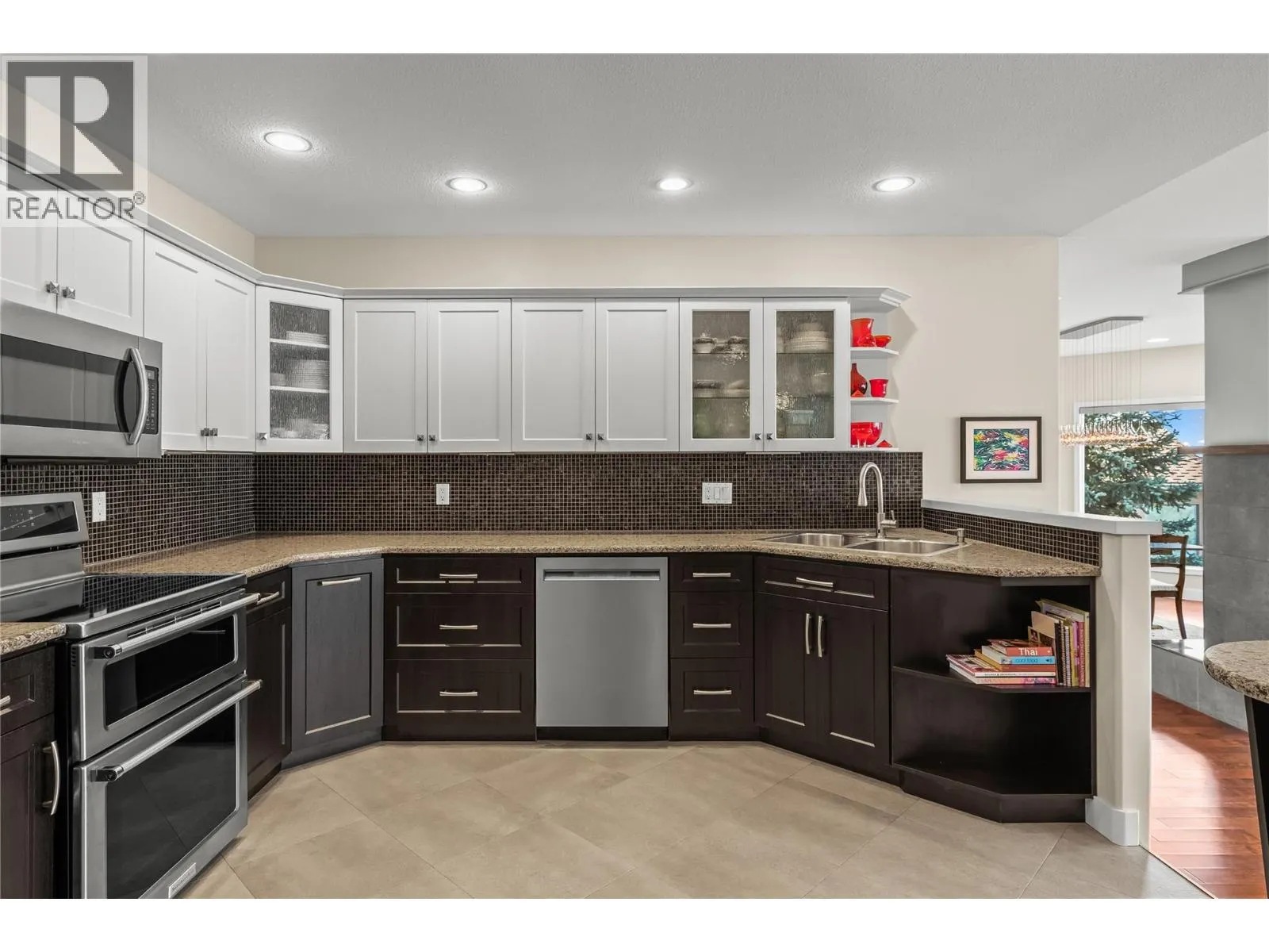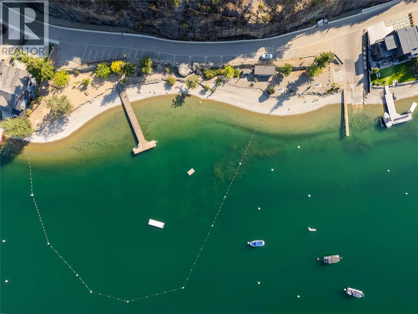 On the bluffs of Okanagan Lake sits a one-of-a-kind complex and this stunning 3 bed/2 bath rancher-style home offering breathtaking panoramic views and all the perks of waterfront living. The open layout is designed to showcase the scenery, starting with an updated kitchen featuring granite counters, tile backsplash, newer appliances, and abundant storage. The dining area with a cozy two-way gas fireplace flows seamlessly into the spacious living room with vaulted ceilings and new power blinds. The primary suite boasts deck access, a spa-inspired ensuite with custom tile shower, dual sinks, private water closet, and a generous walk-in closet. Two additional bedrooms, a full guest bath, and a laundry room with extra storage complete the thoughtful floor plan. Step outside to the expansive deck with two new power awningsâideal for summer BBQs and endless outdoor enjoyment. Parking includes a single garage, an extra outdoor stall, and ample guest spaces. This gated community showcases over 500â of private beachfront with washrooms, a swimming dock, boat launch, moorage, picnic areas, walking paths, a romantic gazebo, and a local access to tennis/pickleball courts & playground. With no age restrictions and pet-friendly policies, this âlock and leaveâ lifestyle offers the ultimate downsizing opportunity without compromise. (id:27476)