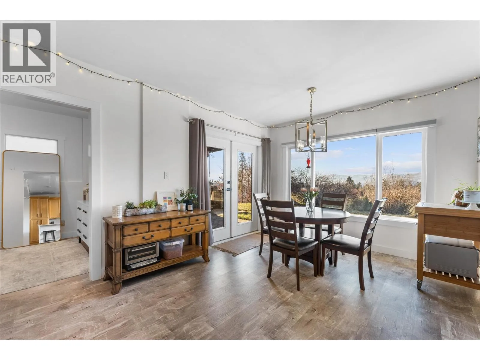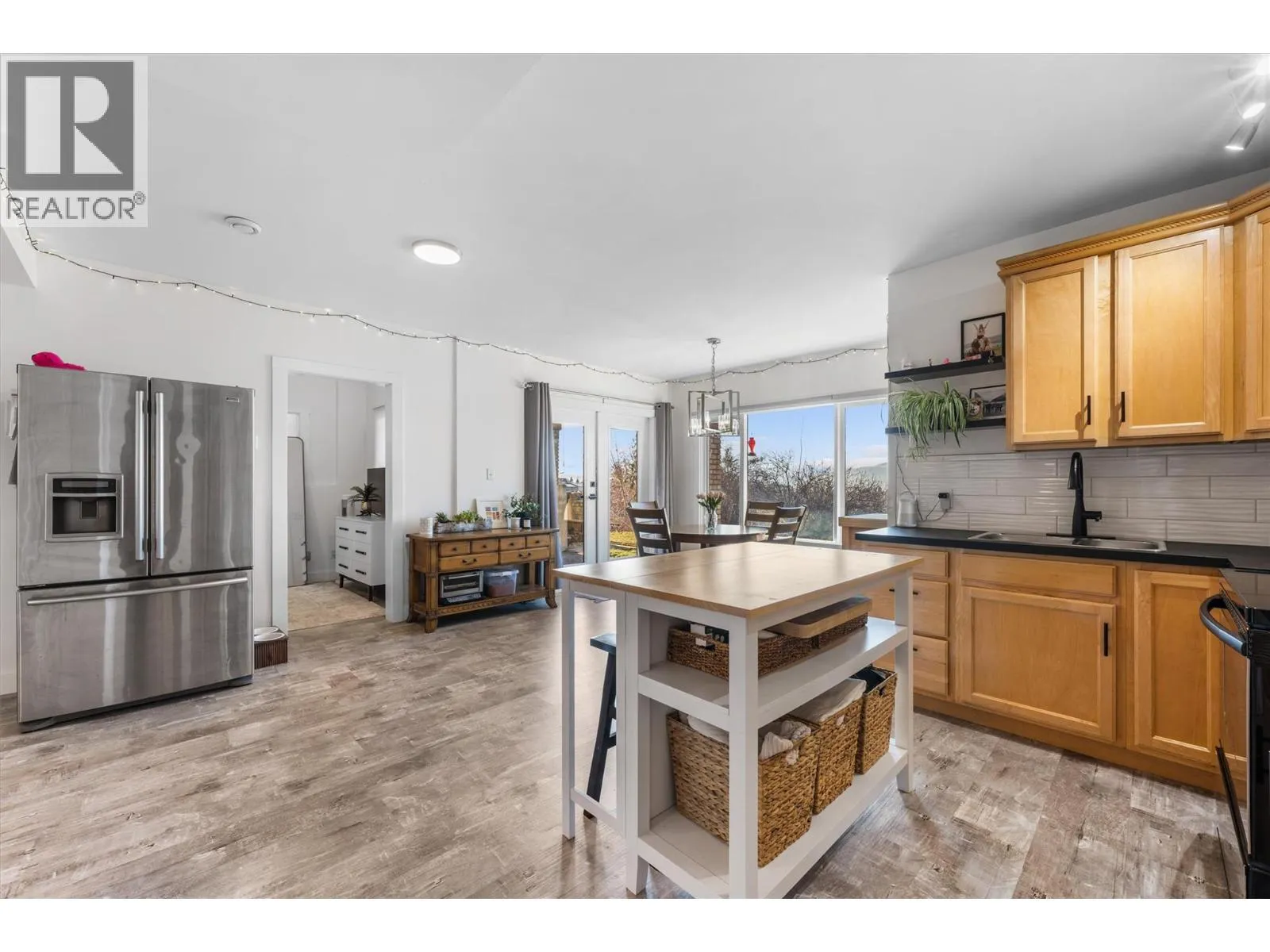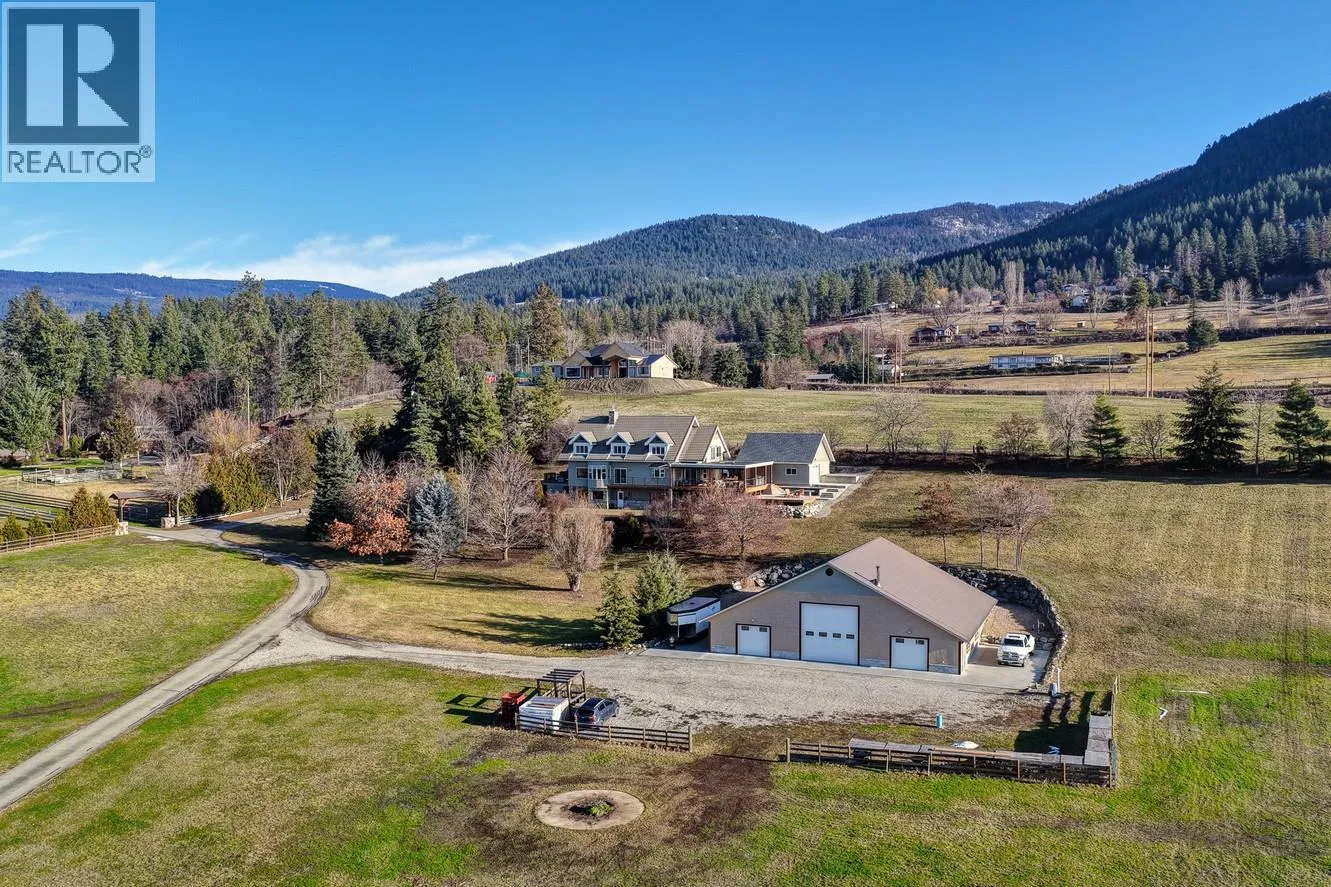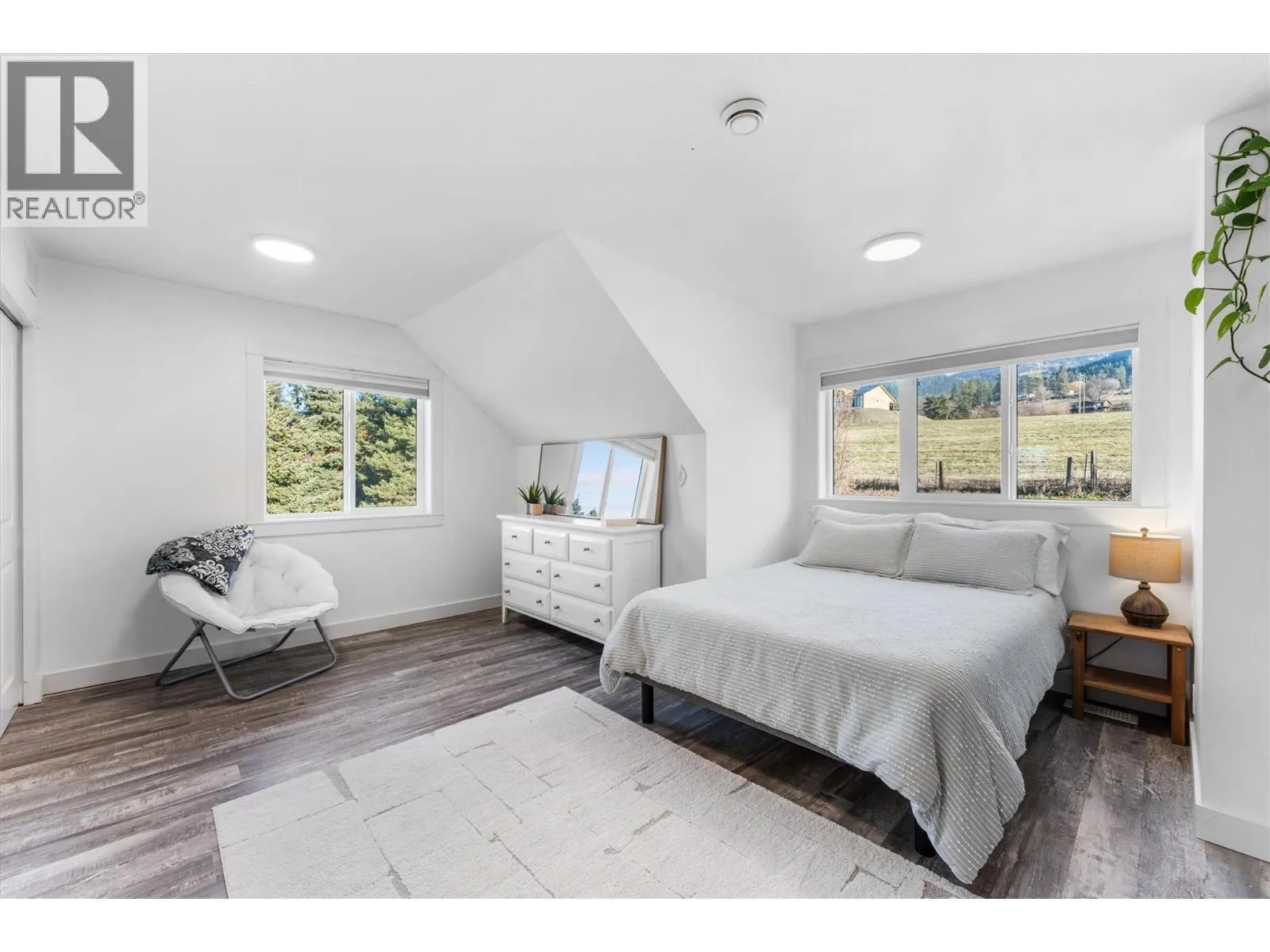 A rare opportunity to own a modern country estate on over 15 certified organic acres just five minutes from Vernon. This 4,687 sq. ft., 6-bed, 4.5-bath residence was extensively renovated by Keith Construction in 2022, featuring premium quartz surfaces, luxury wide-plank flooring, solid wood doors, Lutron lighting, updated plumbing and electrical, and in-floor radiant heat on all levels. A chefâs kitchen with Wolf appliances, a Fisher & Paykel built-in fridge, butlerâs pantry, and large island opens to sun-filled living and dining spaces, along with a covered west-facing Western Red Cedar deck with hot tub for effortless indoor-outdoor entertaining. The upper-level primary suite is a true retreat with lake and orchard views, a Juliette balcony, and spa-inspired ensuite, while a separate one-bedroom in-law suite on the lower level offers private access, parking, and a patio. A 4,000+ sq. ft. lofted, fully serviced shop with three bays, mezzanine office, and RV/boat capacity creates incredible potential for hobbies, storage, or a home-based business. The property also includes 4+ acres of mature organic apple trees featuring 20 varieties, creek frontage, ample exterior and interior parking, and panoramic valley and lake views. (id:27476)