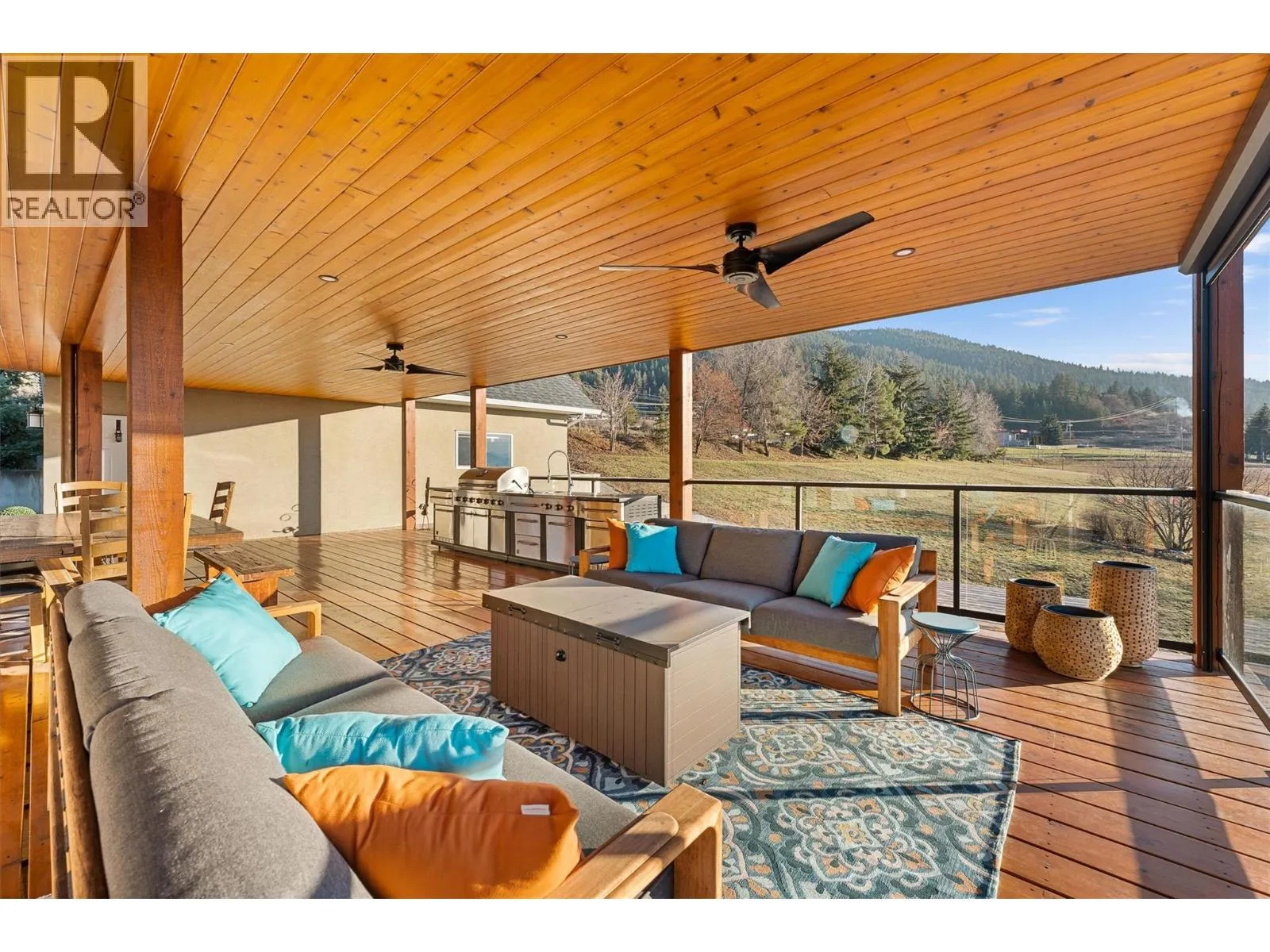 A rare opportunity to own a modern country estate on over 15 certified organic acres just five minutes from Vernon. This 4,687 sq. ft., 6-bedtoom, 4.5-bath residence was extensively renovated by Keith Construction in 2022, featuring premium quartz surfaces, luxury wide-plank flooring, solid wood doors, Lutron lighting, updated plumbing and electrical, and in-floor radiant heat on all levels. A chefâs kitchen with Wolf appliances, a Fisher & Paykel built-in fridge, butlerâs pantry, and large island opens to sun-filled living and dining spaces, along with a covered west-facing Western Red Cedar deck with hot tub for effortless indoor-outdoor entertaining. The upper-level primary suite is a true retreat with lake and orchard views, a Juliette balcony, and spa-inspired ensuite, while a separate one-bedroom in-law suite on the lower level offers private access, parking, and a patio. A 4,000+ sq. ft. lofted, fully serviced shop with three bays, mezzanine office, and RV/boat capacity creates incredible potential for hobbies, storage, or a home-based business. The property also includes 4 plus acres of mature organic apple trees featuring 20 varieties, creek frontage, ample exterior and interior parking, and panoramic valley and lake views. (id:27476)