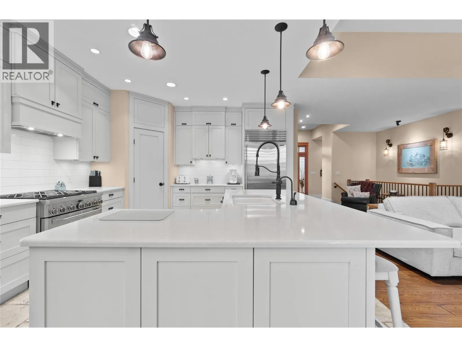 Tucked into a sought-after North BX setting, this 1.01-acre fully fenced property delivers the privacy, space, and functionality families look for without sacrificing comfort or style. Automatic gated entry, generous parking, and a thoughtful layout make everyday living easy and secure. With over 4,300 sqft. of finished space this custom home offers 7 bedrooms and 5 bathrooms with a practical open-concept main floor designed for real life. The kitchen, dining, and living areas flow seamlessly to a covered timber-frame deck perfect for year-round BBQs and outdoor meals while overlooking the backyard. The property truly sets itself apart. A large, private pool and entertainment area creates a true outdoor living zone, ideal for hosting, relaxing, or keeping an eye on kids at play. A built-in TV rises discreetly from the bar top, making it easy to enjoy big games or movie nights outdoors without compromising the clean design. The yard is fully usable, combining lawn, established gardens, and a landscaped rear terrace with fruit trees and grapevines. Outbuildings and shops provide flexible space for projects, storage, or recreational vehicles, while an RV pad with power and sewer adds everyday convenience. The lower level features a bright, open layout perfect for entertaining, extended family, and could be turned back into a bright 2-bedroom suite with its own laundry. A well-designed property for those who value privacy, function, and exceptional outdoor living in North BX. (id:27476)