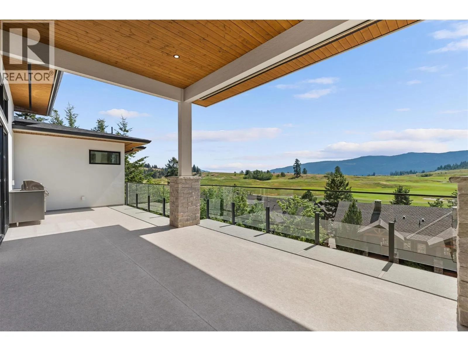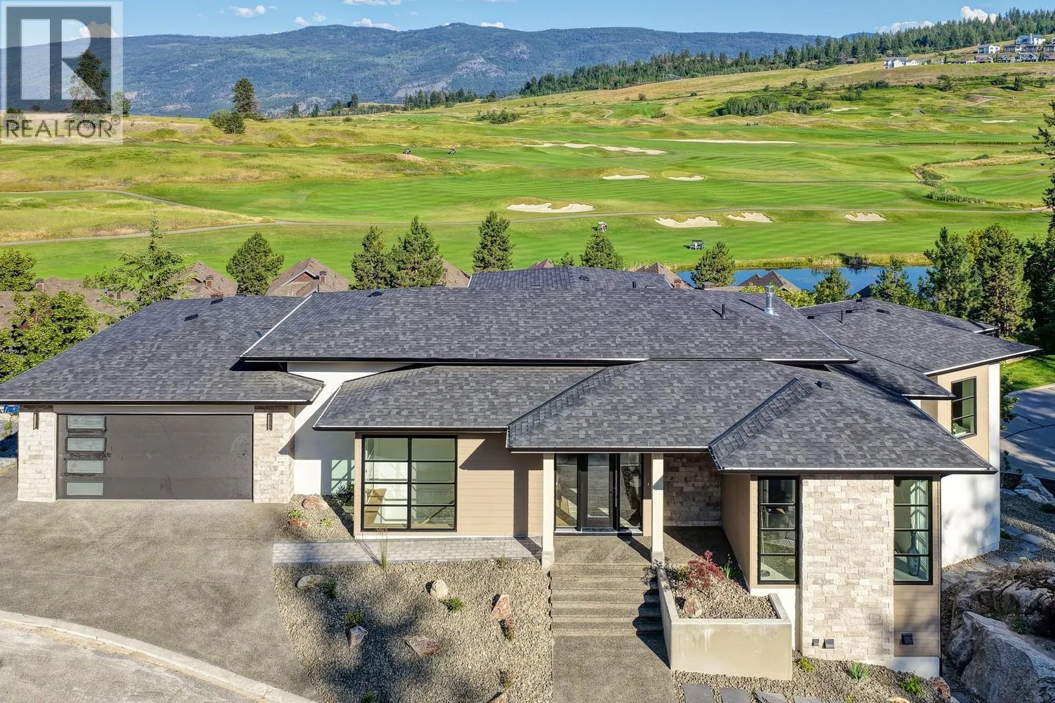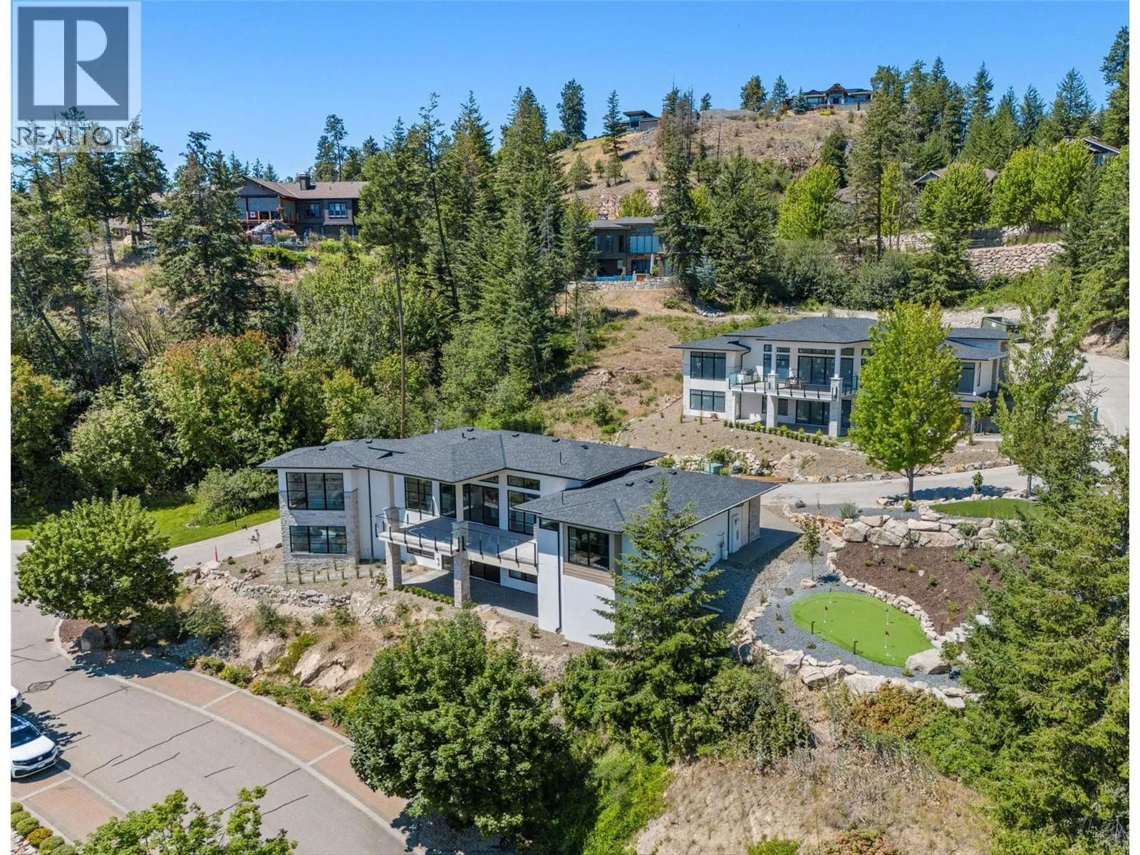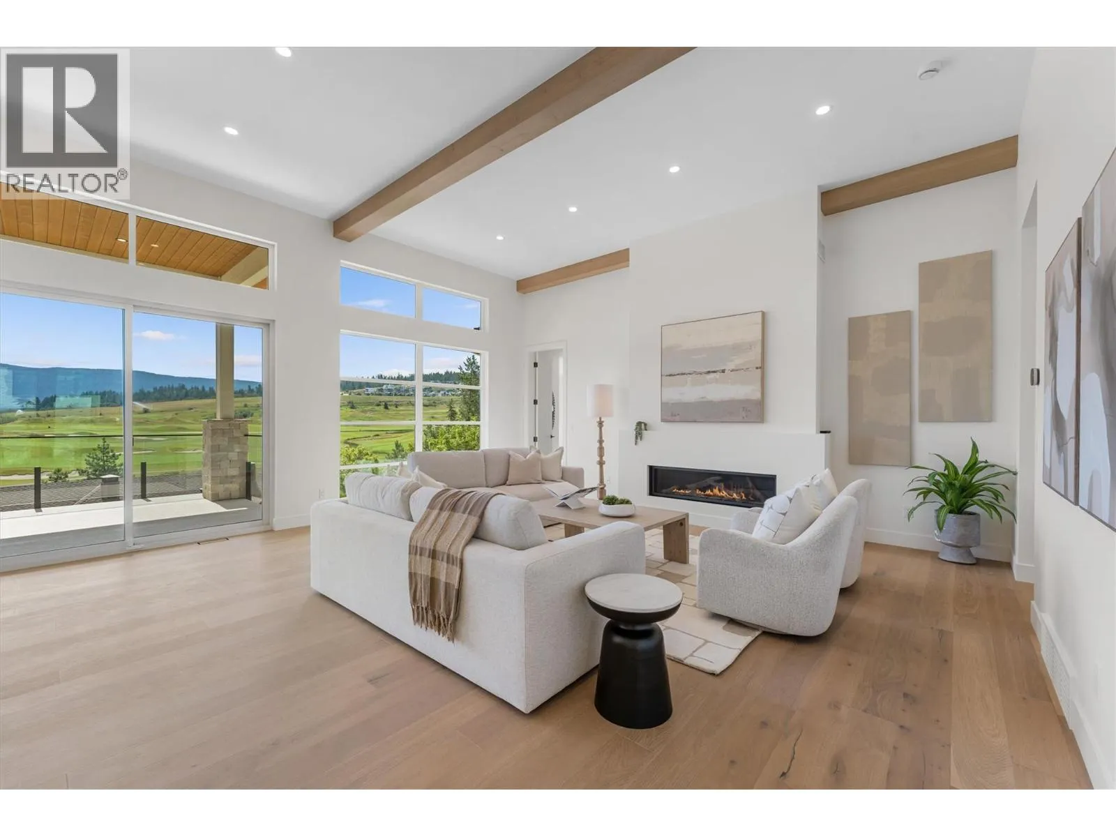 NO SPEC/VACANCY TAX. Modern luxury meets resort-style living in this brand-new residence at Predator Ridgeâs prestigious Falcon Point. With over 4,000 sq. ft. of refined design, this 5 bed, 4 bath home is perfectly positioned to capture golf course and mountain views. Expansive windows and 12 ft. ceilings with exposed beams set the tone in the main living space, where a sleek fireplace and engineered hardwood floors create an elegant yet inviting atmosphere. The chefâs kitchen is a true centerpiece, featuring a Fisher & Paykel appliance package, entertainment-sized waterfall island, and seamless access to a covered patio complete with an outdoor kitchen. The main floor offers a serene primary retreat with spa-inspired 5-piece ensuite and a second bedroom or use as an office. The lower level is designed for entertaining with a spacious rec room, wet bar, and patio ready for a hot tub. A secondary primary suite with ensuite and walk-in closet, plus two additional bedrooms and a den/gym, provide excellent space for family and guests. An amazing 4-car garage, fully landscaped grounds, and thoughtful finishes throughout reflect exceptional attention to detail. Enjoy the unparalleled lifestyle of Predator Ridge, Canadaâs premier four-season resort community, offering 36 holes of championship golf, a racquet club, miles of trails, Sparkling Hill Resort nearby, and world-class wineries just minutes away. GST applicable. (id:27476)