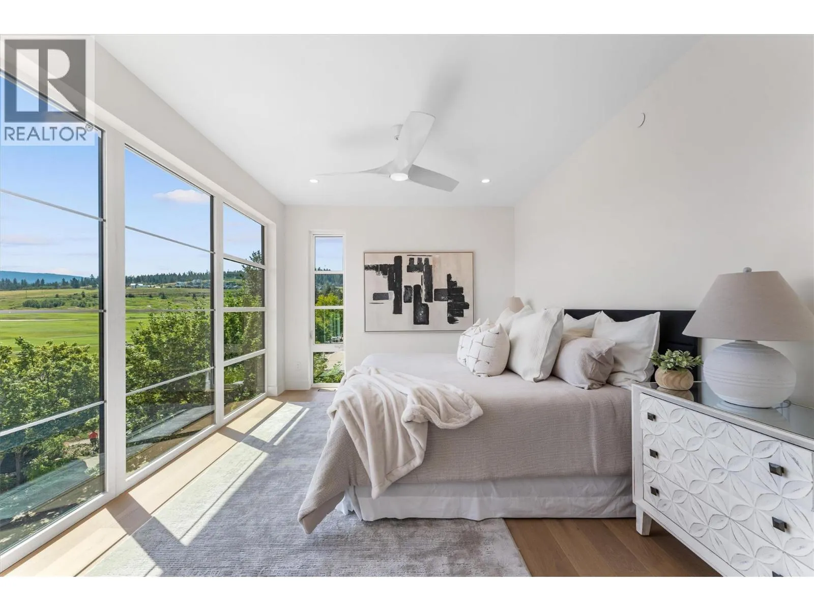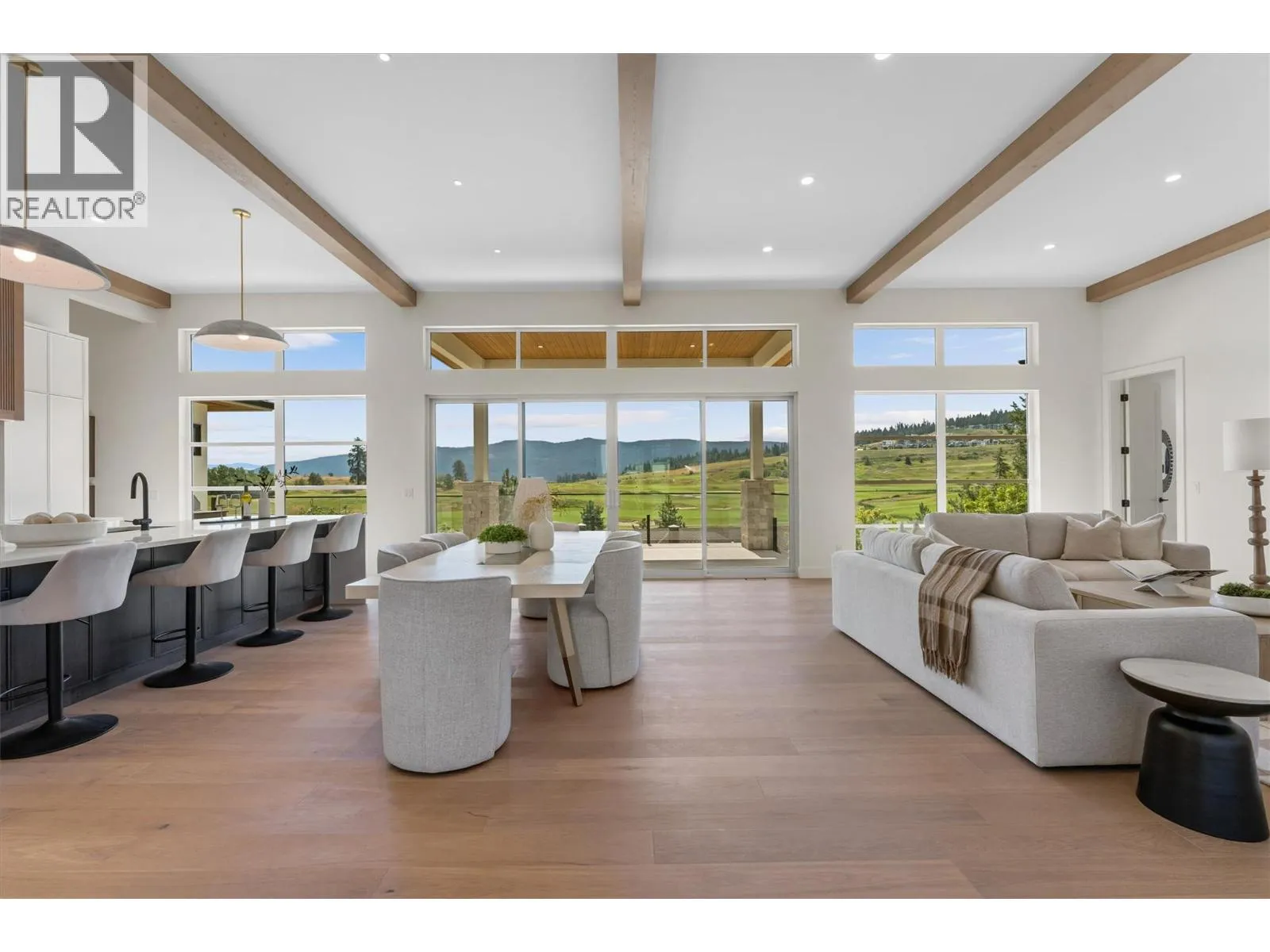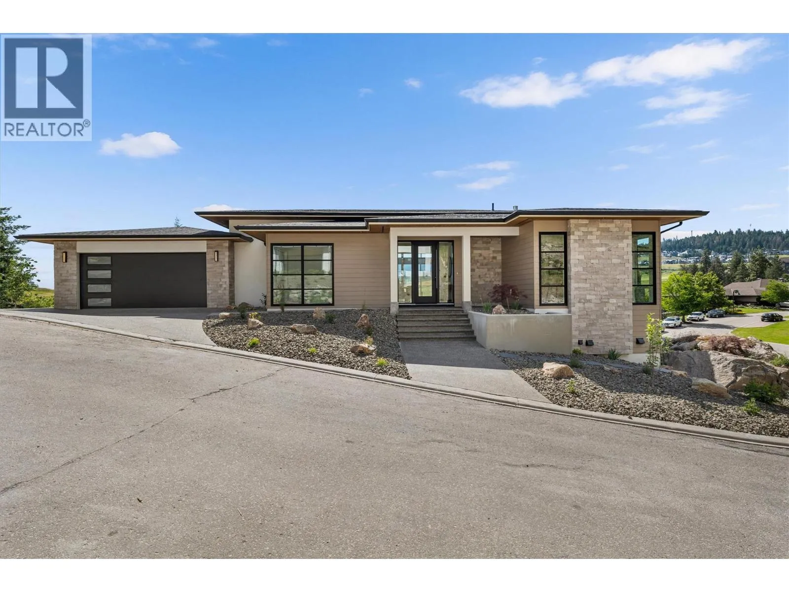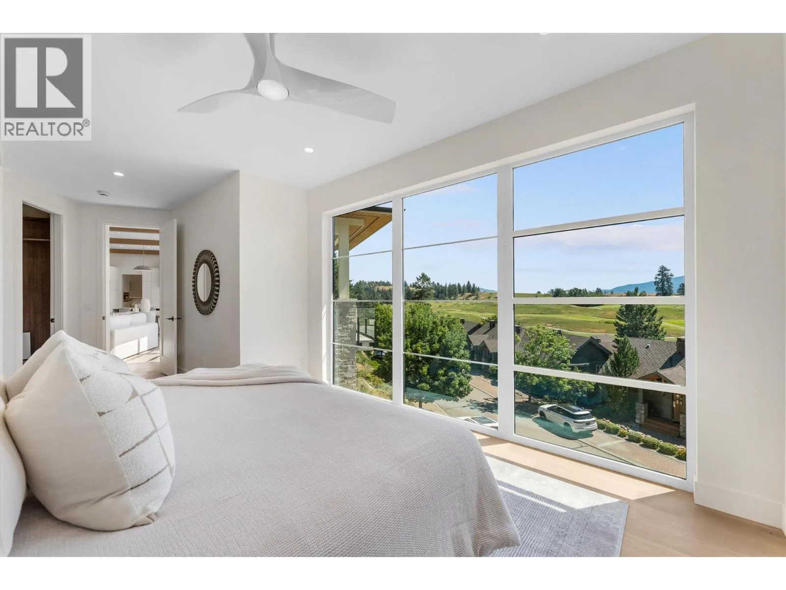 NO SPEC/VACANCY TAX. Modern luxury meets resort-style living in this brand-new residence at Predator Ridgeâs prestigious Falcon Point. With over 4,000 sq. ft. of refined design, this 5 bed, 4 bath home is perfectly positioned to capture golf course and mountain views. Expansive windows and 12 ft. ceilings with exposed beams set the tone in the main living space, where a sleek fireplace and engineered hardwood floors create an elegant yet inviting atmosphere. The chefâs kitchen is a true centerpiece, featuring a Fisher & Paykel appliance package, entertainment-sized waterfall island, and seamless access to a covered patio complete with an outdoor kitchen. The main floor offers a serene primary retreat with spa-inspired 5-piece ensuite and a second bedroom or use as an office. The lower level is designed for entertaining with a spacious rec room, wet bar, and patio ready for a hot tub. A secondary primary suite with ensuite and walk-in closet, plus two additional bedrooms and a den/gym, provide excellent space for family and guests. An amazing 4-car garage, fully landscaped grounds, and thoughtful finishes throughout reflect exceptional attention to detail. Enjoy the unparalleled lifestyle of Predator Ridge, Canadaâs premier four-season resort community, offering 36 holes of championship golf, a racquet club, miles of trails, Sparkling Hill Resort nearby, and world-class wineries just minutes away. GST applicable. (id:27476)
