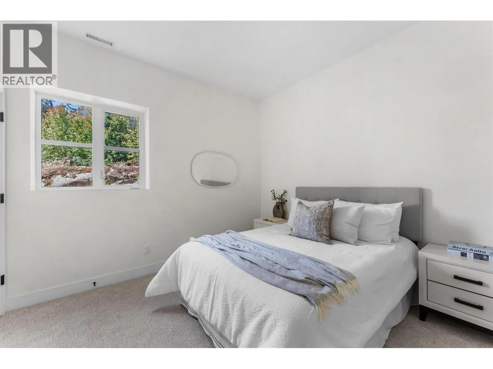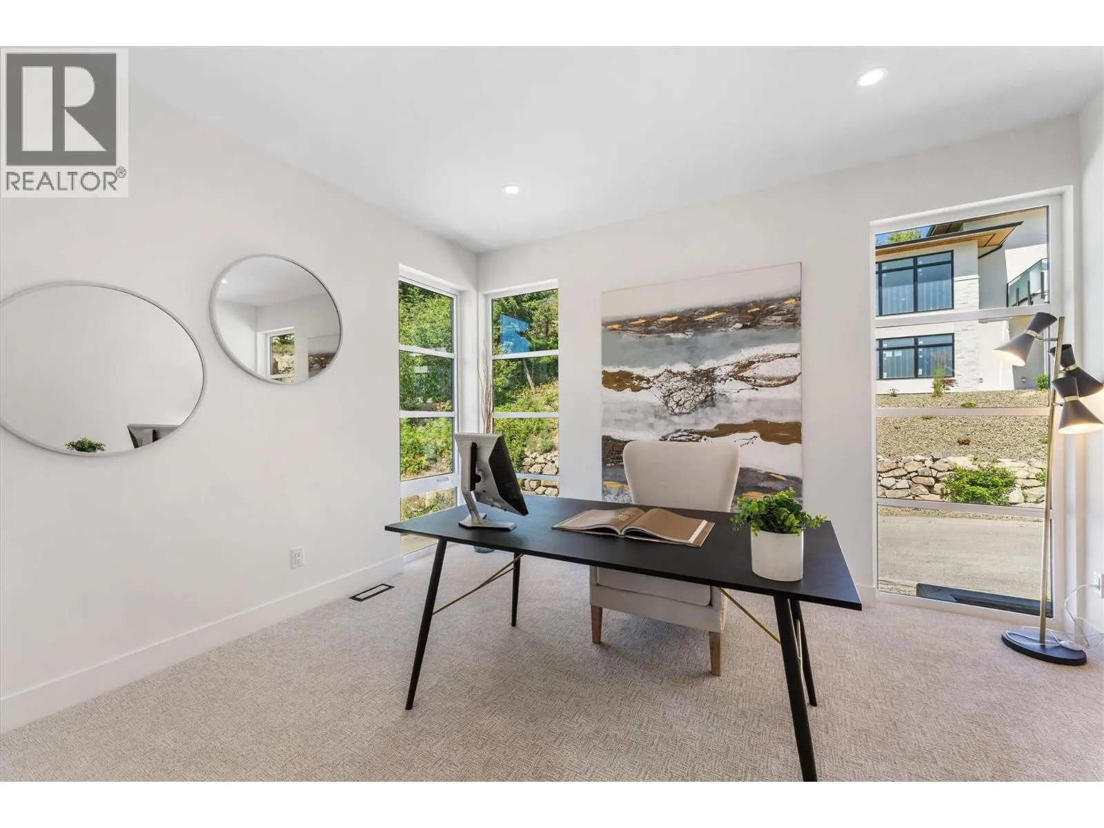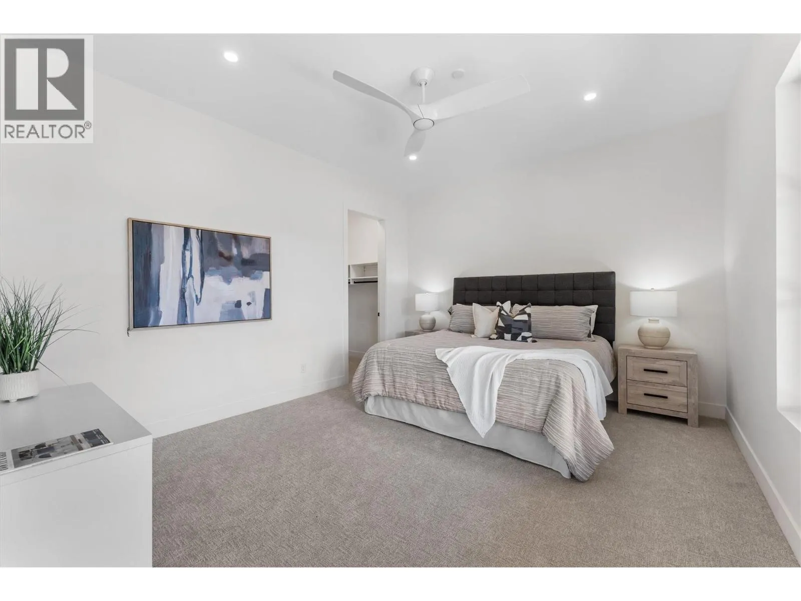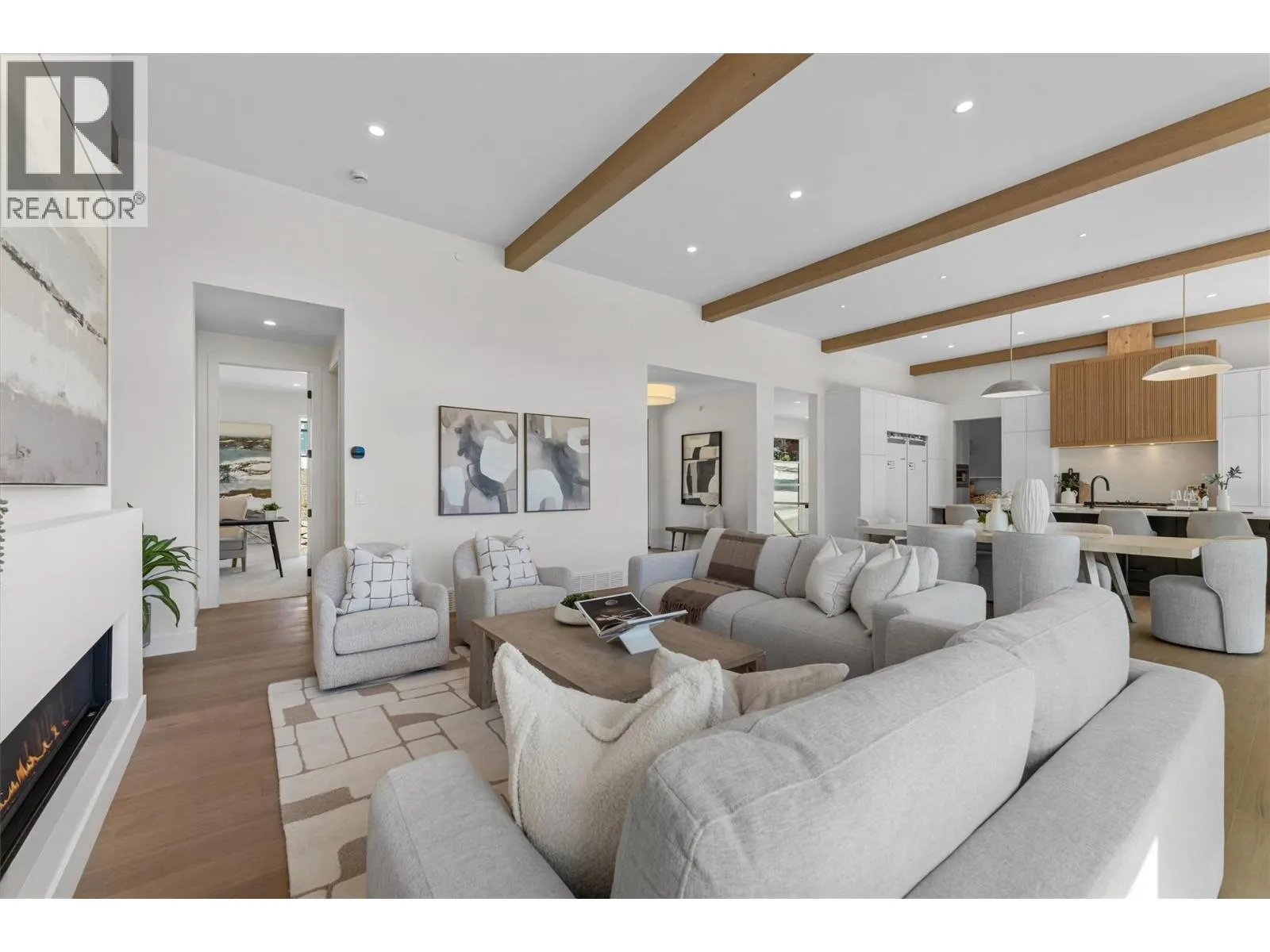 NO SPEC/VACANCY TAX. Modern luxury meets resort-style living in this brand-new residence at Predator Ridgeâs prestigious Falcon Point. With over 4,000 sq. ft. of refined design, this 5 bed, 4 bath home is perfectly positioned to capture golf course and mountain views. Expansive windows and 12 ft. ceilings with exposed beams set the tone in the main living space, where a sleek fireplace and engineered hardwood floors create an elegant yet inviting atmosphere. The chefâs kitchen is a true centerpiece, featuring a Fisher & Paykel appliance package, entertainment-sized waterfall island, and seamless access to a covered patio complete with an outdoor kitchen. The main floor offers a serene primary retreat with spa-inspired 5-piece ensuite and a second bedroom or use as an office. The lower level is designed for entertaining with a spacious rec room, wet bar, and patio ready for a hot tub. A secondary primary suite with ensuite and walk-in closet, plus two additional bedrooms and a den/gym, provide excellent space for family and guests. An amazing 4-car garage, fully landscaped grounds, and thoughtful finishes throughout reflect exceptional attention to detail. Enjoy the unparalleled lifestyle of Predator Ridge, Canadaâs premier four-season resort community, offering 36 holes of championship golf, a racquet club, miles of trails, Sparkling Hill Resort nearby, and world-class wineries just minutes away. GST applicable. (id:27476)