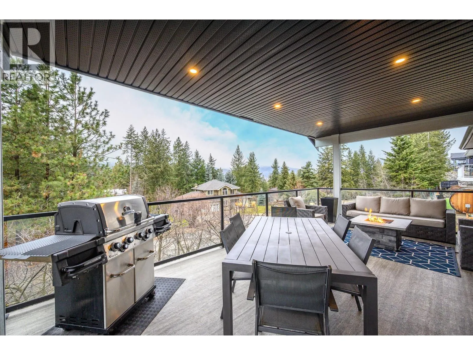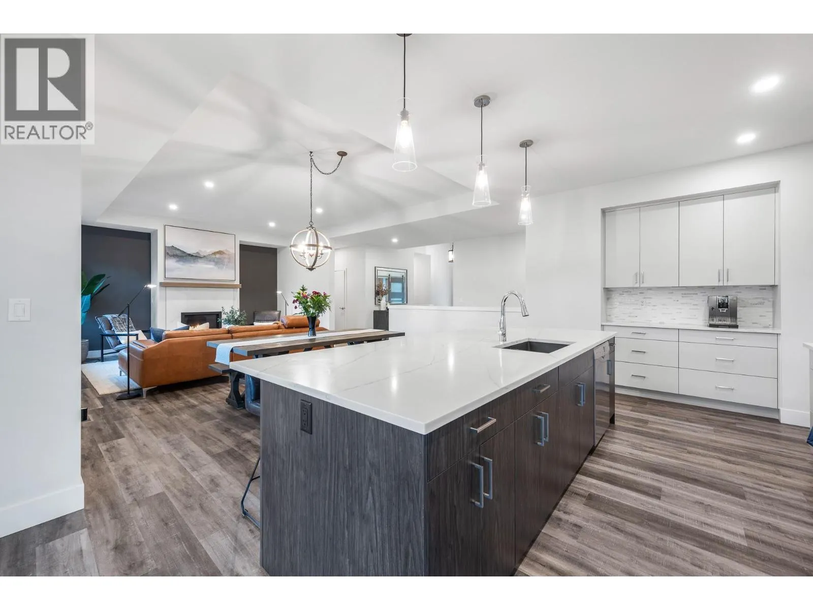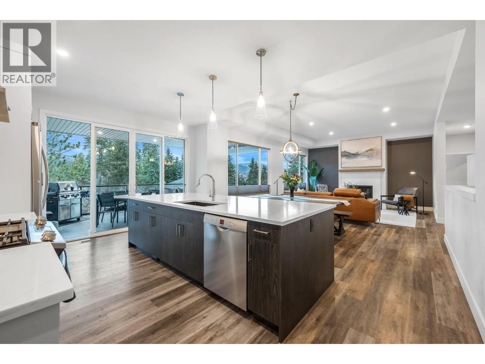 Set within the sought-after Canadian Lakeview Estates, this newly built walk-out rancher offers a refined blend of comfort, functionality, and lifestyle. Designed with entertaining in mind, the open main living area is filled with natural light and showcases a modern kitchen with stainless steel appliances, a generous island, and stone countertops. The adjoining living room is anchored by a gas fireplace feature wall and opens onto a large covered deck with beautiful mountain views. Thoughtful design details continue throughout the home, including three private en-suites that provide added privacy and convenience for family and guests. Residents enjoy exclusive access to a private beach featuring showers and a picnic area, tucked away on a quiet side street, along with a shared boat launch for easy lake access. Additional highlights include quartz countertops throughout, provisions for future boiler and in-floor heating, and pre-wiring for a hot tub and electric vehicle. The neighbourhood also offers a community park with tennis and pickleball courts, completing this exceptional lakeside lifestyle. (id:27476)