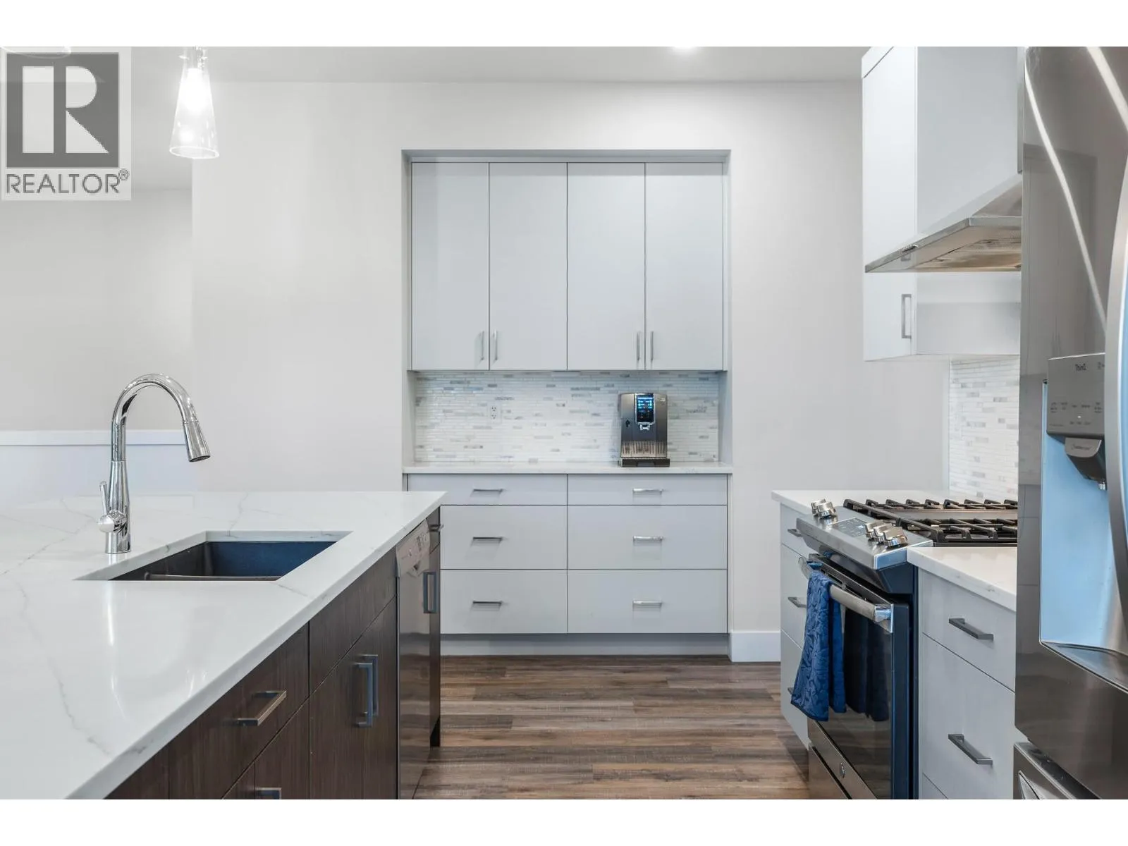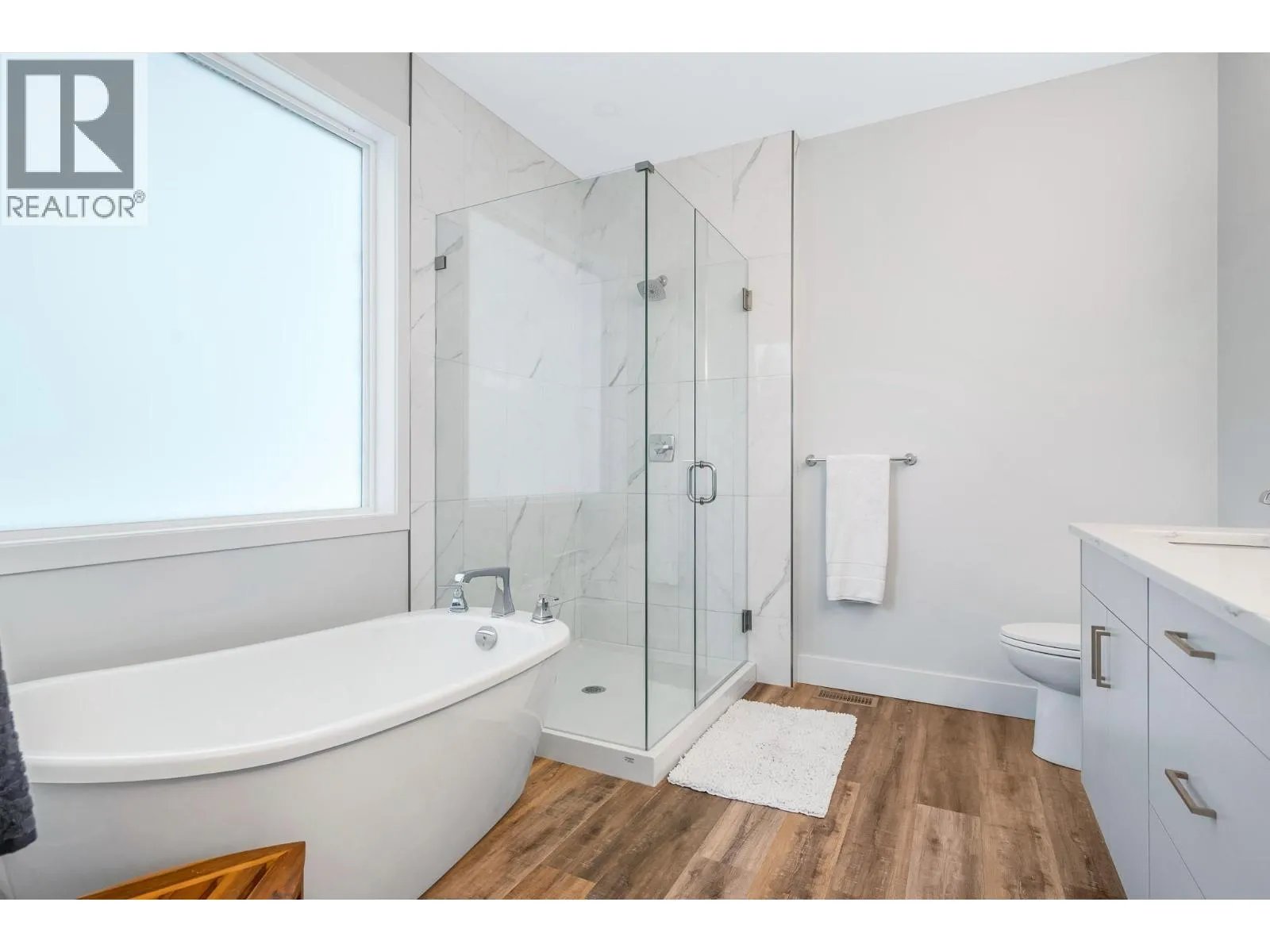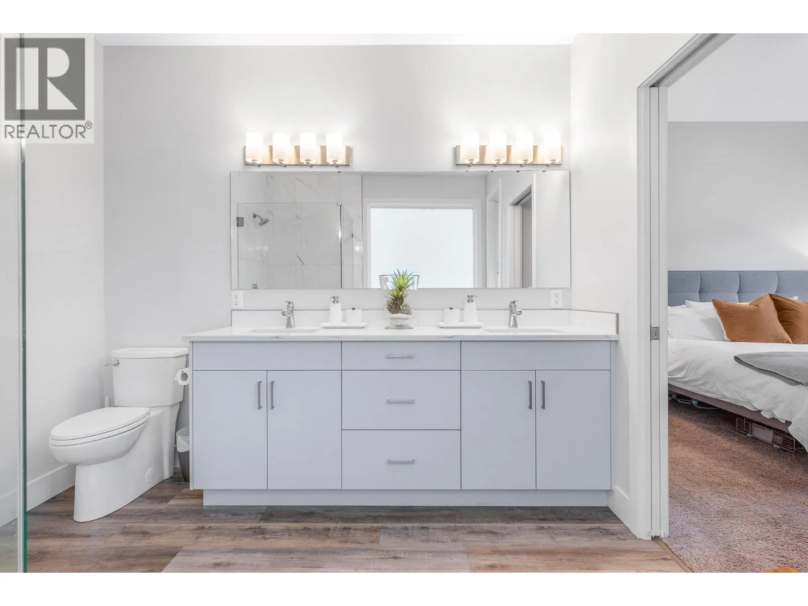 Set within the sought-after Canadian Lakeview Estates, this newly built walk-out rancher offers a refined blend of comfort, functionality, and lifestyle. Designed with entertaining in mind, the open main living area is filled with natural light and showcases a modern kitchen with stainless steel appliances, a generous island, and stone countertops. The adjoining living room is anchored by a gas fireplace feature wall and opens onto a large covered deck with beautiful mountain views. Thoughtful design details continue throughout the home, including three private en-suites that provide added privacy and convenience for family and guests. Residents enjoy exclusive access to a private beach featuring showers and a picnic area, tucked away on a quiet side street, along with a shared boat launch for easy lake access. Additional highlights include quartz countertops throughout, provisions for future boiler and in-floor heating, and pre-wiring for a hot tub and electric vehicle. The neighbourhood also offers a community park with tennis and pickleball courts, completing this exceptional lakeside lifestyle. (id:27476)