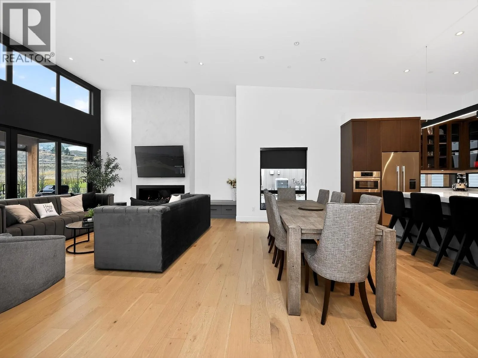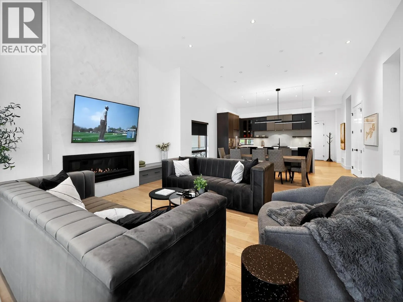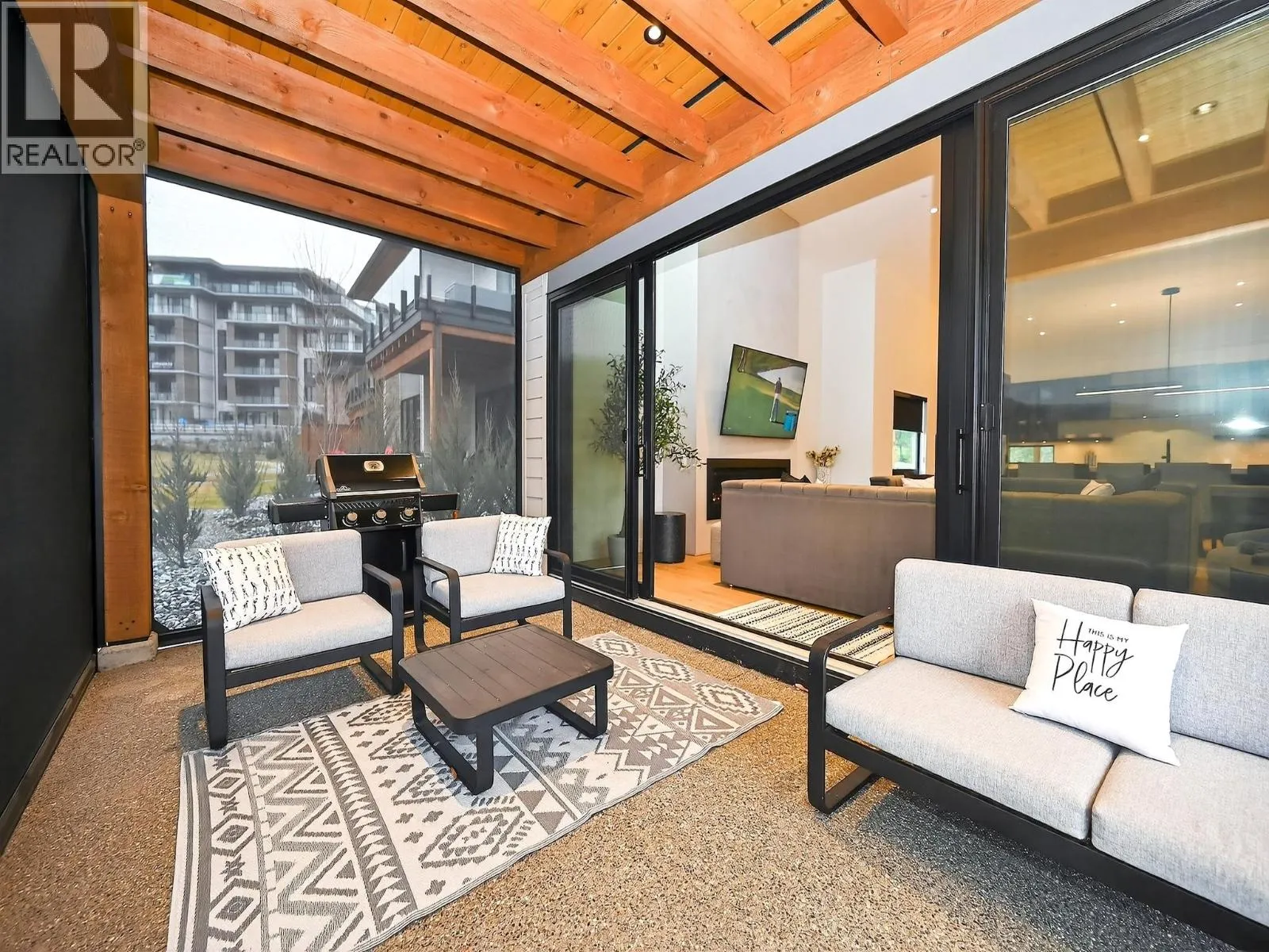 Live on the golf courseânot just near itâin this exceptional Fieldglass residence overlooking the first fairway and green of the renowned Ridge Course. Designed for lifestyle and entertainment, the home features a spectacular fully enclosed outdoor living area with screens, offering privacy while preserving sweeping golf-course views and entertainment! SO FUN! The open-concept main level blends comfort and decadence with a gourmet kitchen featuring quartz counters, stainless appliances, and custom cabinetry(of course!) flowing seamlessly into bright, casually elegant dining and living spaces and effortless indoor-outdoor entertaining. A spacious main-floor primary suite with spa-inspired ensuite delivers true level living and private retreat comfort. Upstairs, two guest bedroomsâeach with full ensuitesâare complemented by a versatile office/flex room or optional fourth bedroom. The partially finished lower level provides additional rec or media space plus abundant storage, while the generous garage accommodates vehicles and all your Okanagan lifestyle essentials. The Fieldglass ownersâ pool (the best there is! ) is just steps away. Owners and guests also enjoy access to multimillion $ recreation with gym, studios, indoor pool, hiking, biking, pickleball and tennis. Offered fully furnished and move-in ready, with optional short- or long-term rental participation for added flexibility and investment appeal. Monthly strata of $774 includes exterior/extensive coverageâowners insure contents only. NOTE: GST has been paid and there is no speculation tax (id:27476)