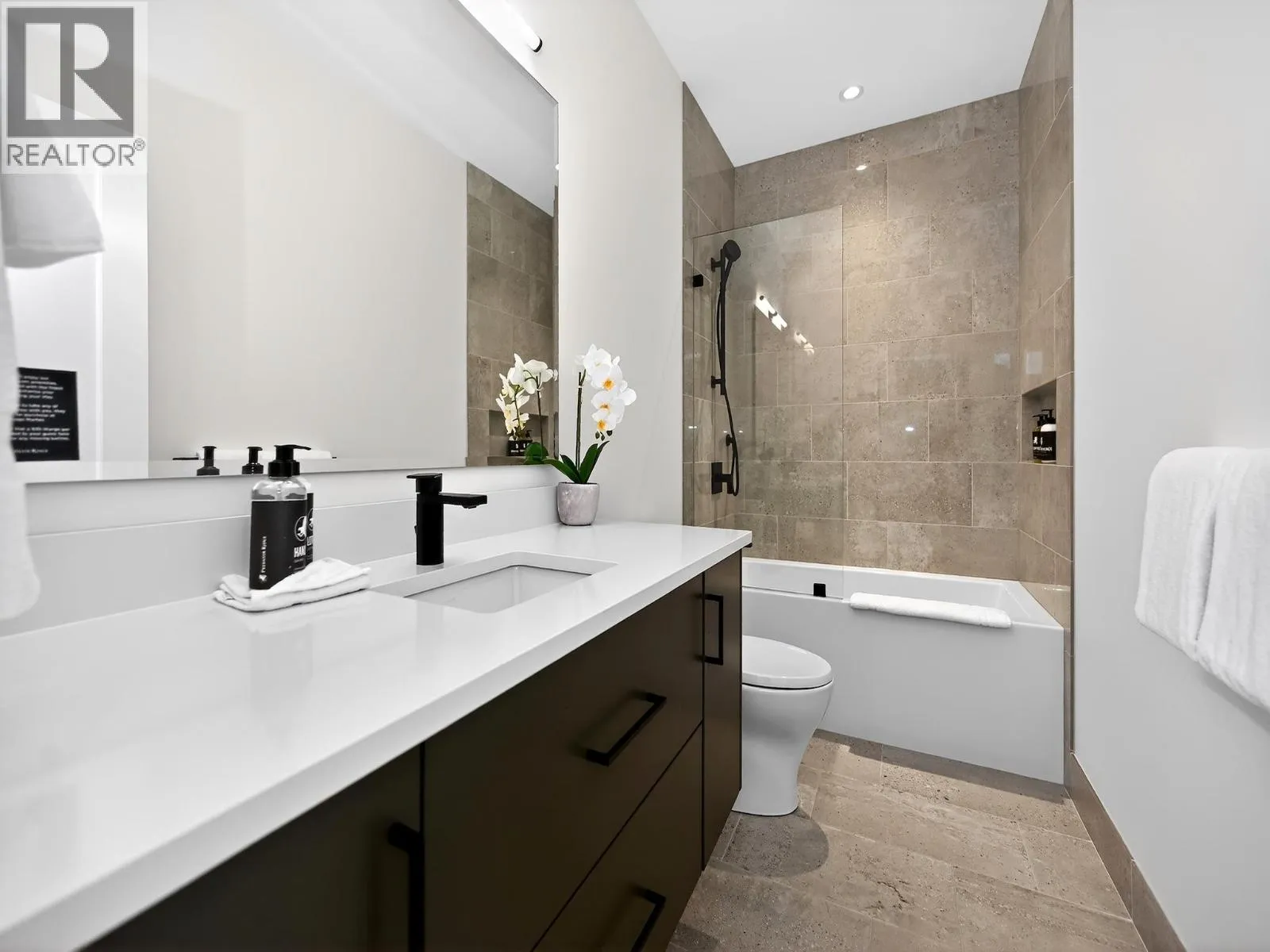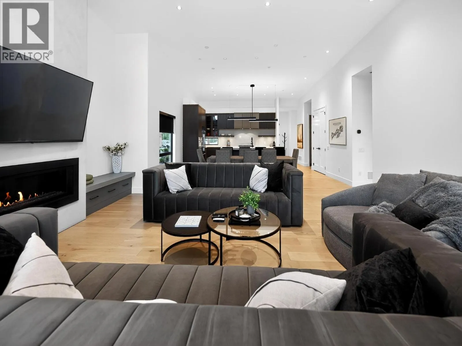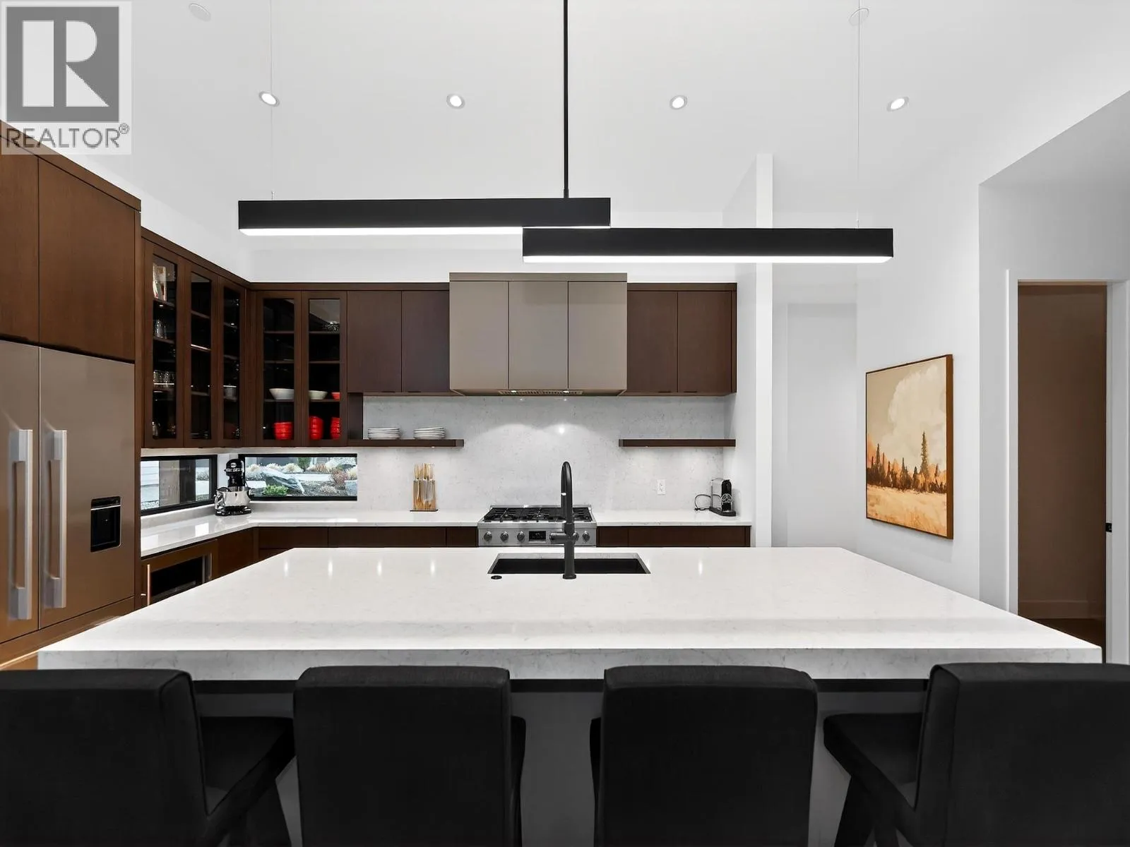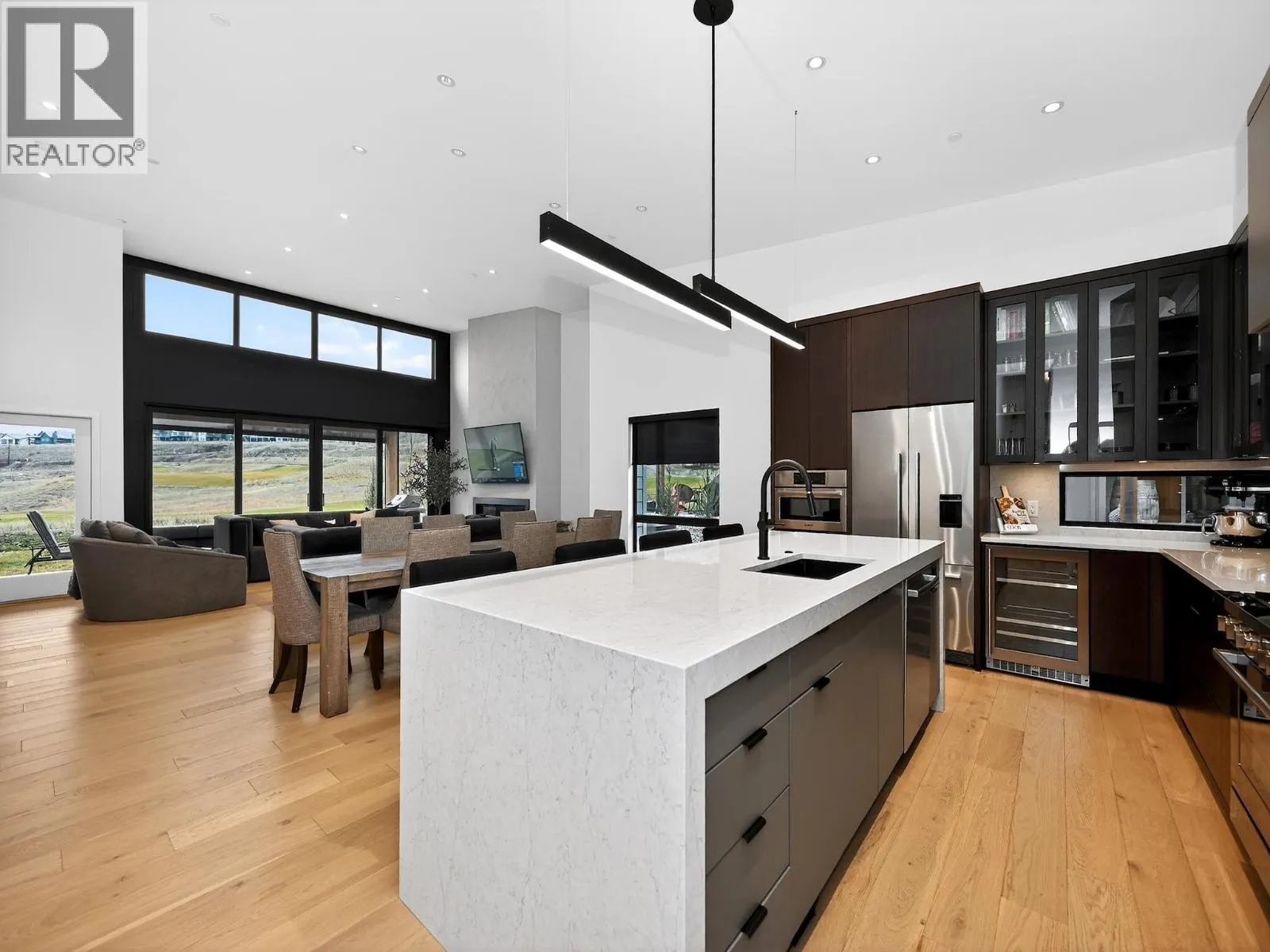 Live on the golf courseânot just near itâin this exceptional Fieldglass residence overlooking the first fairway and green of the renowned Ridge Course. Designed for lifestyle and entertainment, the home features a spectacular fully enclosed outdoor living area with screens, offering privacy while preserving sweeping golf-course views and entertainment! SO FUN! The open-concept main level blends comfort and decadence with a gourmet kitchen featuring quartz counters, stainless appliances, and custom cabinetry(of course!) flowing seamlessly into bright, casually elegant dining and living spaces and effortless indoor-outdoor entertaining. A spacious main-floor primary suite with spa-inspired ensuite delivers true level living and private retreat comfort. Upstairs, two guest bedroomsâeach with full ensuitesâare complemented by a versatile office/flex room or optional fourth bedroom. The partially finished lower level provides additional rec or media space plus abundant storage, while the generous garage accommodates vehicles and all your Okanagan lifestyle essentials. The Fieldglass ownersâ pool (the best there is! ) is just steps away. Owners and guests also enjoy access to multimillion $ recreation with gym, studios, indoor pool, hiking, biking, pickleball and tennis. Offered fully furnished and move-in ready, with optional short- or long-term rental participation for added flexibility and investment appeal. Monthly strata of $774 includes exterior/extensive coverageâowners insure contents only. NOTE: GST has been paid and there is no speculation tax (id:27476)