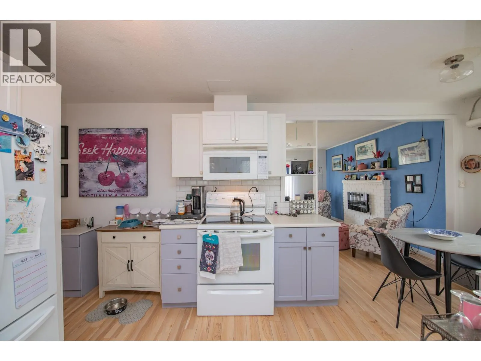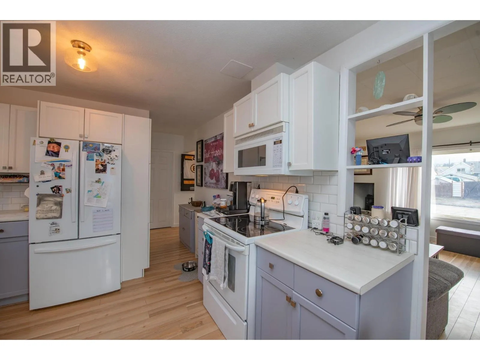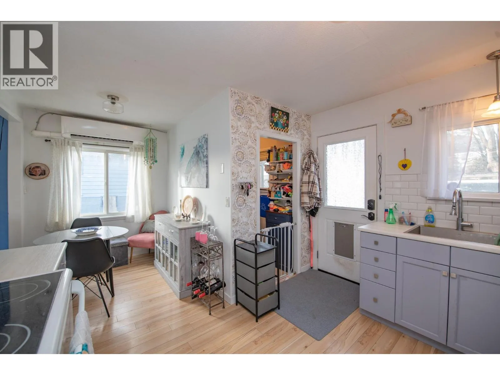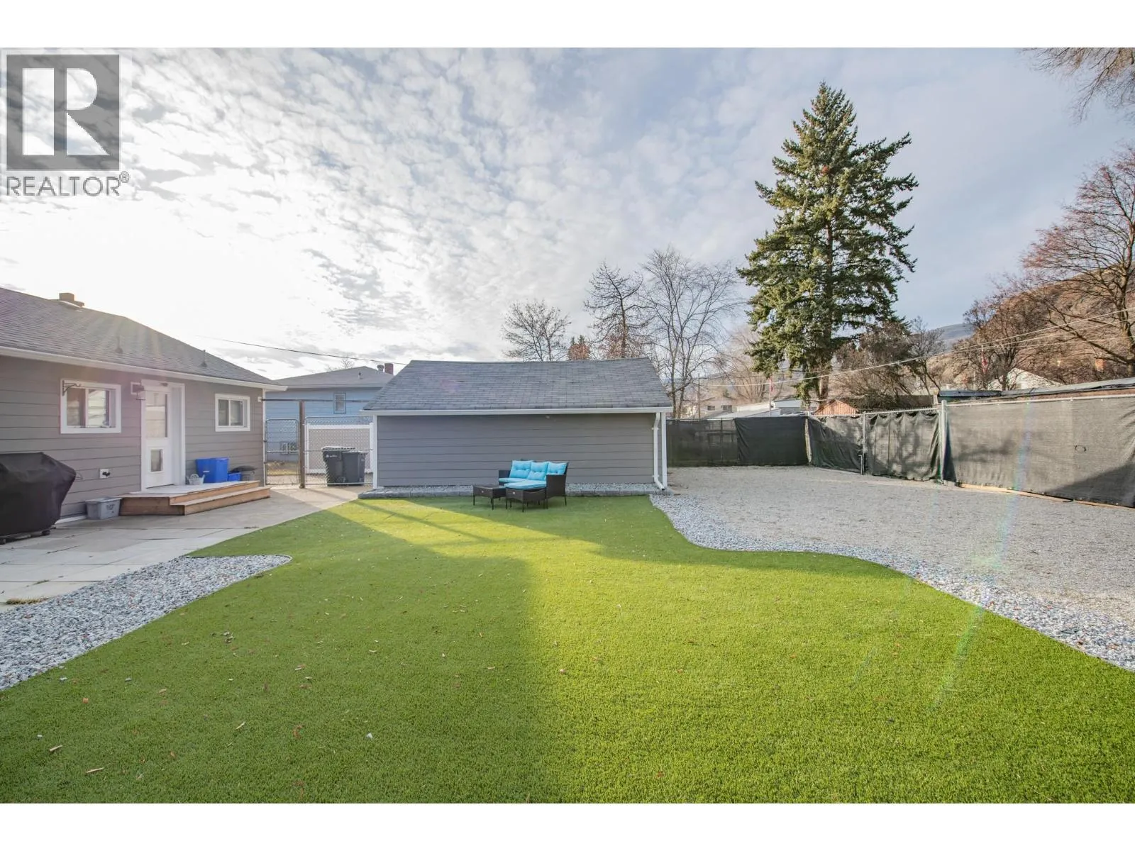 Charming, move-in ready home on a large, private lot â perfect for first-time buyers, downsizers, or investors. A welcoming entry that leads into a cozy living room featuring a large picture window and inviting electric fireplace. The bright kitchen nook flows seamlessly into a stylishly updated kitchen complete with refreshed cabinetry, modern countertops, and a crisp white tile backsplash that adds a fresh, contemporary touch. The functional layout includes a spacious laundry room with side-by-side washer and dryer plus additional pantry storage. The primary bedroom offers ample closet space, while a second bedroom provides flexibility for guests, family, or a home office. A full bathroom with tub/shower completes the interior. Outside, escape to your fully enclosed and private backyard â a rare find with a large, flat lot that has been thoughtfully landscaped for low-maintenance living with artificial turf and rock. The generous patio area is ideal for entertaining, relaxing, or enjoying summer evenings. A detached wired shop provides excellent storage or workspace options, and with lane access behind a secure fence, thereâs plenty of room to park your RV, boat, or recreational toys. Extensive updates mean you can simply move in and enjoy, including Hardy board siding, a 2022 roof, new hot water tank, updated laminate flooring, refreshed kitchen, and backyard improvements. A fantastic opportunity offering privacy, functionality, and value â all in one charming package. (id:27476)