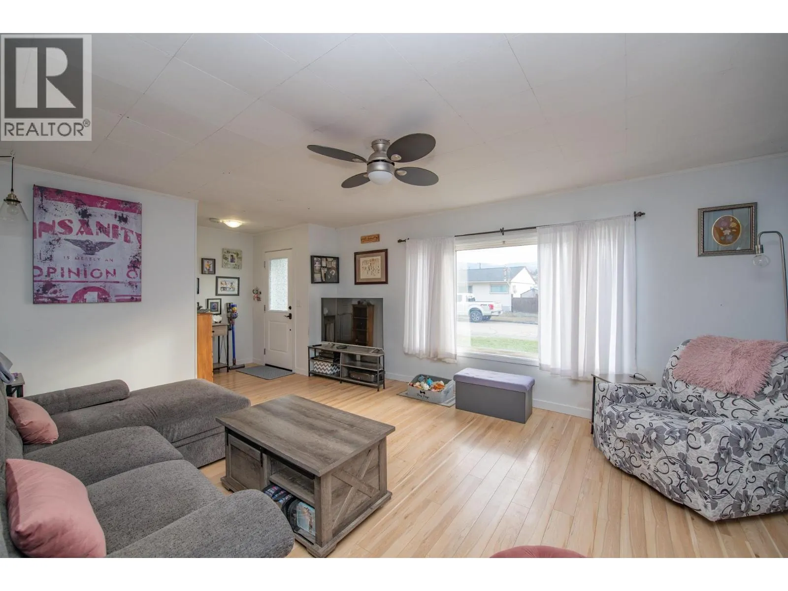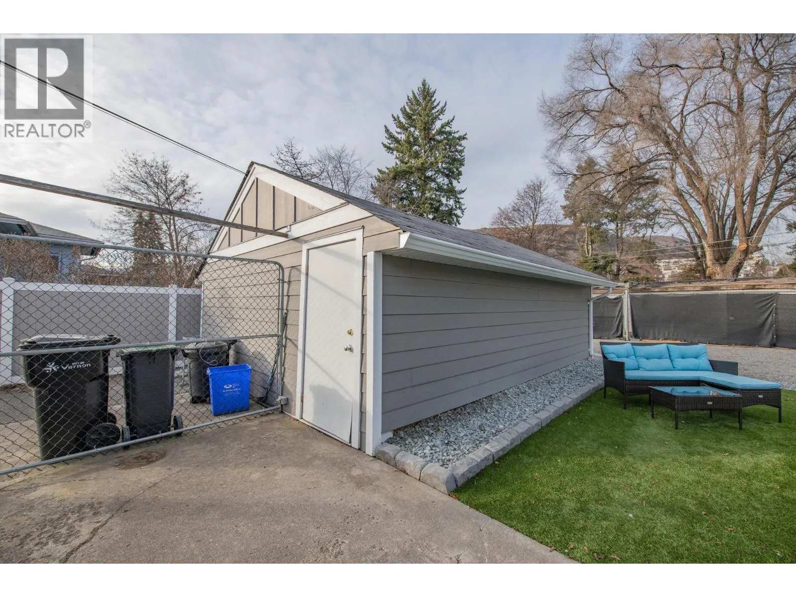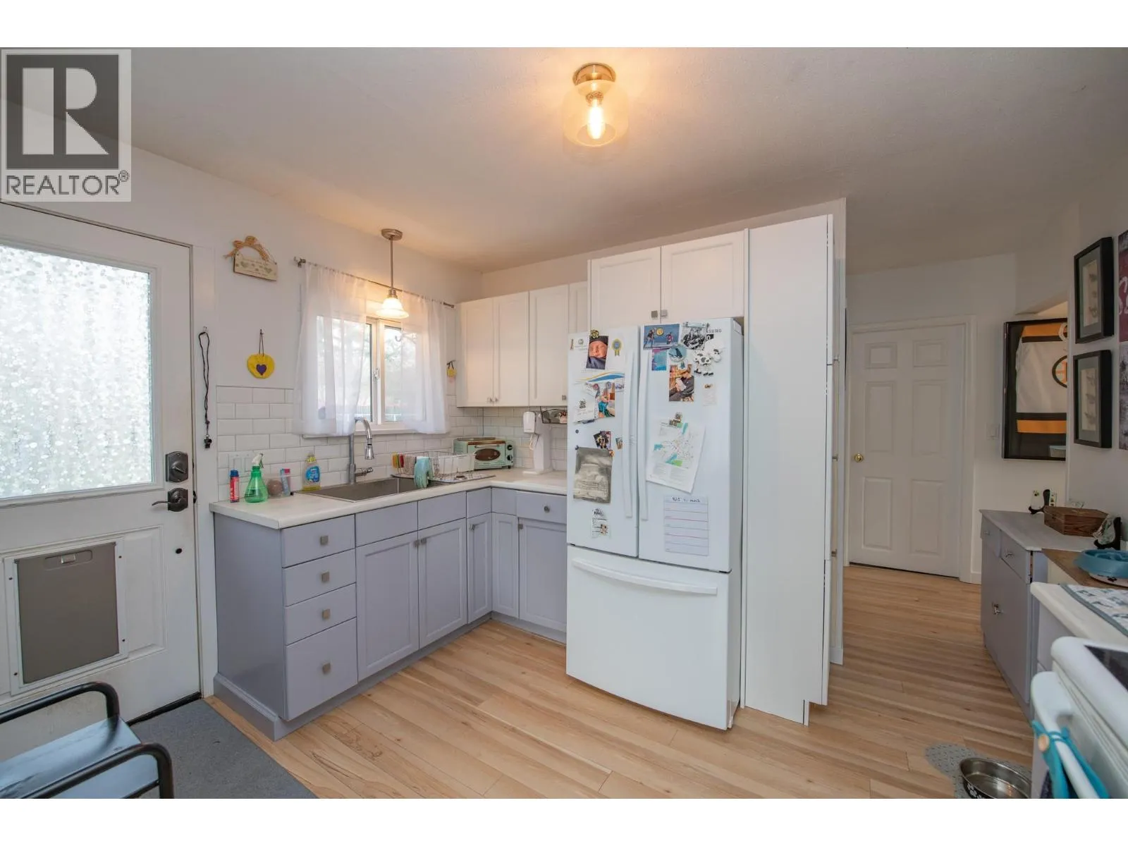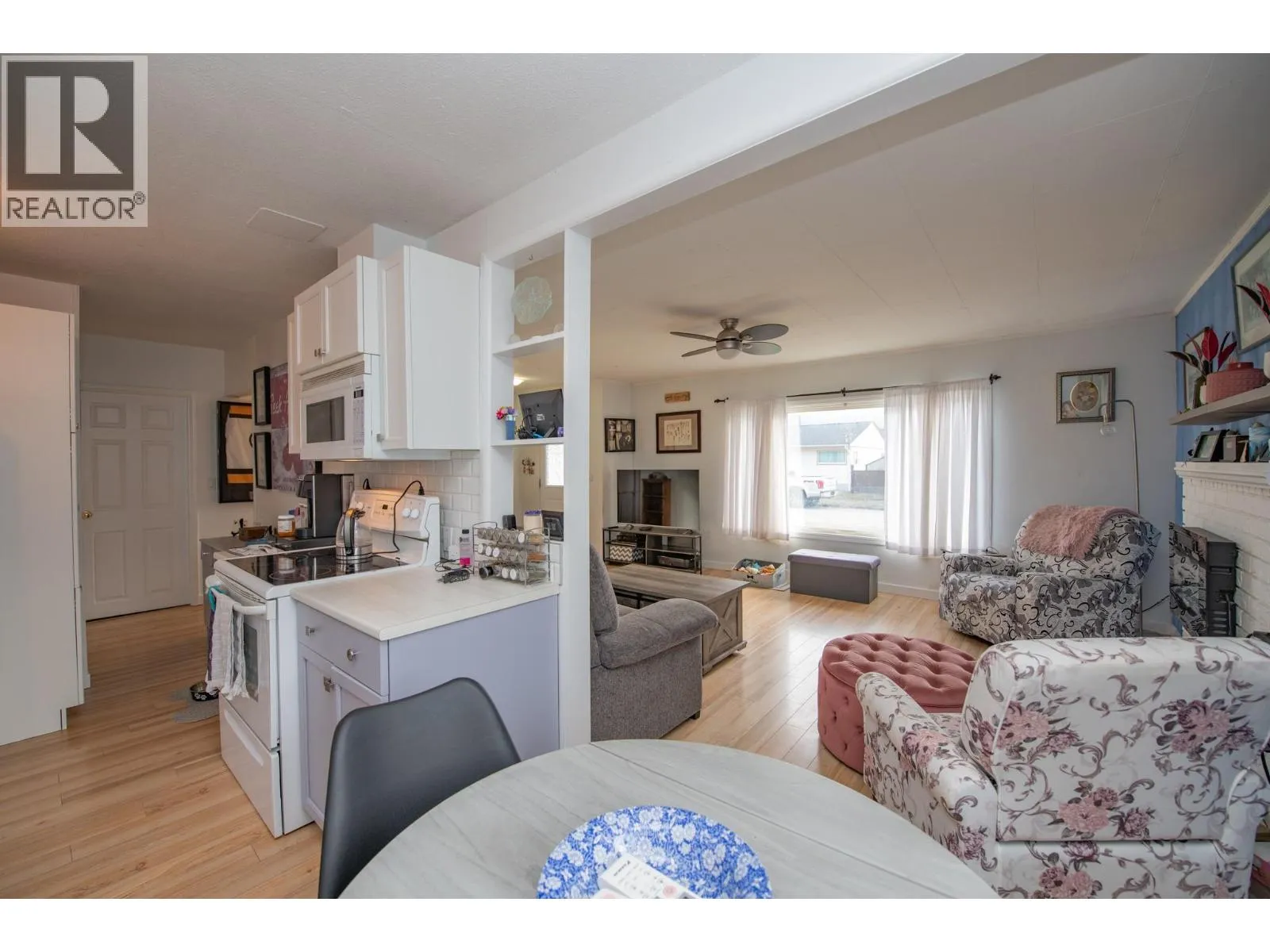 Charming, move-in ready home on a large, private lot â perfect for first-time buyers, downsizers, or investors. A welcoming entry that leads into a cozy living room featuring a large picture window and inviting electric fireplace. The bright kitchen nook flows seamlessly into a stylishly updated kitchen complete with refreshed cabinetry, modern countertops, and a crisp white tile backsplash that adds a fresh, contemporary touch. The functional layout includes a spacious laundry room with side-by-side washer and dryer plus additional pantry storage. The primary bedroom offers ample closet space, while a second bedroom provides flexibility for guests, family, or a home office. A full bathroom with tub/shower completes the interior. Outside, escape to your fully enclosed and private backyard â a rare find with a large, flat lot that has been thoughtfully landscaped for low-maintenance living with artificial turf and rock. The generous patio area is ideal for entertaining, relaxing, or enjoying summer evenings. A detached wired shop provides excellent storage or workspace options, and with lane access behind a secure fence, thereâs plenty of room to park your RV, boat, or recreational toys. Extensive updates mean you can simply move in and enjoy, including Hardy board siding, a 2022 roof, new hot water tank, updated laminate flooring, refreshed kitchen, and backyard improvements. A fantastic opportunity offering privacy, functionality, and value â all in one charming package. (id:27476)
