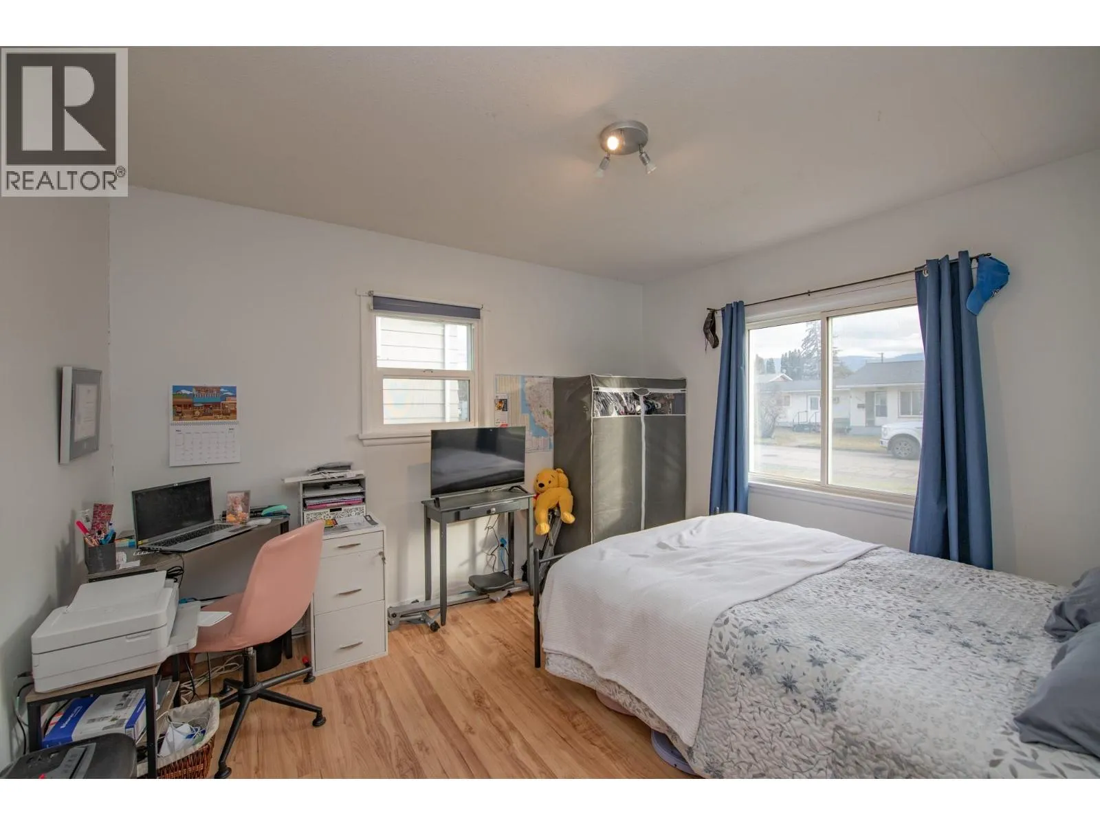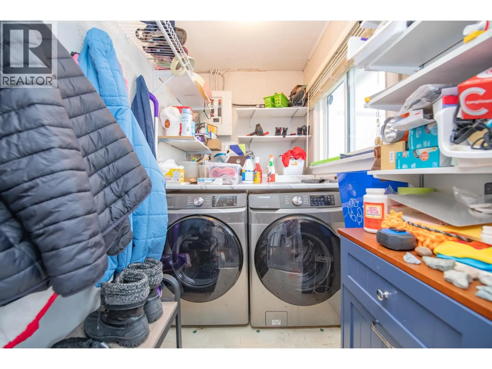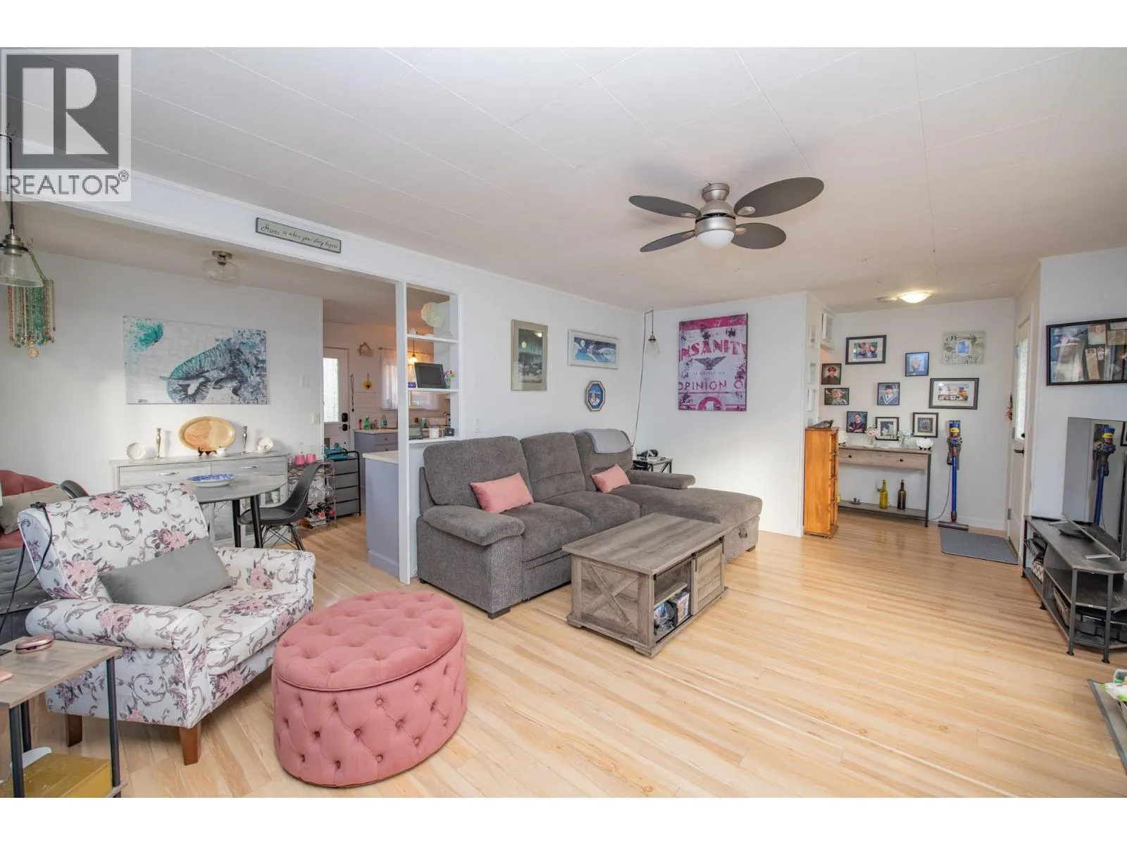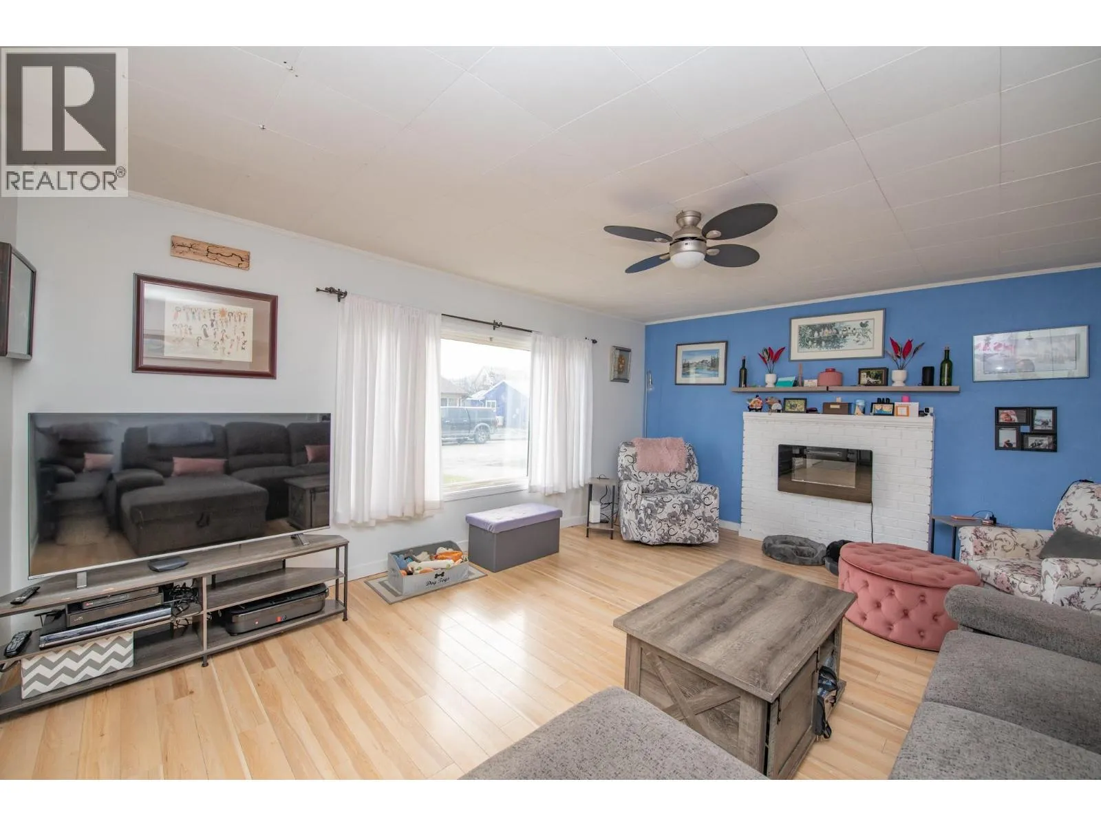 Charming, move-in ready home on a large, private lot â perfect for first-time buyers, downsizers, or investors. A welcoming entry that leads into a cozy living room featuring a large picture window and inviting electric fireplace. The bright kitchen nook flows seamlessly into a stylishly updated kitchen complete with refreshed cabinetry, modern countertops, and a crisp white tile backsplash that adds a fresh, contemporary touch. The functional layout includes a spacious laundry room with side-by-side washer and dryer plus additional pantry storage. The primary bedroom offers ample closet space, while a second bedroom provides flexibility for guests, family, or a home office. A full bathroom with tub/shower completes the interior. Outside, escape to your fully enclosed and private backyard â a rare find with a large, flat lot that has been thoughtfully landscaped for low-maintenance living with artificial turf and rock. The generous patio area is ideal for entertaining, relaxing, or enjoying summer evenings. A detached wired shop provides excellent storage or workspace options, and with lane access behind a secure fence, thereâs plenty of room to park your RV, boat, or recreational toys. Extensive updates mean you can simply move in and enjoy, including Hardy board siding, a 2022 roof, new hot water tank, updated laminate flooring, refreshed kitchen, and backyard improvements. A fantastic opportunity offering privacy, functionality, and value â all in one charming package. (id:27476)