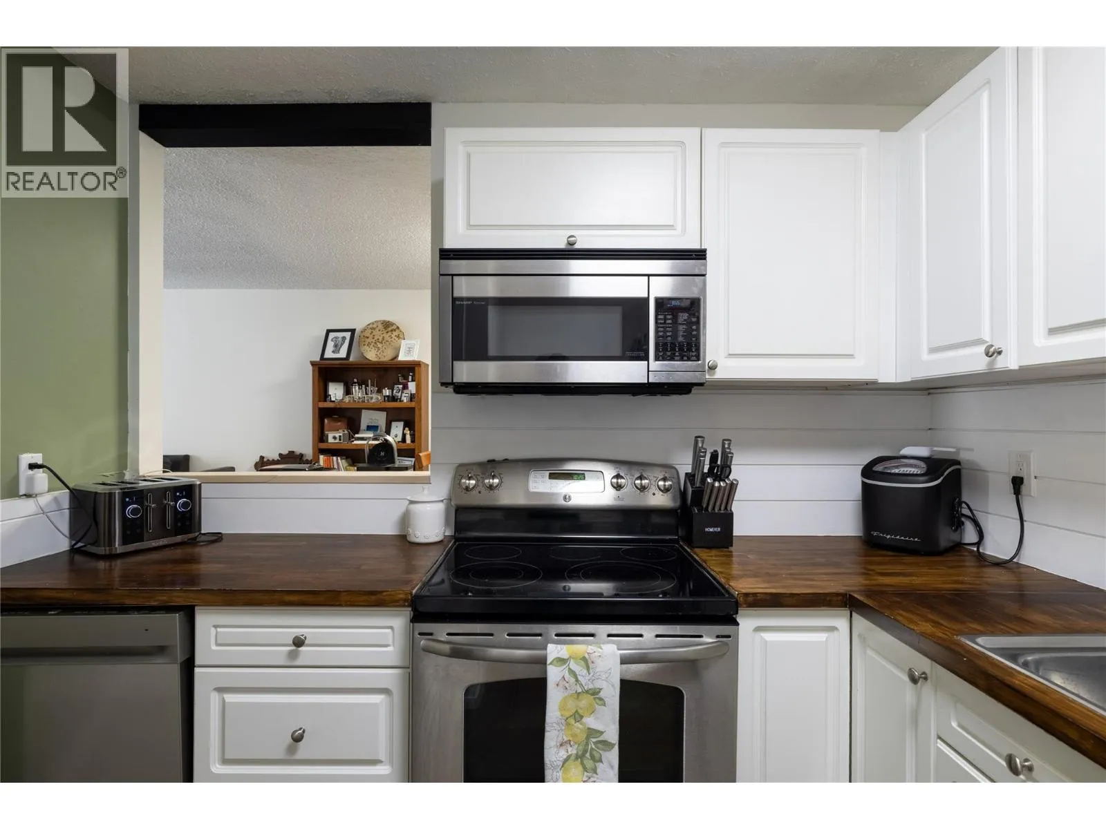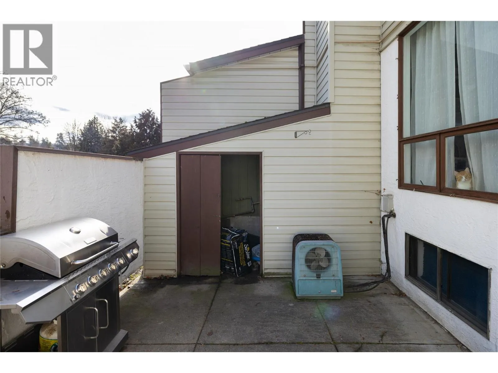 Updated family-oriented townhouse with 4 bedrooms, 1 bath, 2 story end-unit with partially finished basement with built-in shelving for lots of storage. Other features include a cozy natural gas fireplace and central air conditioning create comfort for all seasons. Front patio on the ground level and private deck on the second floor create space for outdoor grilling and entertaining guests. Green Timbers Complex features an in-ground heated pool and playground. The townhome is centrally located in Harwood area, and is close to public transportation, Harwood Elementary School, Seaton Secondary School, Shoppers, and Safeway Vernon Square is just 3 min away. The property is also located close to Girouard Park, MacDonald Park, and Pine Park. Kal Tire Place and the new Vernon Active Living Centre are only minutes away. Pet Restrictions include: 1 indoor cat, no dogs, up to 2 caged birds, a reasonable number of fish or other small aquarium animals! For more information on this terrific Vernon townhome please visit our website. (id:27476)