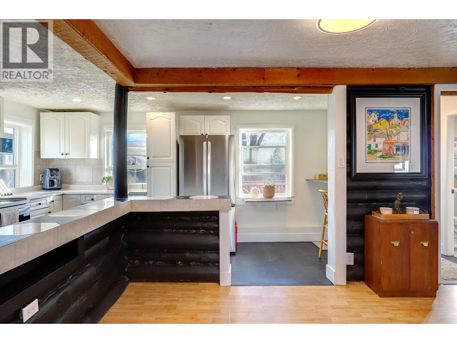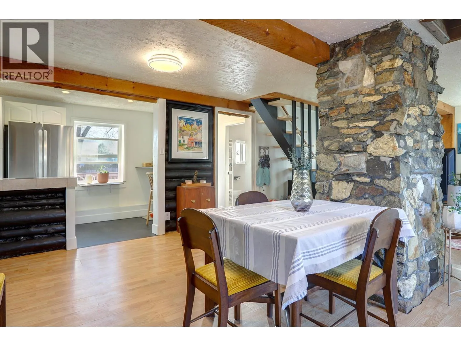 Nicely updated country-style home located in a desirable part of Vernon. This property sits on a private .26-acre lot with mountain and valley views. Extensive recent UPDATES: include all new windows, patio door, dual-head -40 degree rated heat pump (heating & cooling), brand new appliances, freshly renovated bathroom, fresh interior and exterior paint, updated lighting and the home professionally levelled. Metal roof screws and seams just re-sealed and chimney reinforced for added peace of mind. Enjoy a welcoming front porch, large yard with gardening space, fruit trees, patio area, shed, kayak rack, and inflatable hot tub. A unique, move-in-ready home offering privacy, views, plenty of parking for an RV, or space to build a garage. Connected to city sewer, great investment property with future land value. Book your showing today! (id:27476)
