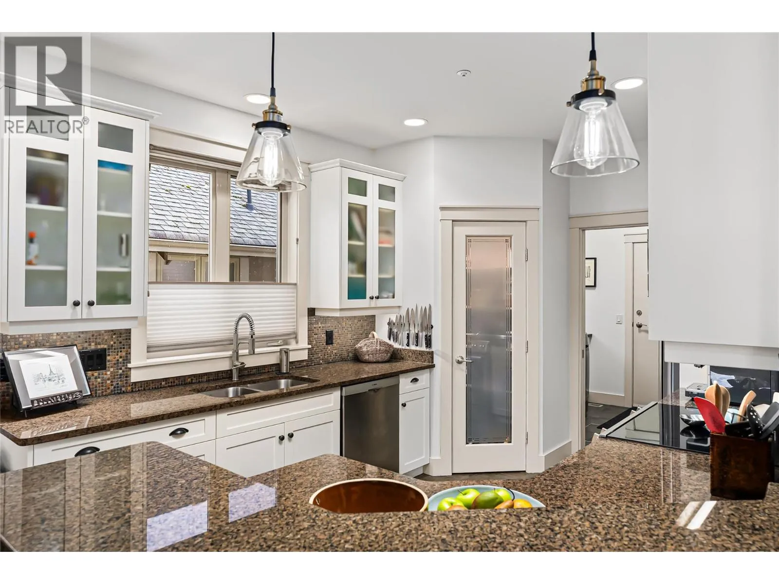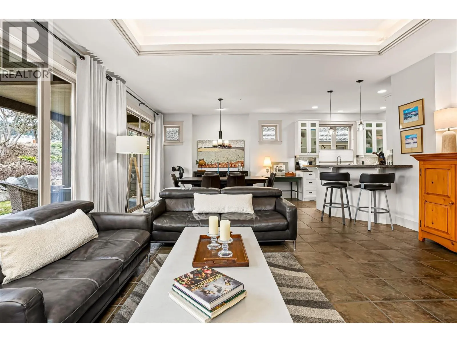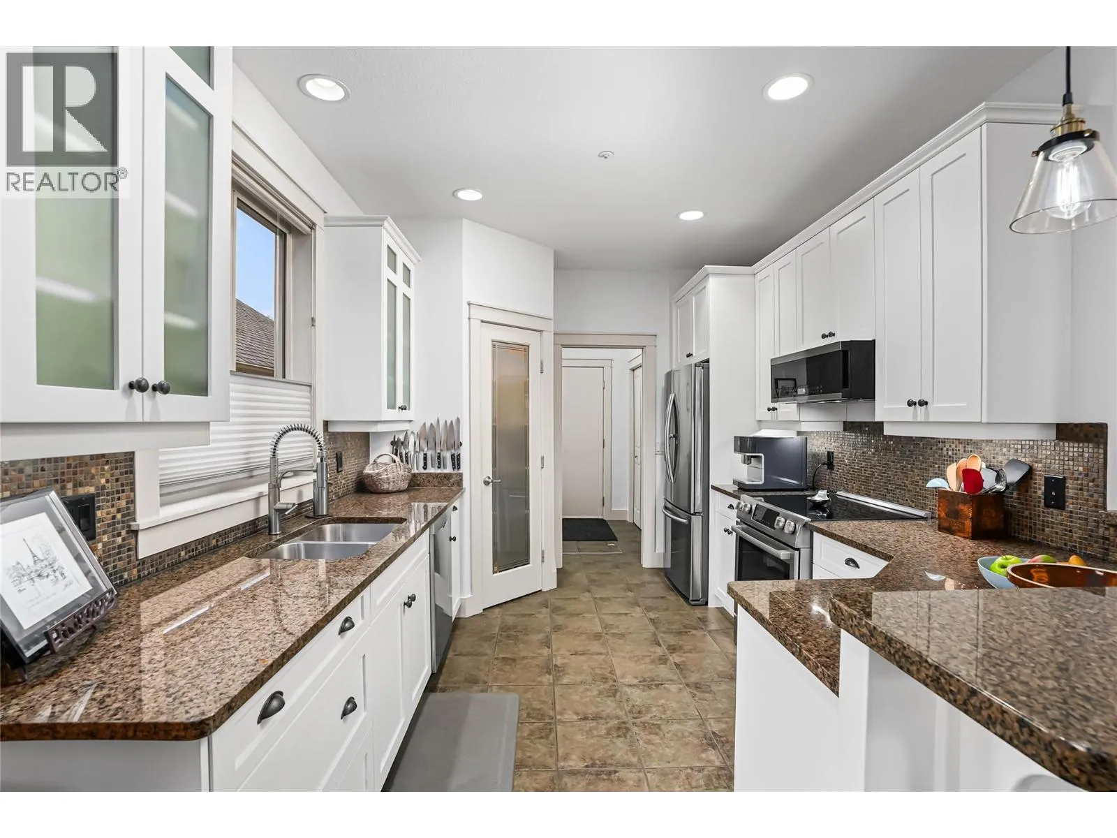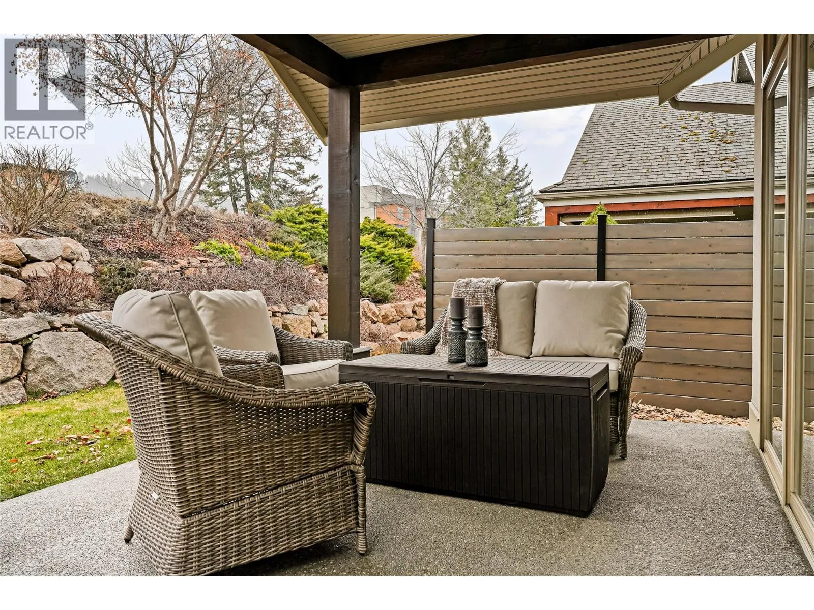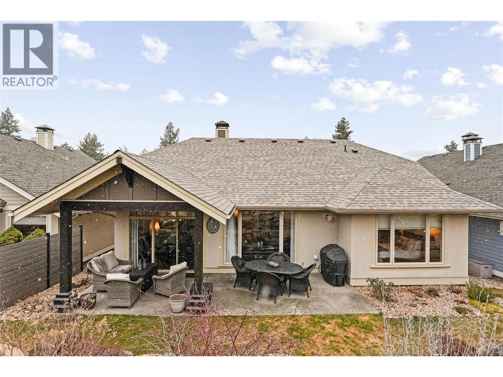 For those looking for a second home or to downsize, embrace the ease of single level living in this charming and bright bungalow in the heart of Predator Ridge within walking distance of the golf course, clubhouse/restaurant and amenities including a fitness centre, tennis court, swimming pool, and the sprawling trail system. The compact floorpan is becoming harder to find. It features a spacious living room with a gas fireplace, a large dining room, a generous main bedroom with a five piece en-suite bathroom and walk-in closet, as well as a secondary bedroom, den and updated three piece bathroom. Beyond the kitchen there is a laundry room with a window plus access to utility and storage and a crawl space. The entire roof was replaced in 2025 and comes with a transferable warranty, additional vents, including a solar power vent in the storage area above the garage. There is a tankless hot water unit, updated drip irrigation, and newly painted exterior including stucco are some of the added features. Appliances have been updated over the years as have the toilets, and the furnace is approximately nine yrs old. It includes a double-car garage with a new garage door lift (controlled by Bluetooth) and lots of storage space accessible up in the rafters via pull-down stairs. The exterior garden area flows seamlessly out to an aggregate patio and landscaped private garden. Embrace the Predator Ridge year-round community and resort lifestyle offering fabulous amenities and two of Canadaâs finest golf courses. (id:27476)